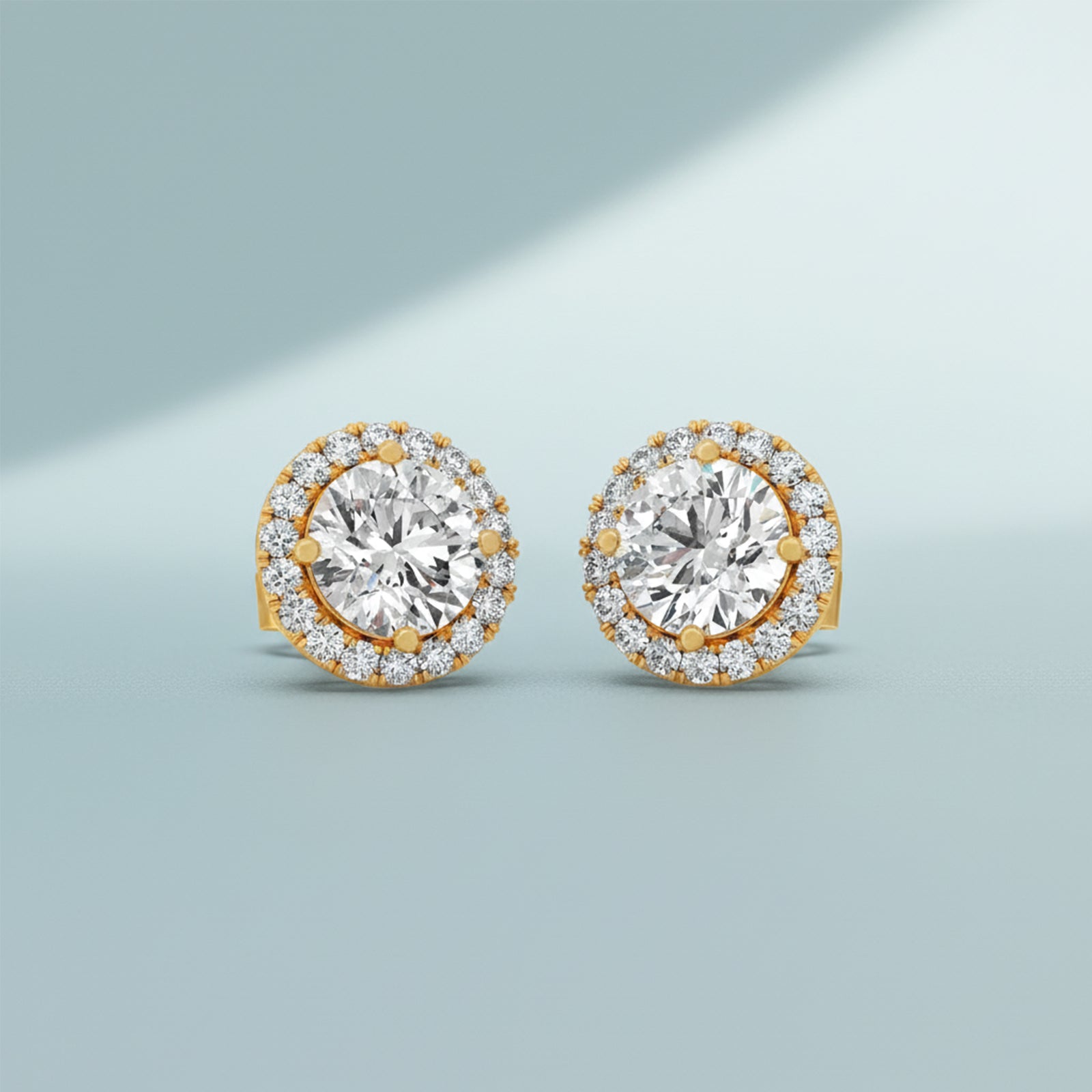 Radiate timeless elegance with our Round Solitaire Diamond Halo Stud Earrings. A brilliant central diamond is encircled by a sparkling halo, enhancing its fire and brilliance. Perfect for any occasion, these classic studs exude sophistication and make a stunning statement of refined luxury.