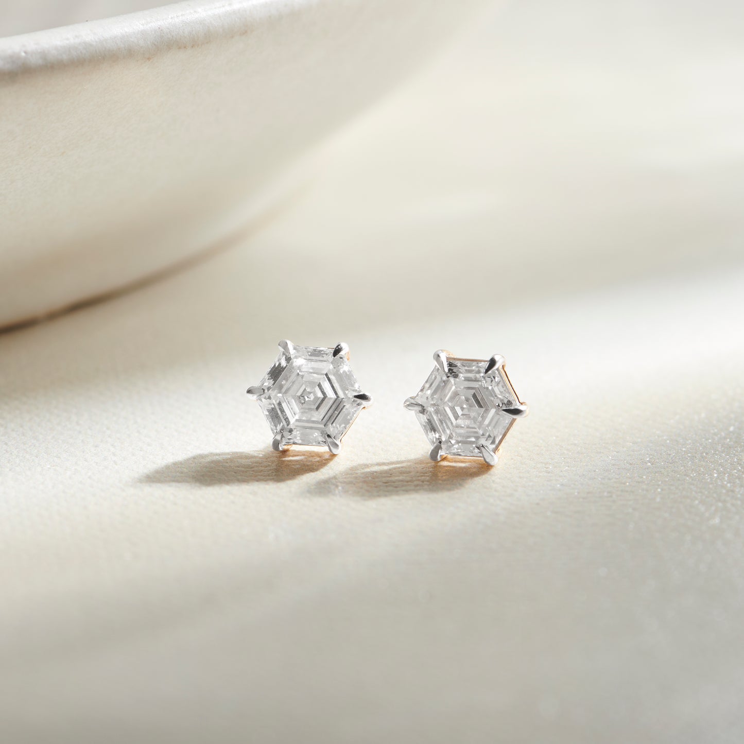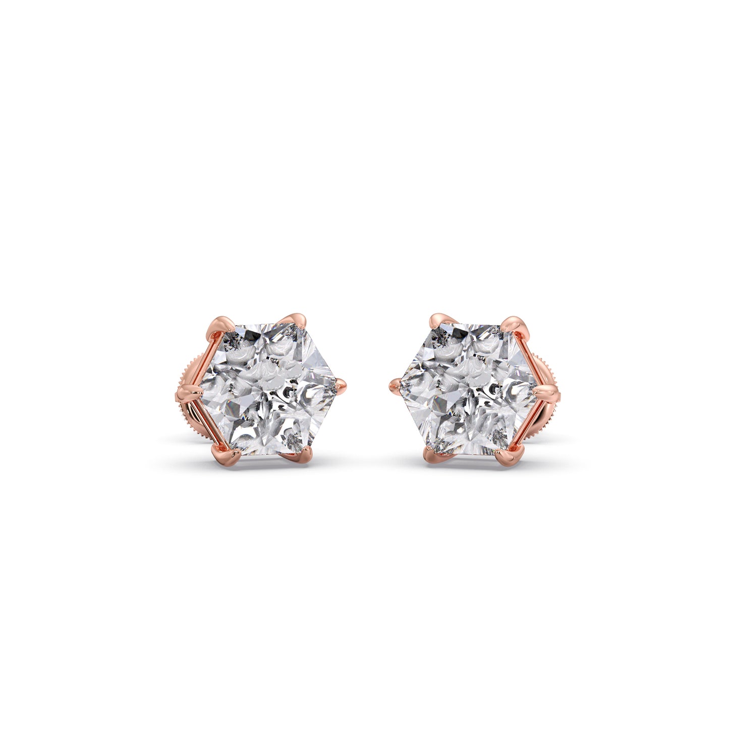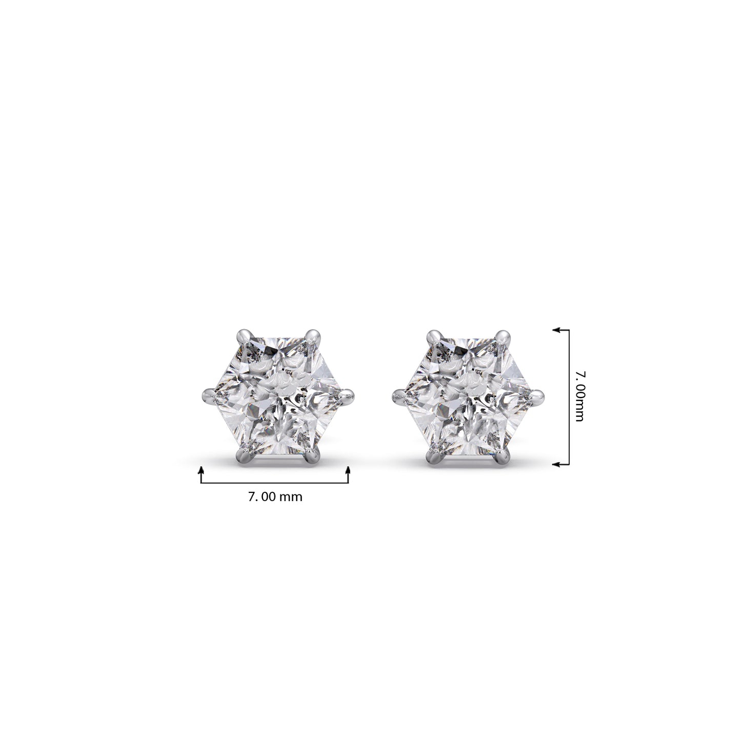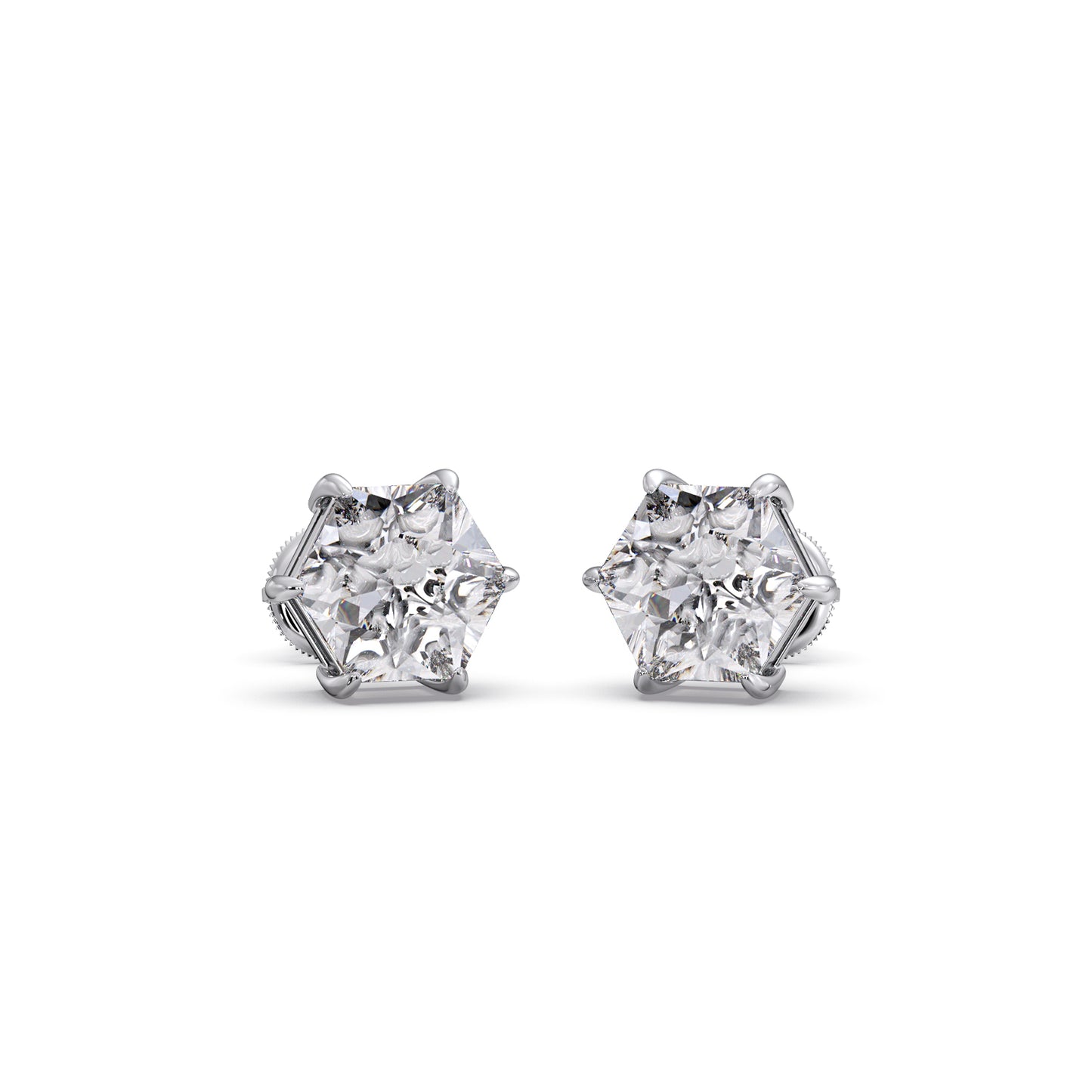 Six-Prong Hexagon Shape Solitaire Stud Earring