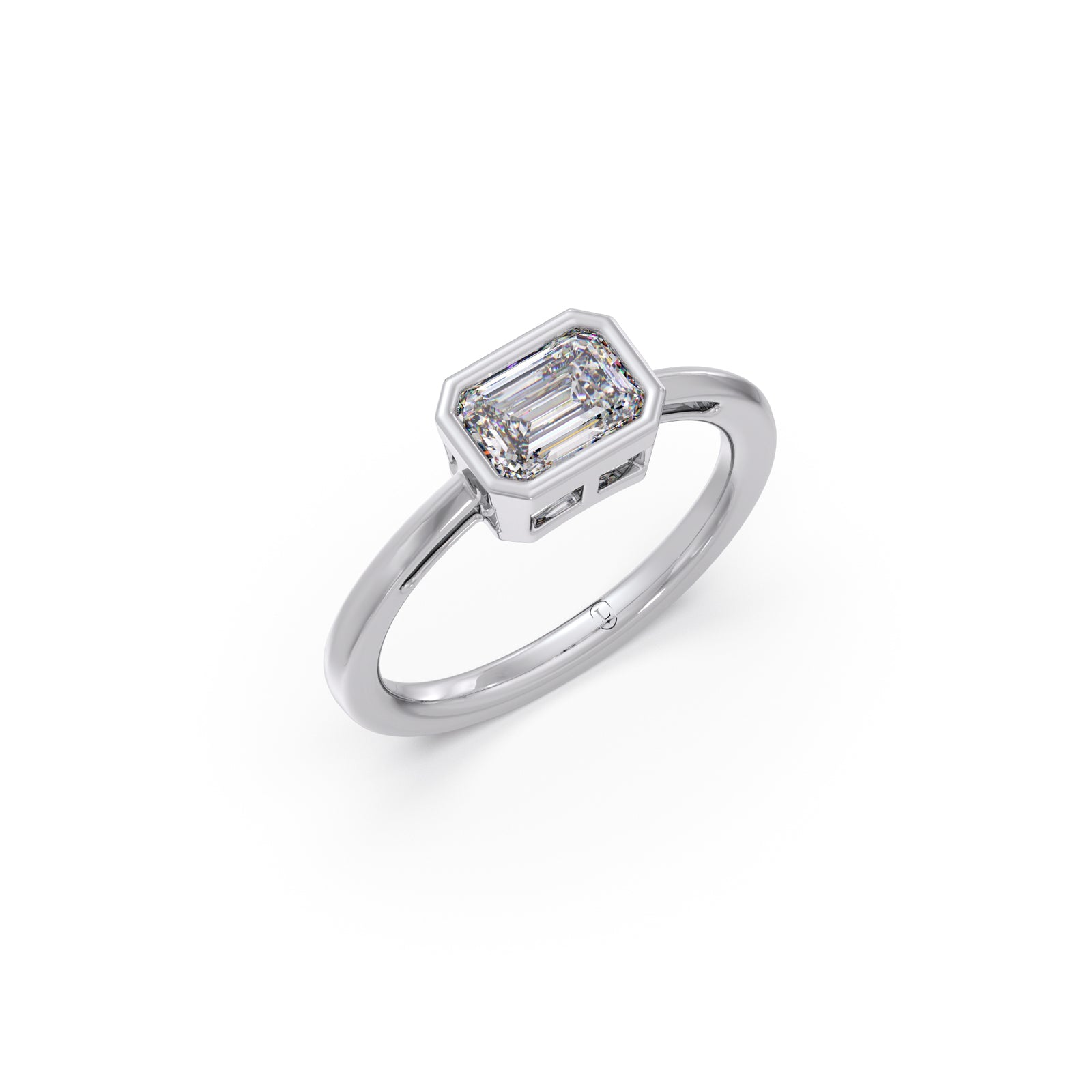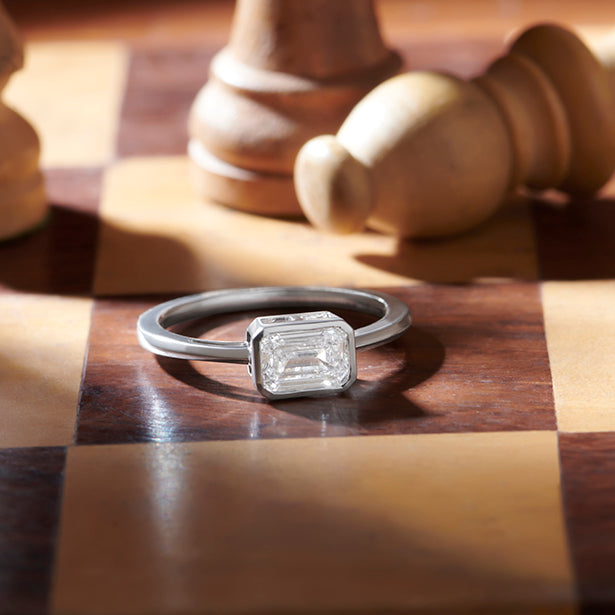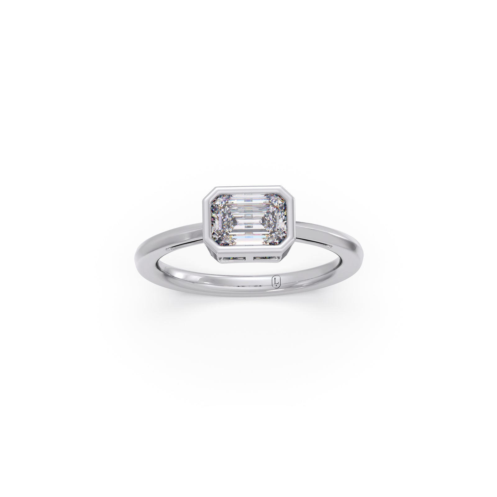 Clean lines, quiet power. This 1.005 ct. Emerald-cut Lucira Grown Diamond is encased in a seamless bezel—bold in clarity, effortless in form. The elongated facets of the emerald solitaire reflect light in smooth, uninterrupted planes, mirroring the grace of a woman in motion. A ring designed not for moments, but for momentum—elegant, grounded, and distinctly her.