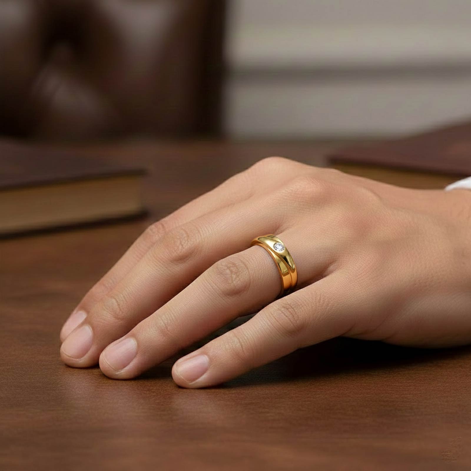 Dual Tone Luxurious Diamond Geometric Men's Band
