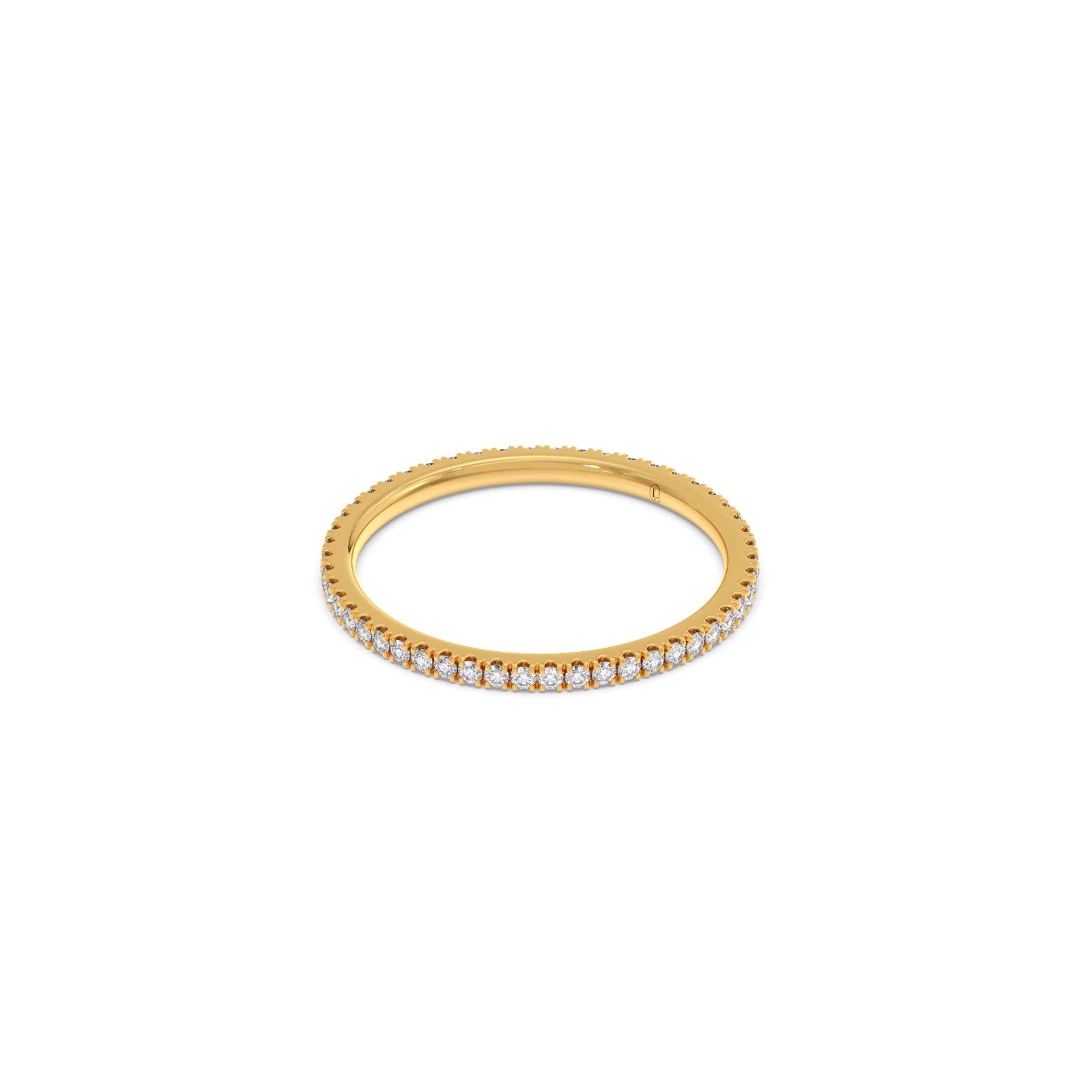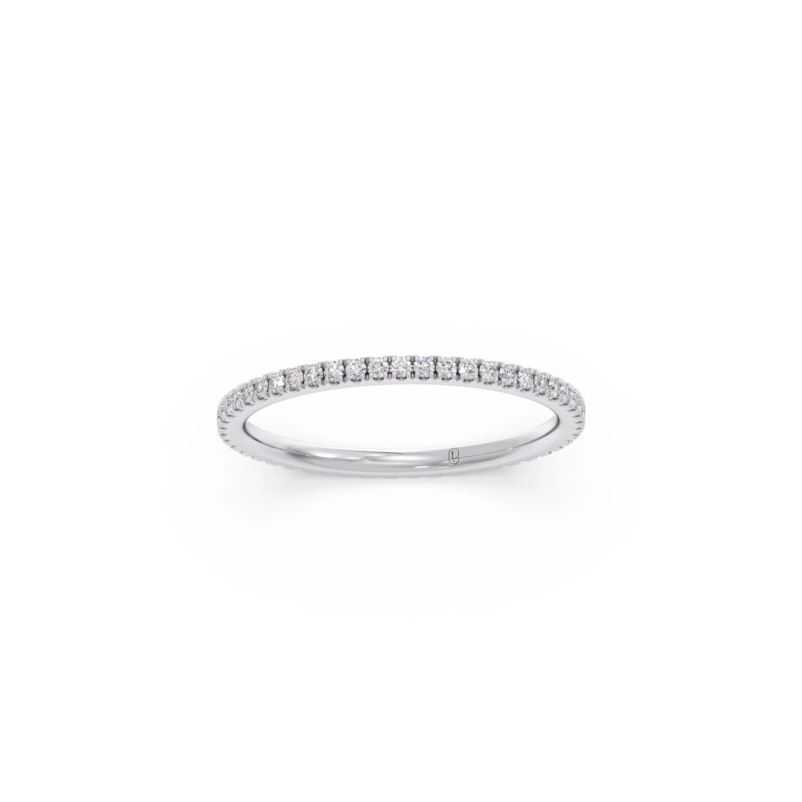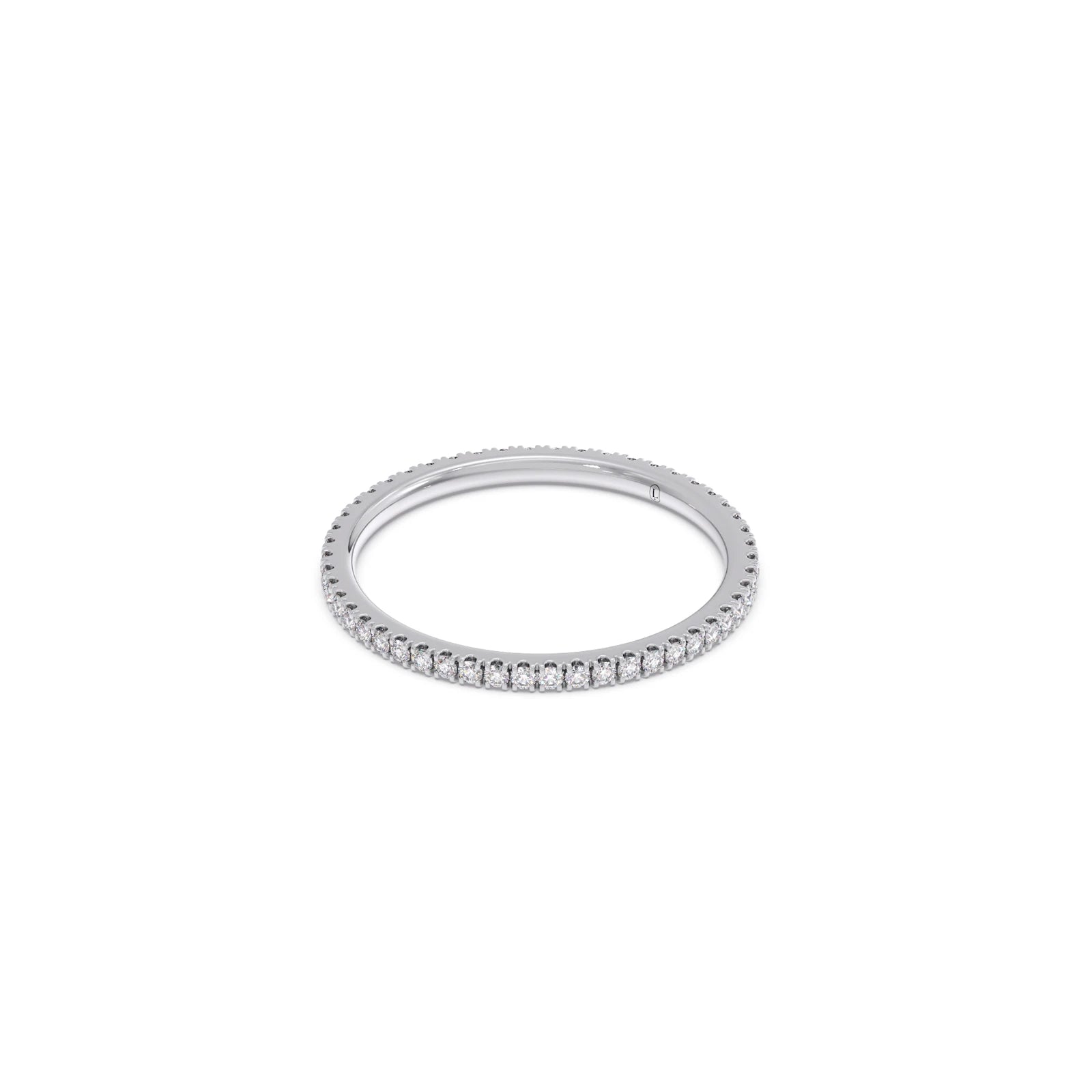 This delicate eternity band features small, round-cut diamonds totaling 0.25 carats, encircling the finger in continuous sparkle. Crafted for enduring elegance, it symbolizes everlasting love or commitment. Its low-profile setting ensures comfortable everyday wear, making it a timeless and versatile piece.