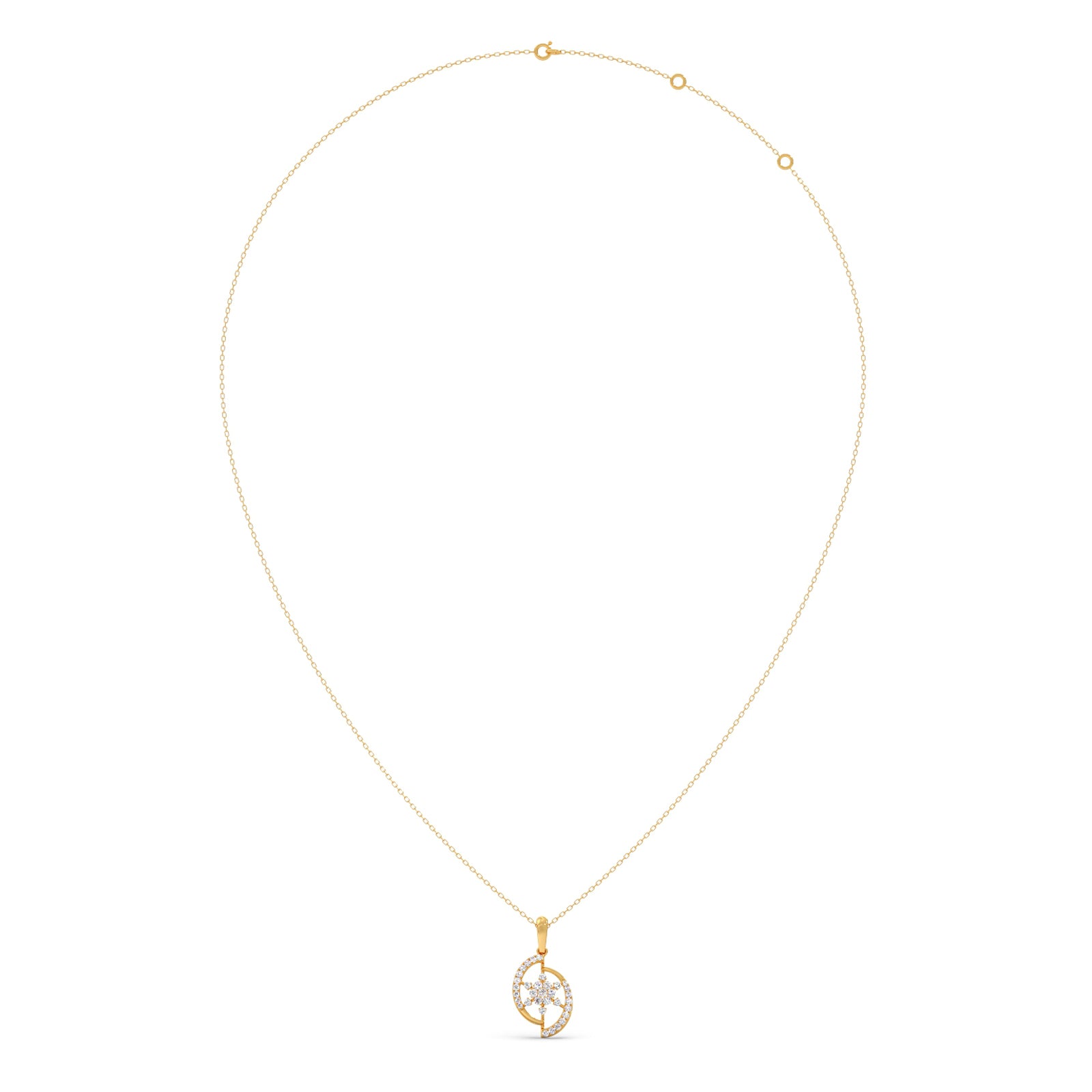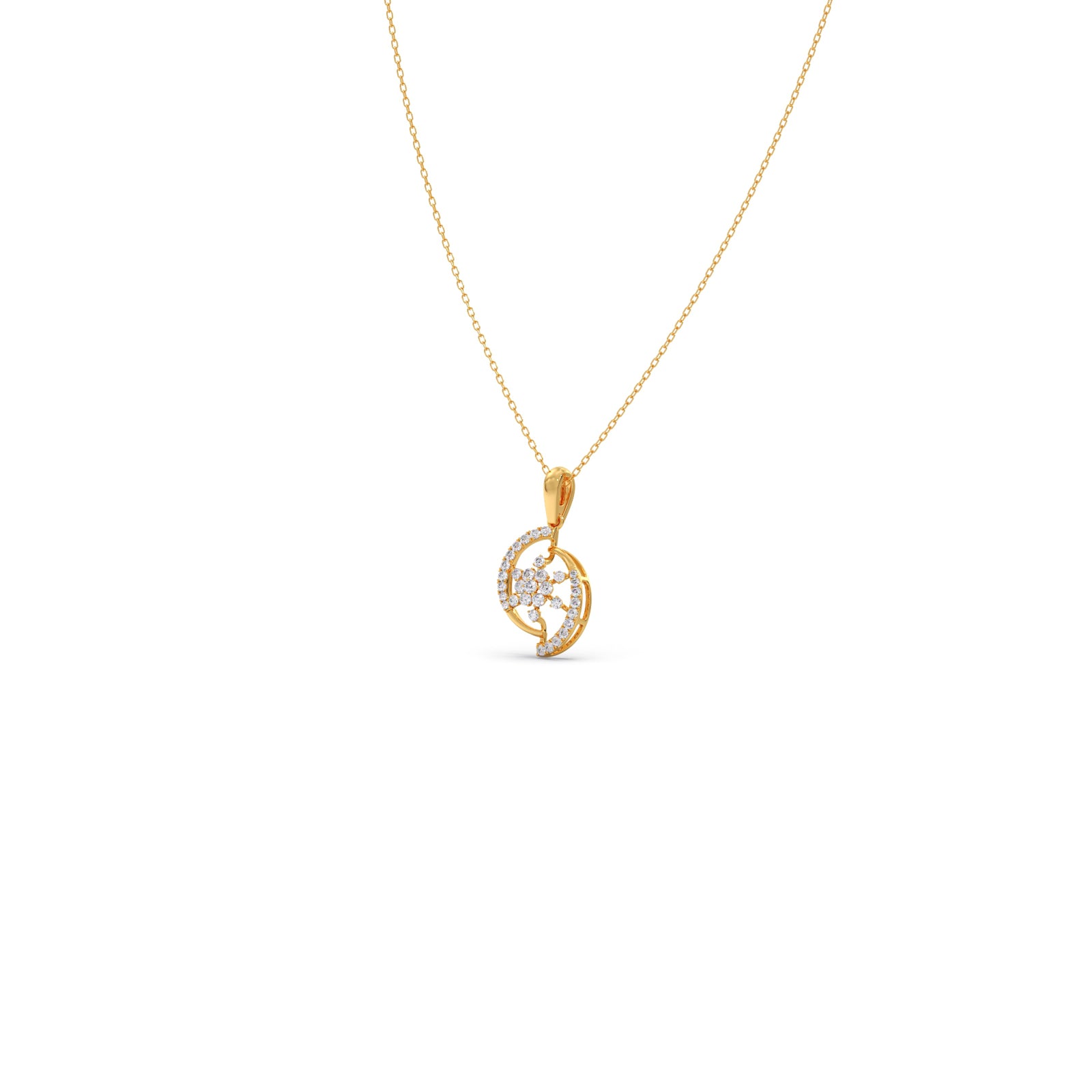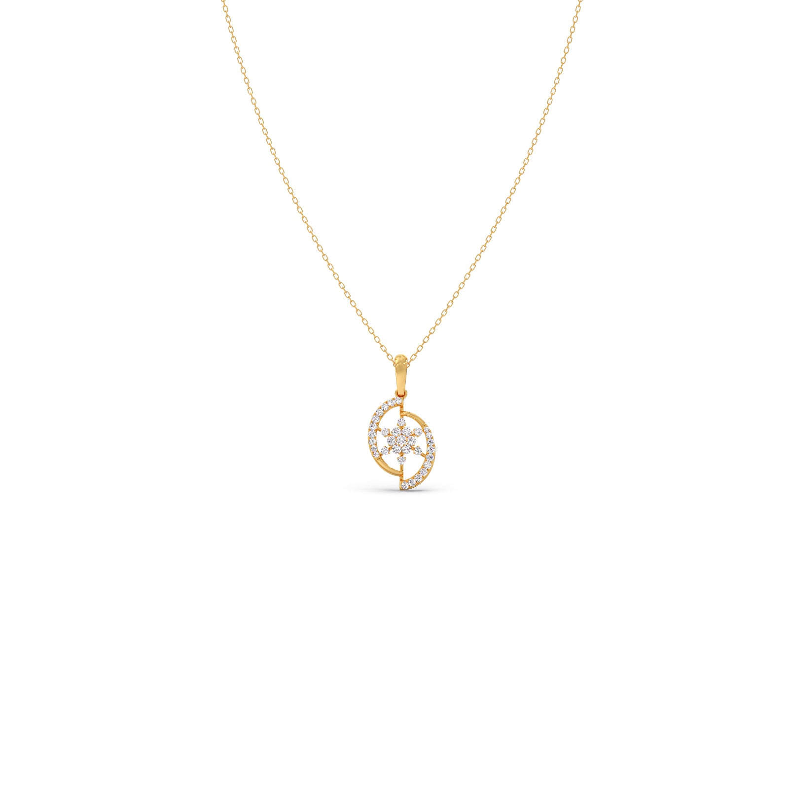 Inspired by celestial beauty, the Solar Arc Diamond Pendant Necklace features a dazzling arc design embellished with sparkling round diamonds. Suspended from a sleek gold chain, this elegant piece captures the brilliance of the sun’s arc, making it a timeless accessory for both everyday wear and special occasions.