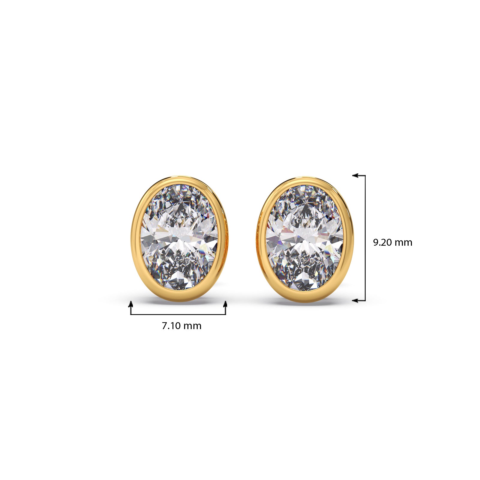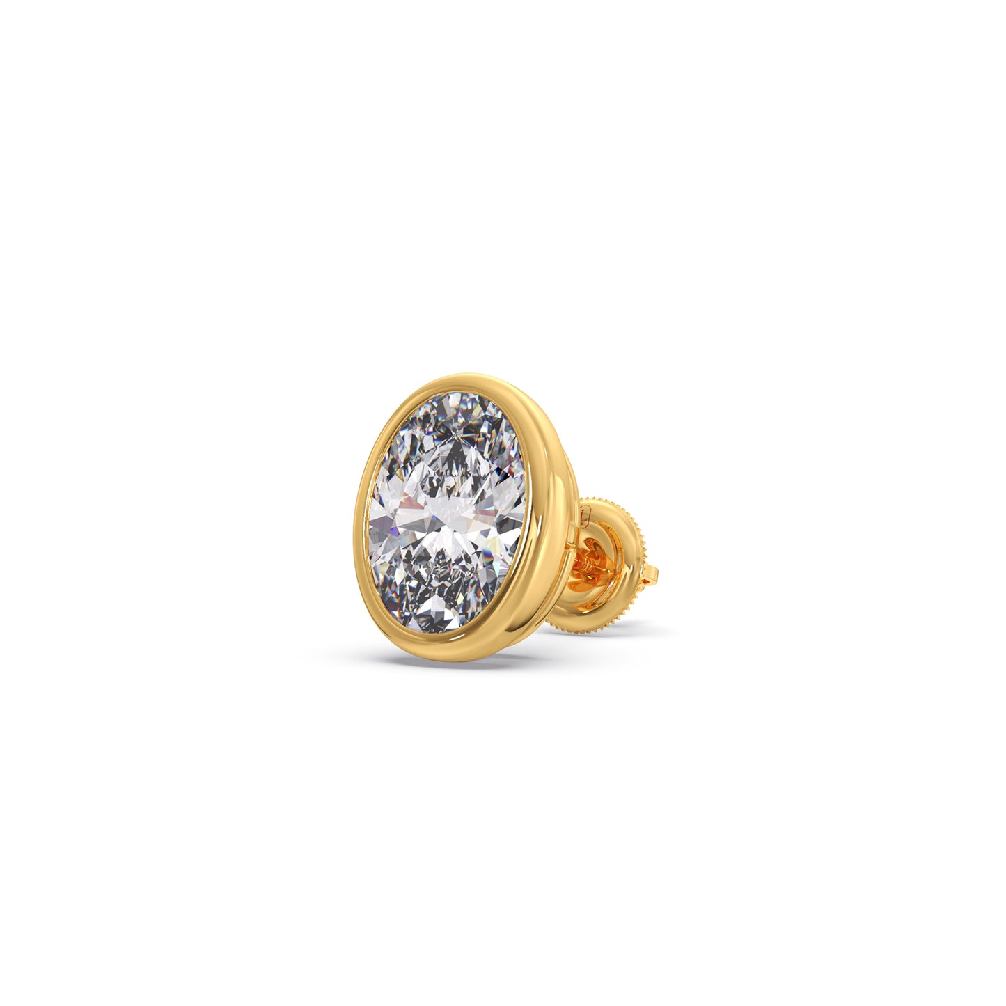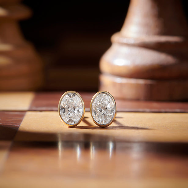 A timeless essential reimagined with Lucira Grown Diamonds. These bezel-set Oval Solitaire studs, totaling 2.00 ct., are crafted to elevate everyday elegance. The clean lines of the Oval cut meet the quiet strength of a full gold bezel—capturing light from every angle while offering a secure, modern profile. Designed for effortless layering or a confident solo statement, each stud is a gentle yet powerful mark of individuality.