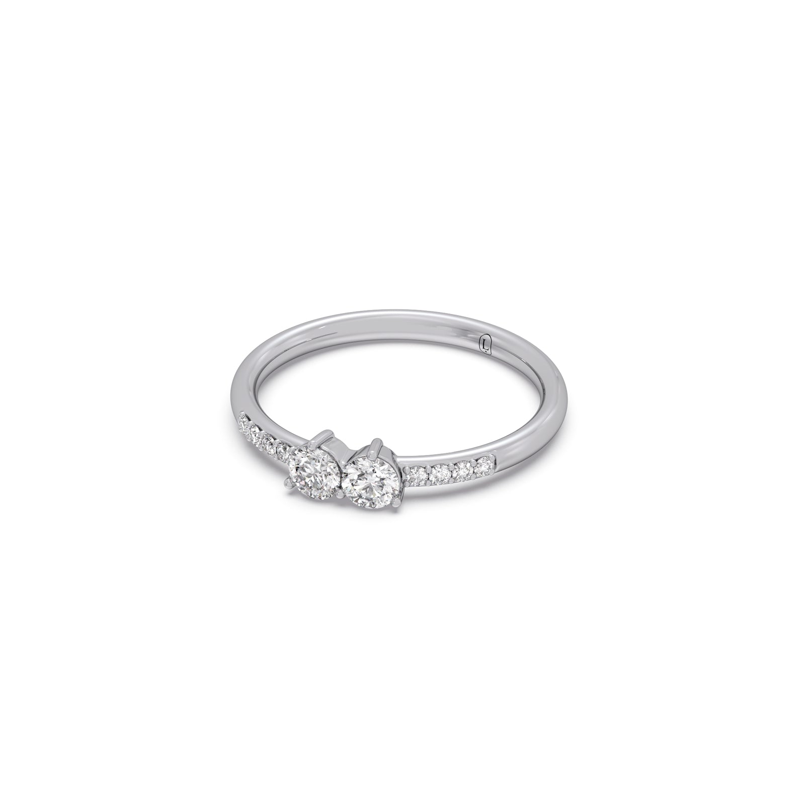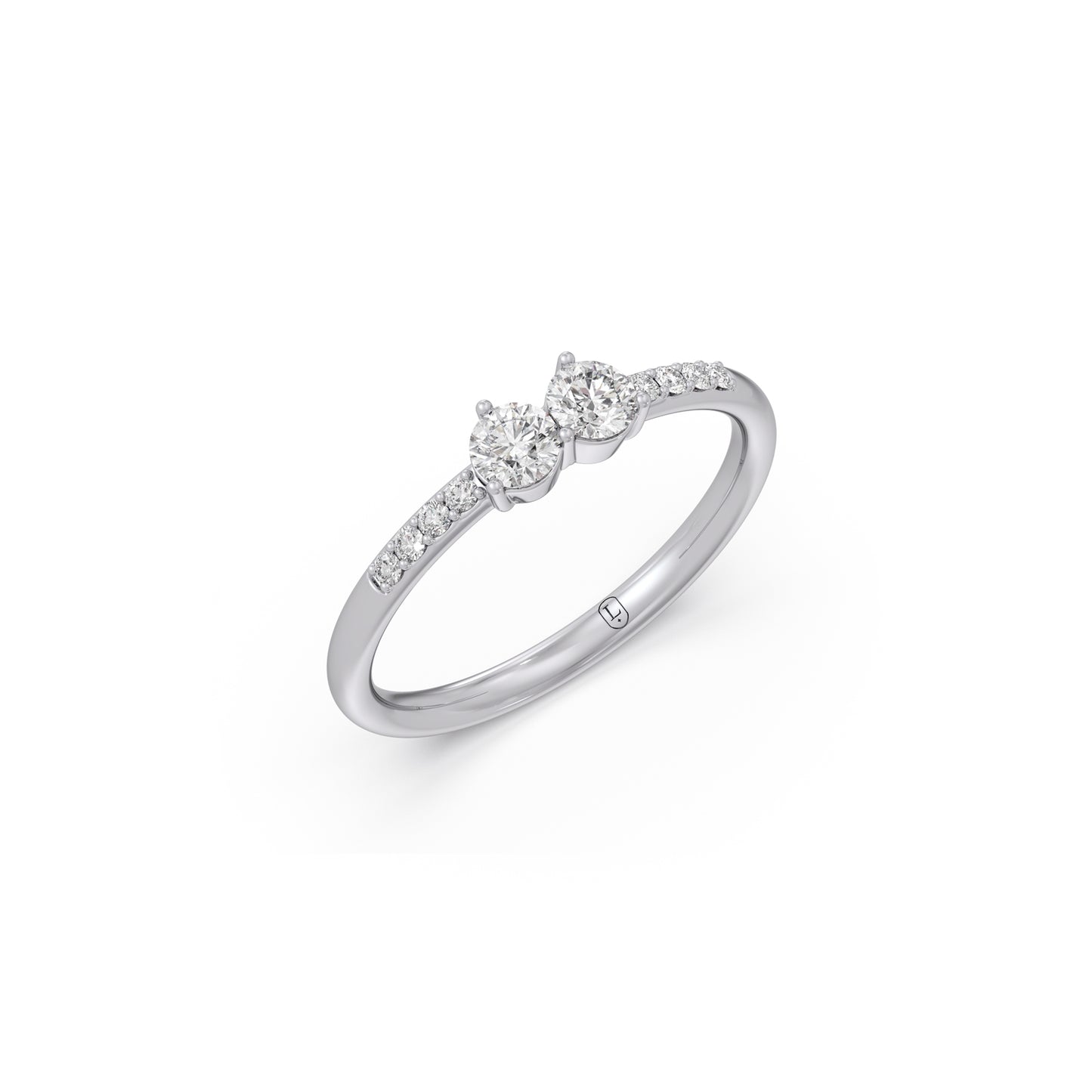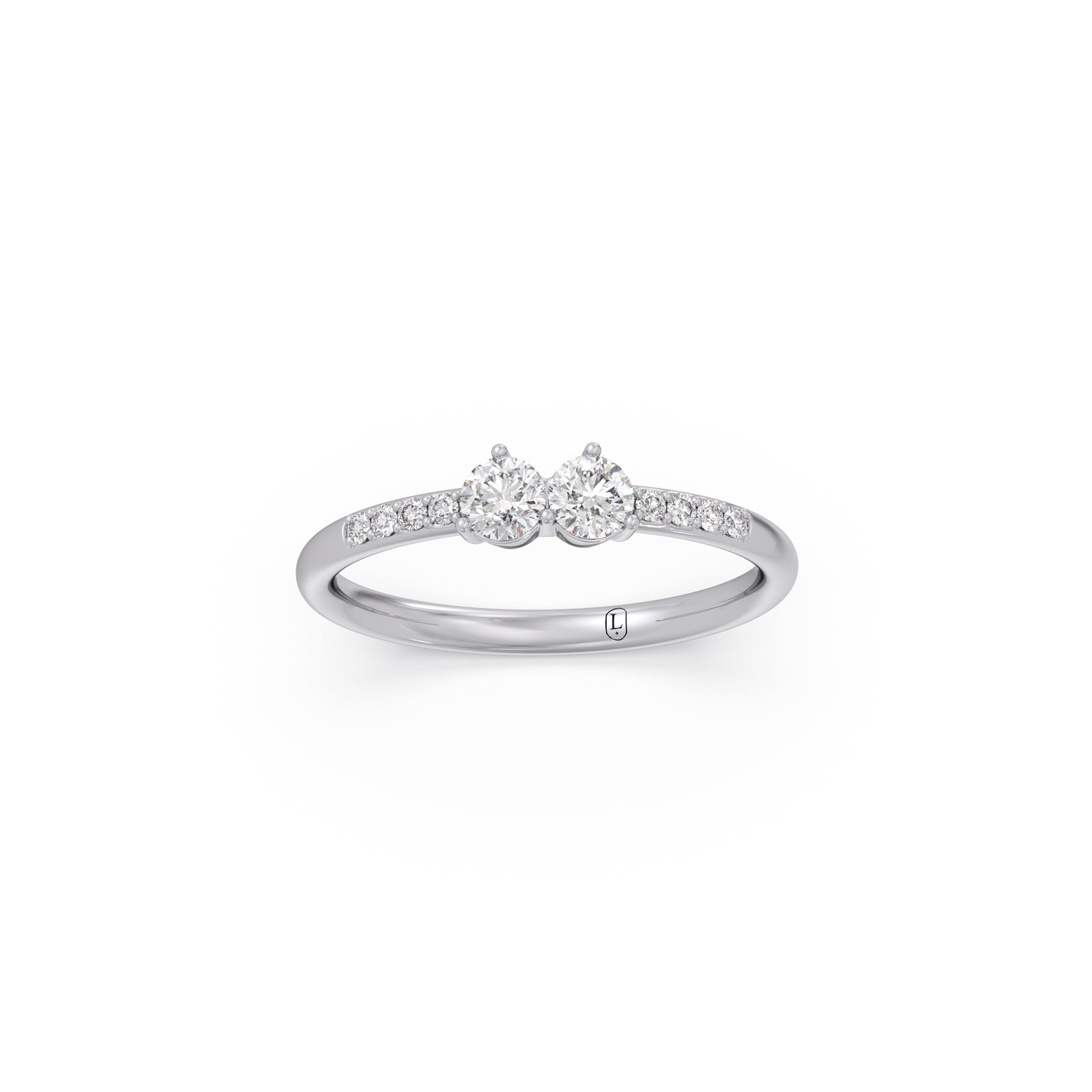 Adorn your hand with the breathtaking allure of the Sparkling Horizon Round Diamond Ring. This exquisite piece features a brilliant two-stone round diamonds with sidestones, capturing the light with every movement. Its elegant and timeless design symbolizes an endless love and a future as bright as the stone itself. A perfect declaration of your commitment.