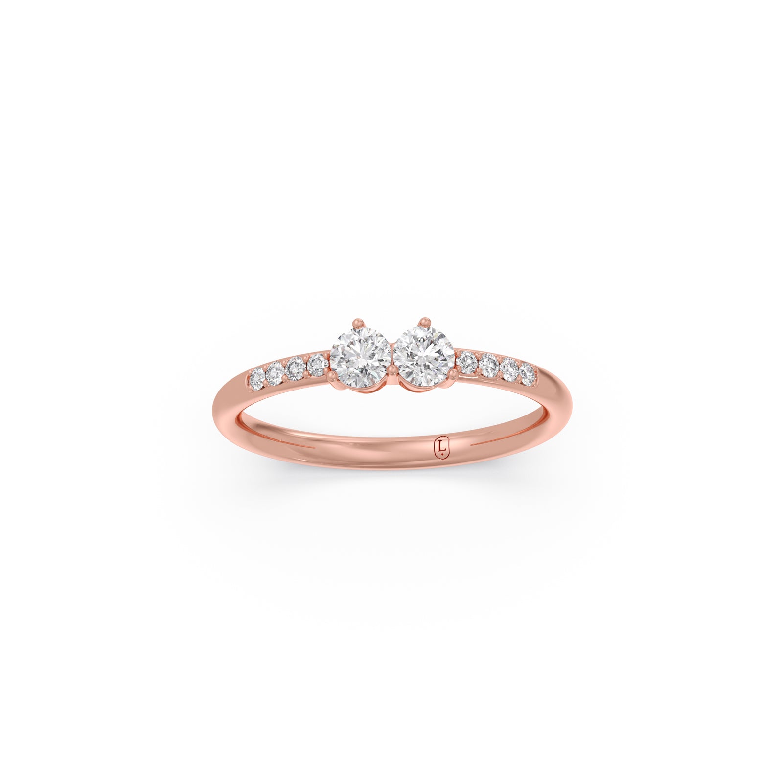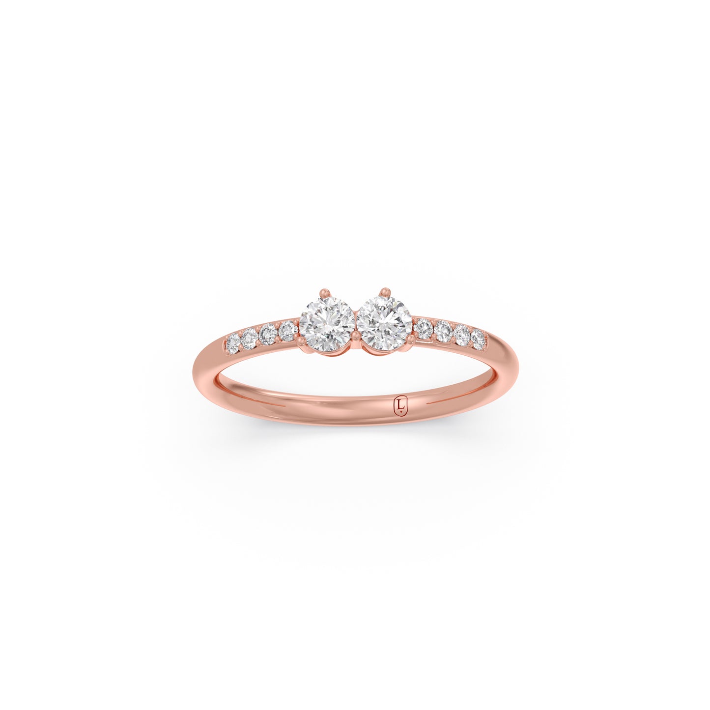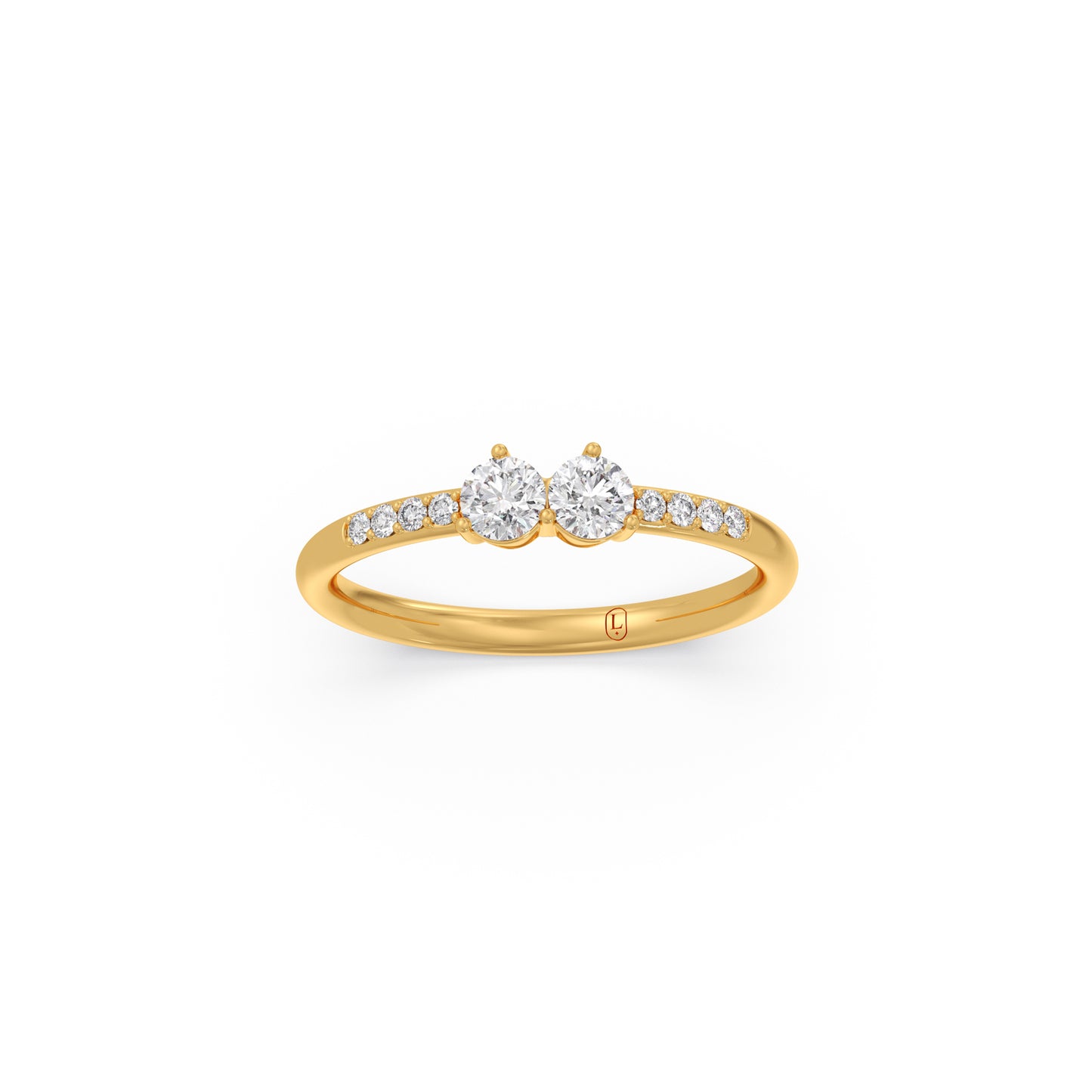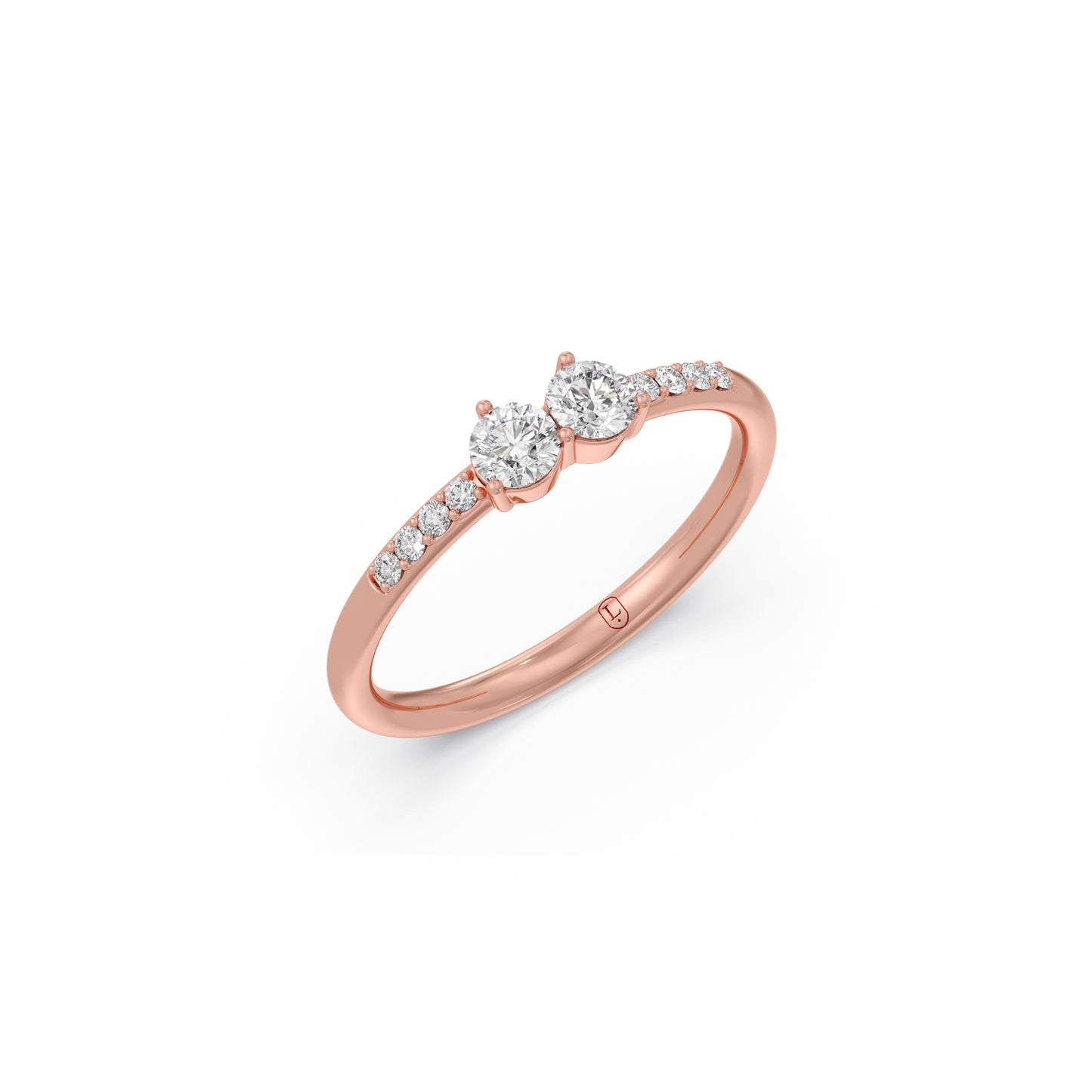 Adorn your hand with the breathtaking allure of the Sparkling Horizon Round Diamond Ring. This exquisite piece features a brilliant two-stone round diamonds with sidestones, capturing the light with every movement. Its elegant and timeless design symbolizes an endless love and a future as bright as the stone itself. A perfect declaration of your commitment.