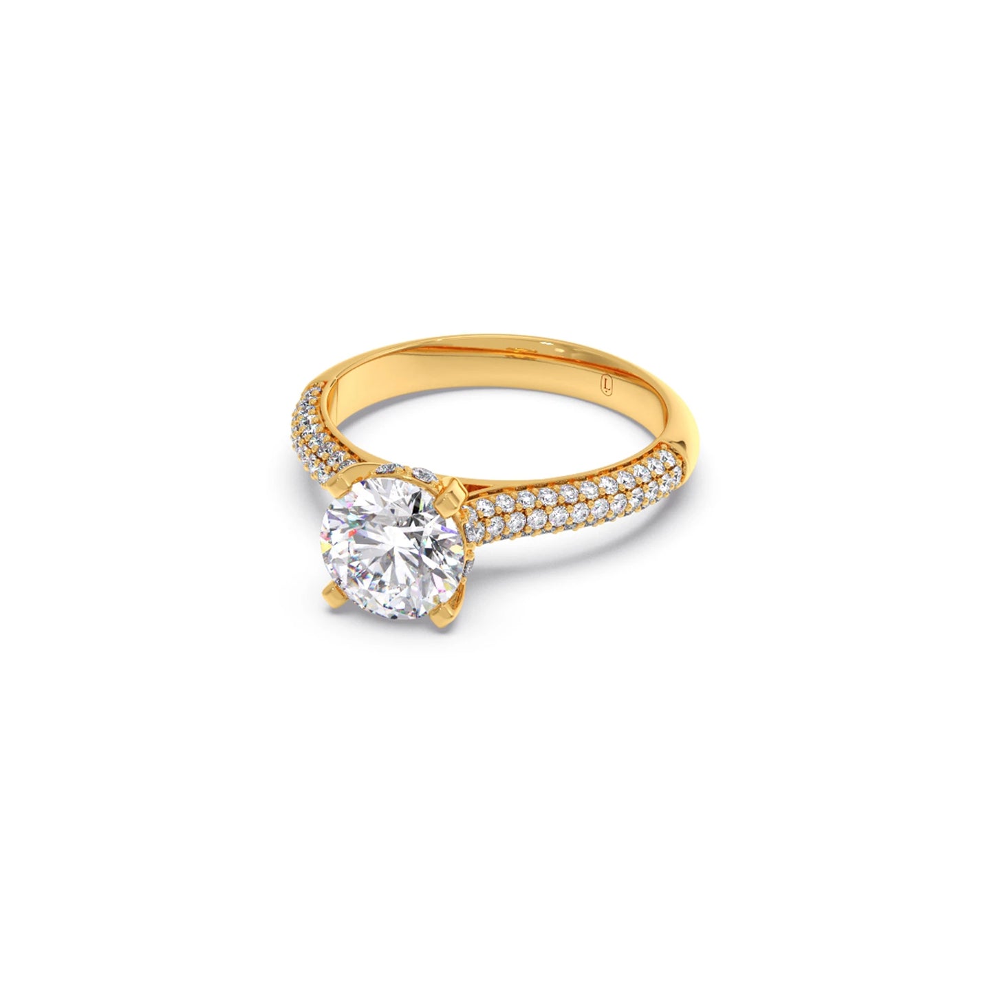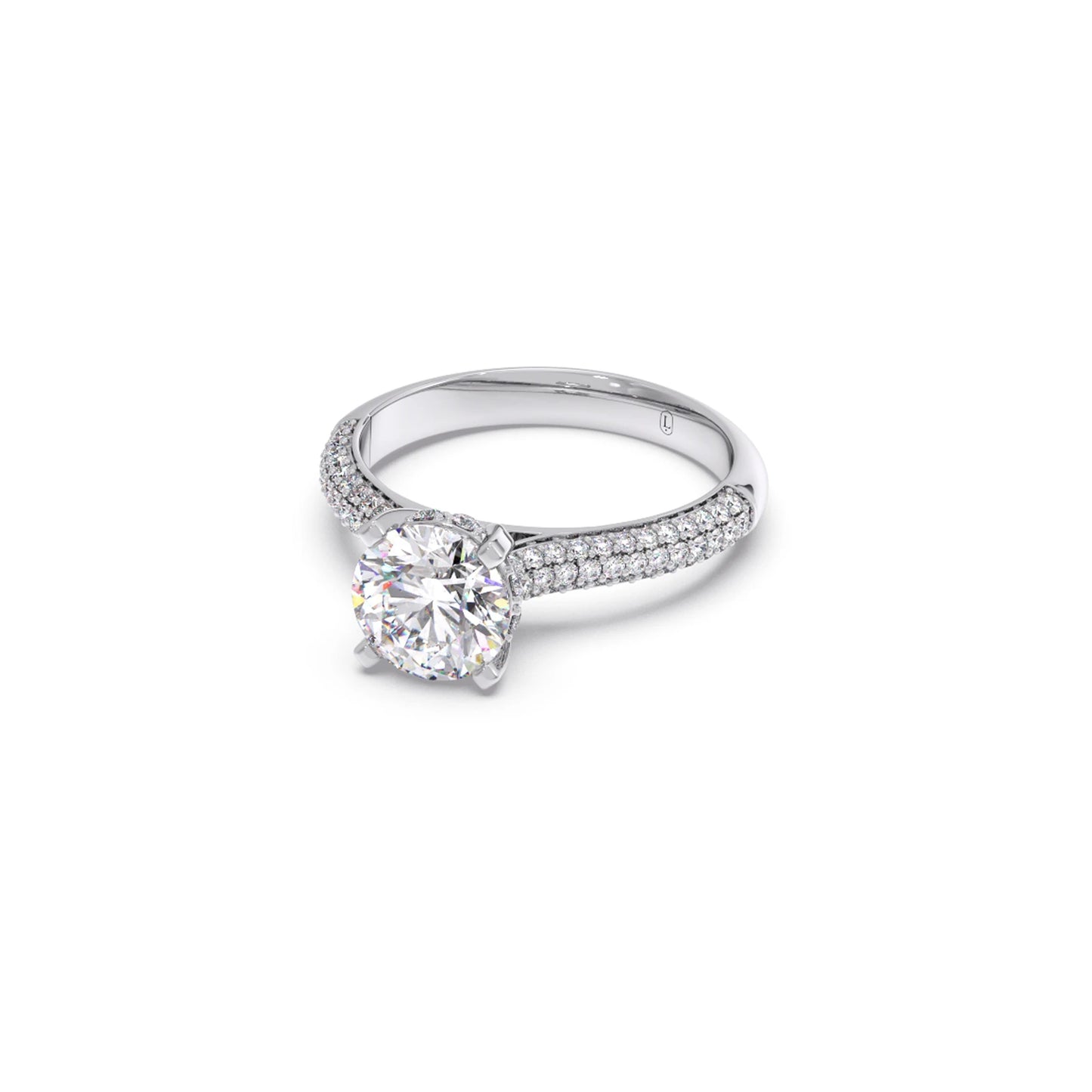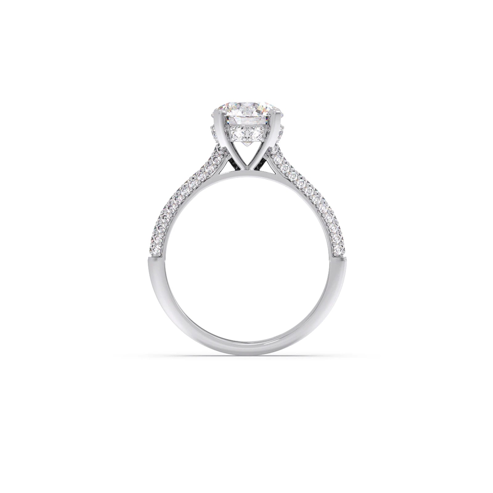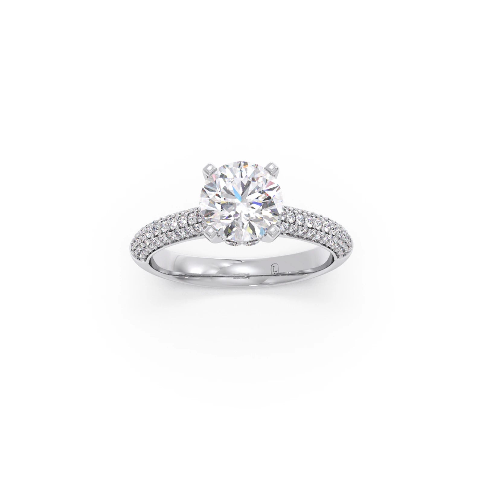 The Sparkling Round Solitaire with Diamond Accent Band Engagement Ring features a brilliant round-cut center stone, elegantly set on a shimmering diamond-accented band. This timeless design enhances sparkle and sophistication, making it the perfect choice for those who appreciate classic elegance with a touch of modern brilliance.