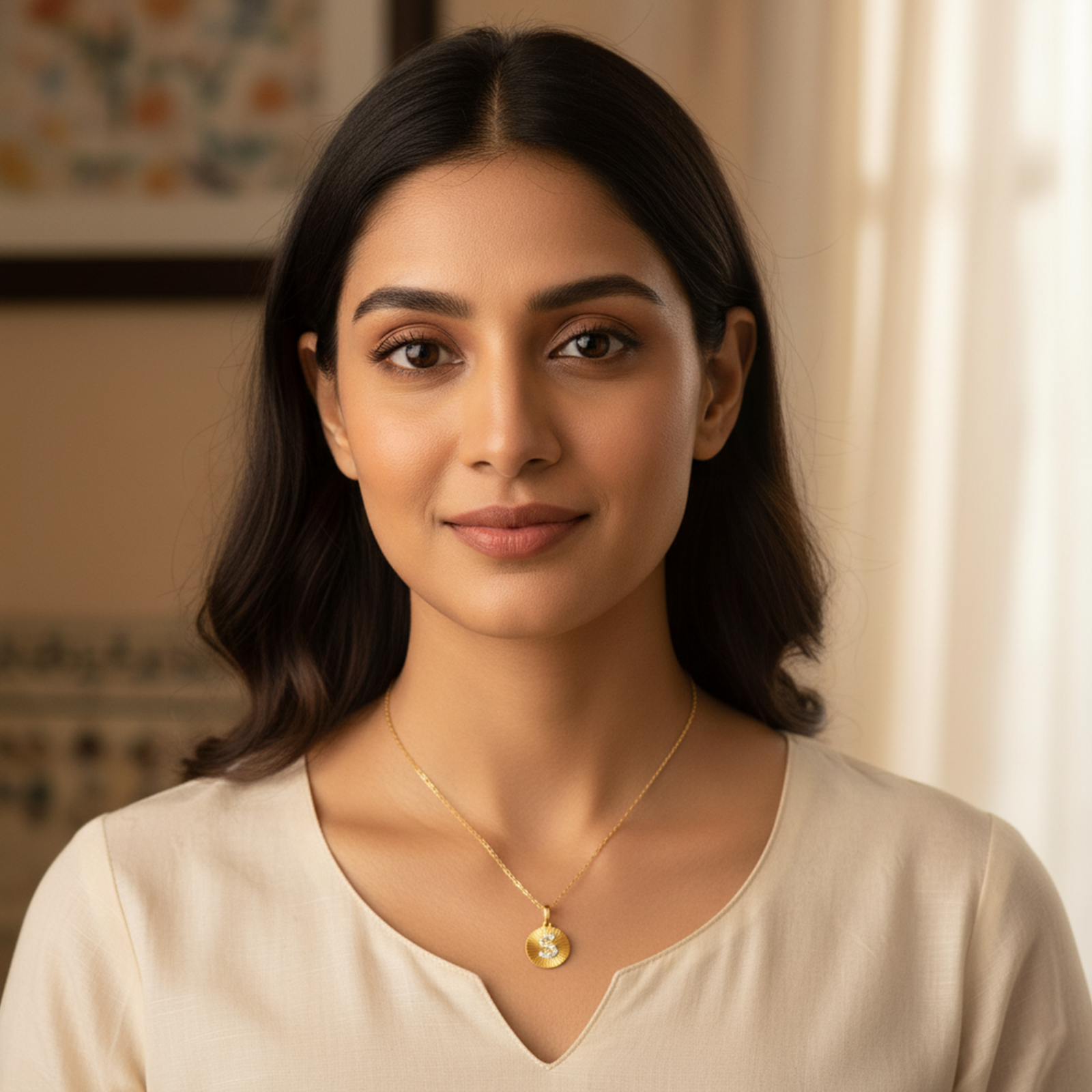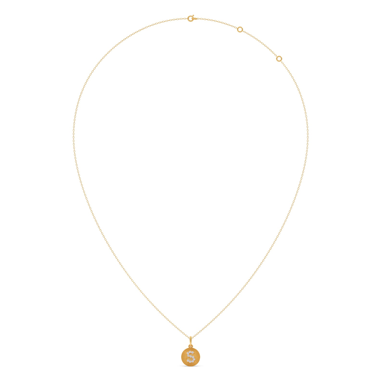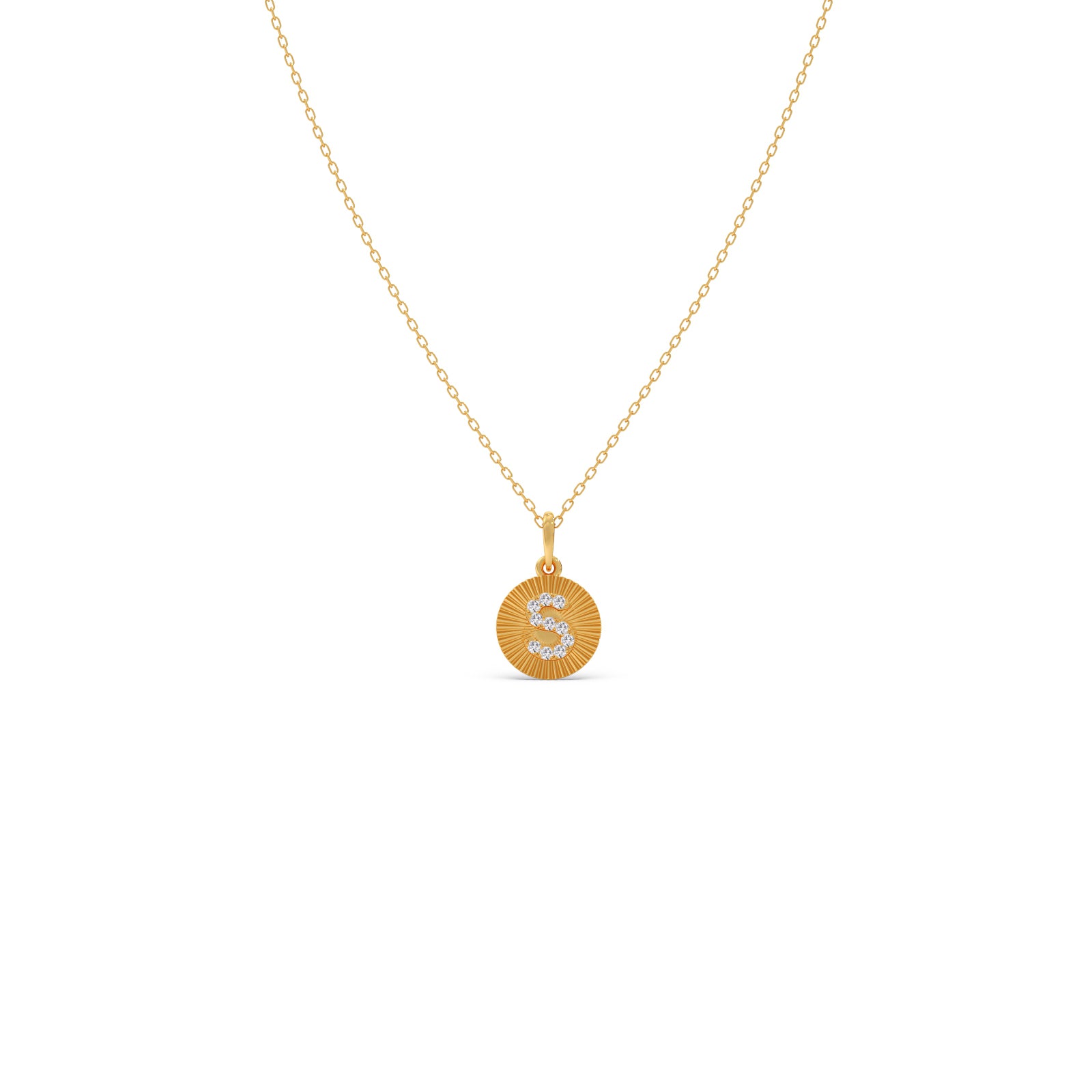 The Sparkling S Diamond Pendant features the letter “S” beautifully crafted with shimmering Round Diamonds set on a sleek metal plate. Elegant and personalized, this pendant adds a touch of brilliance and sophistication—perfect for everyday wear or as a meaningful gift.