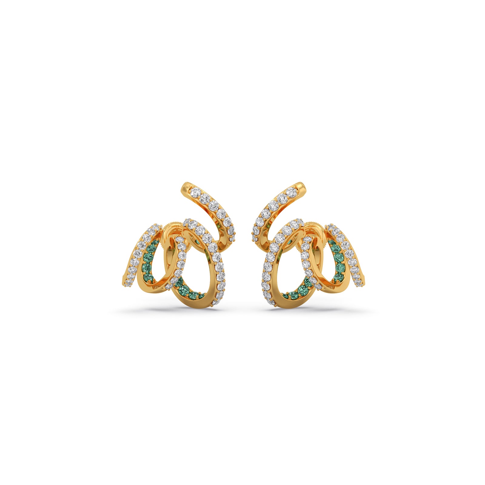 Spiral Gemstone Diamond Earrings feature a captivating spiral design adorned with vibrant Round Gemstones and shimmering Round Diamonds. The dynamic, swirling silhouette adds movement and elegance, creating a bold yet graceful statement. Perfect for festive occasions or evening wear, these earrings blend color, sparkle, and sophistication in perfect harmony.