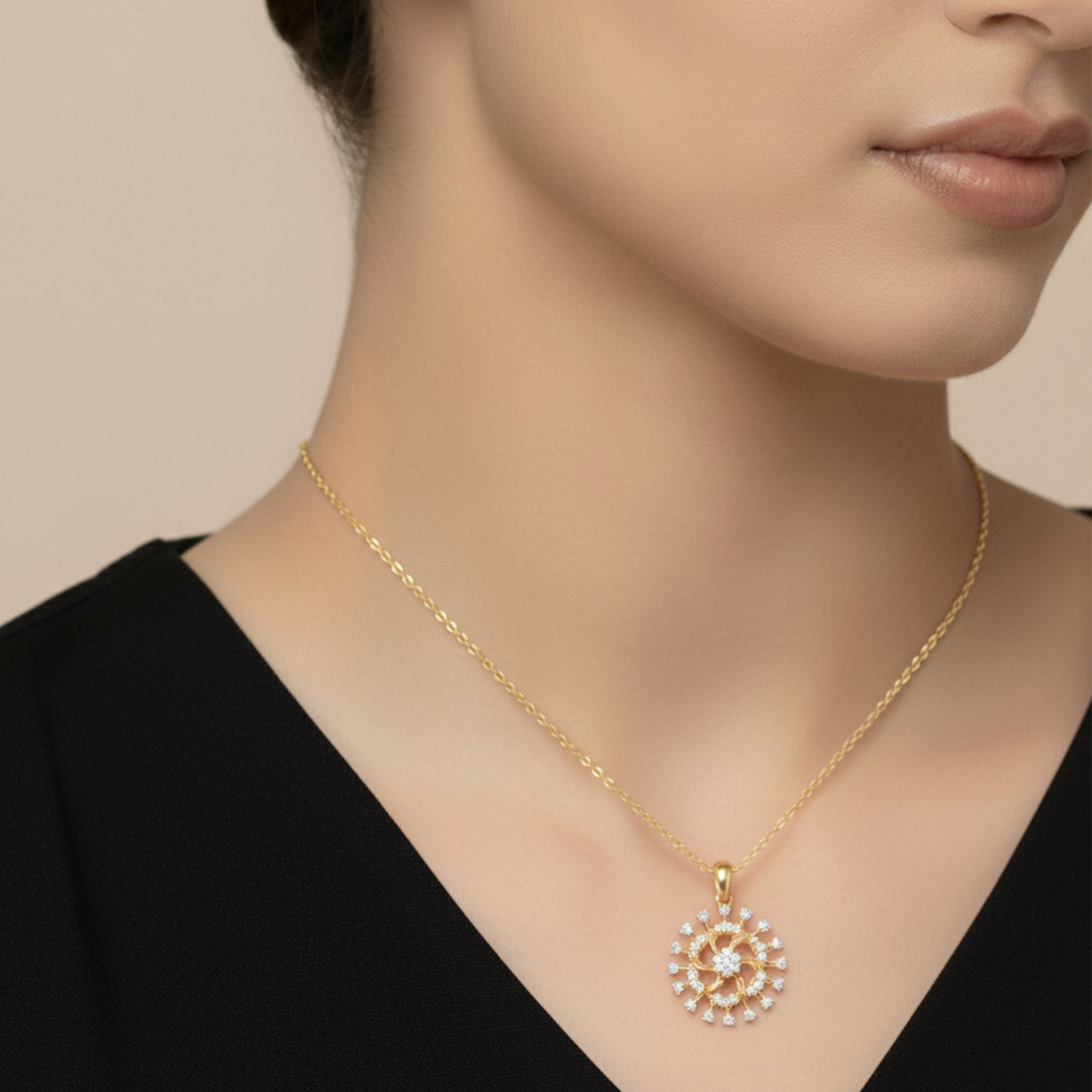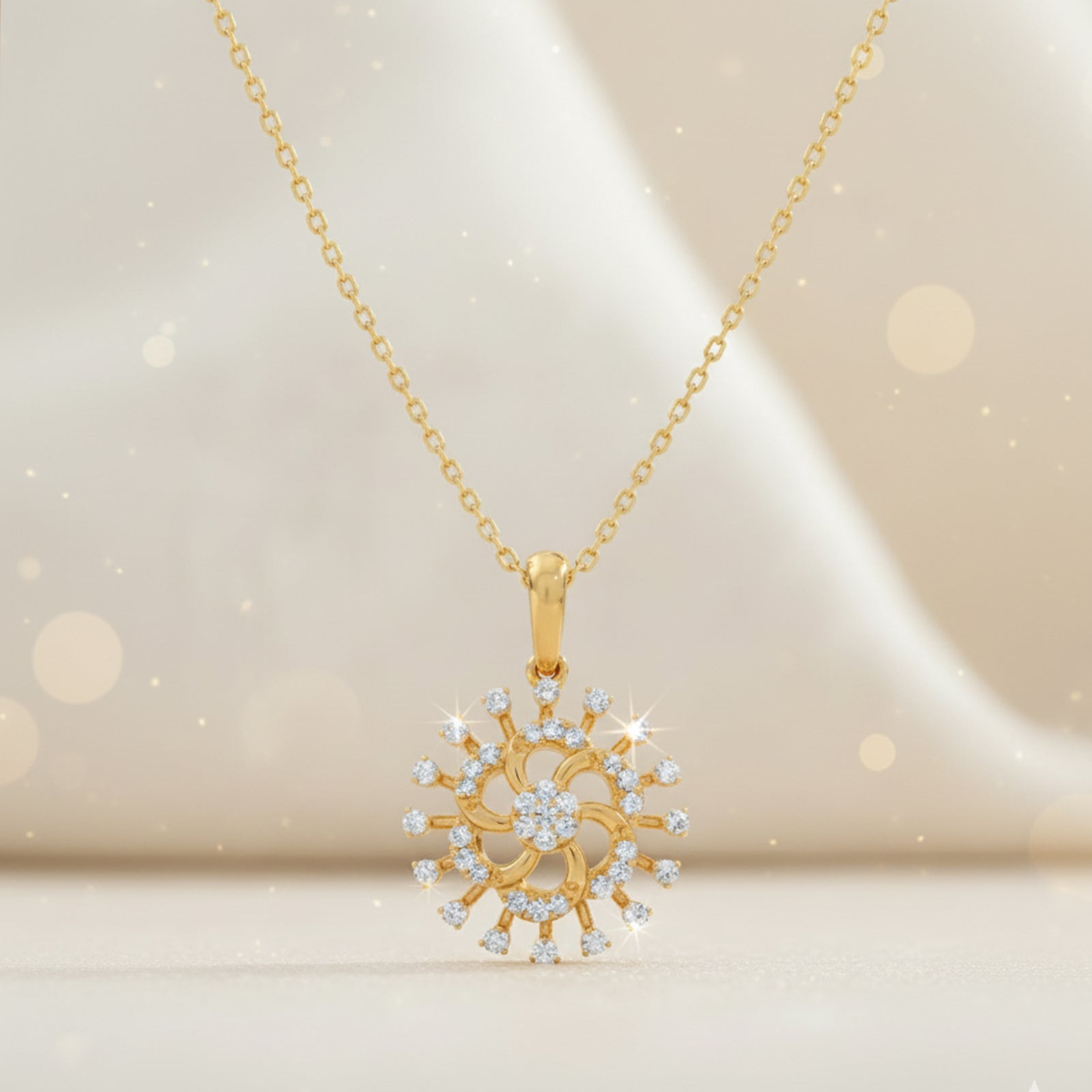 Where artistry meets brilliance. This Starlight Swirl Necklace showcases a captivating concentric diamond design that spirals outward, creating exceptional dimension. It's an imaginative, luxurious statement piece that draws the eye and holds the light beautifully.