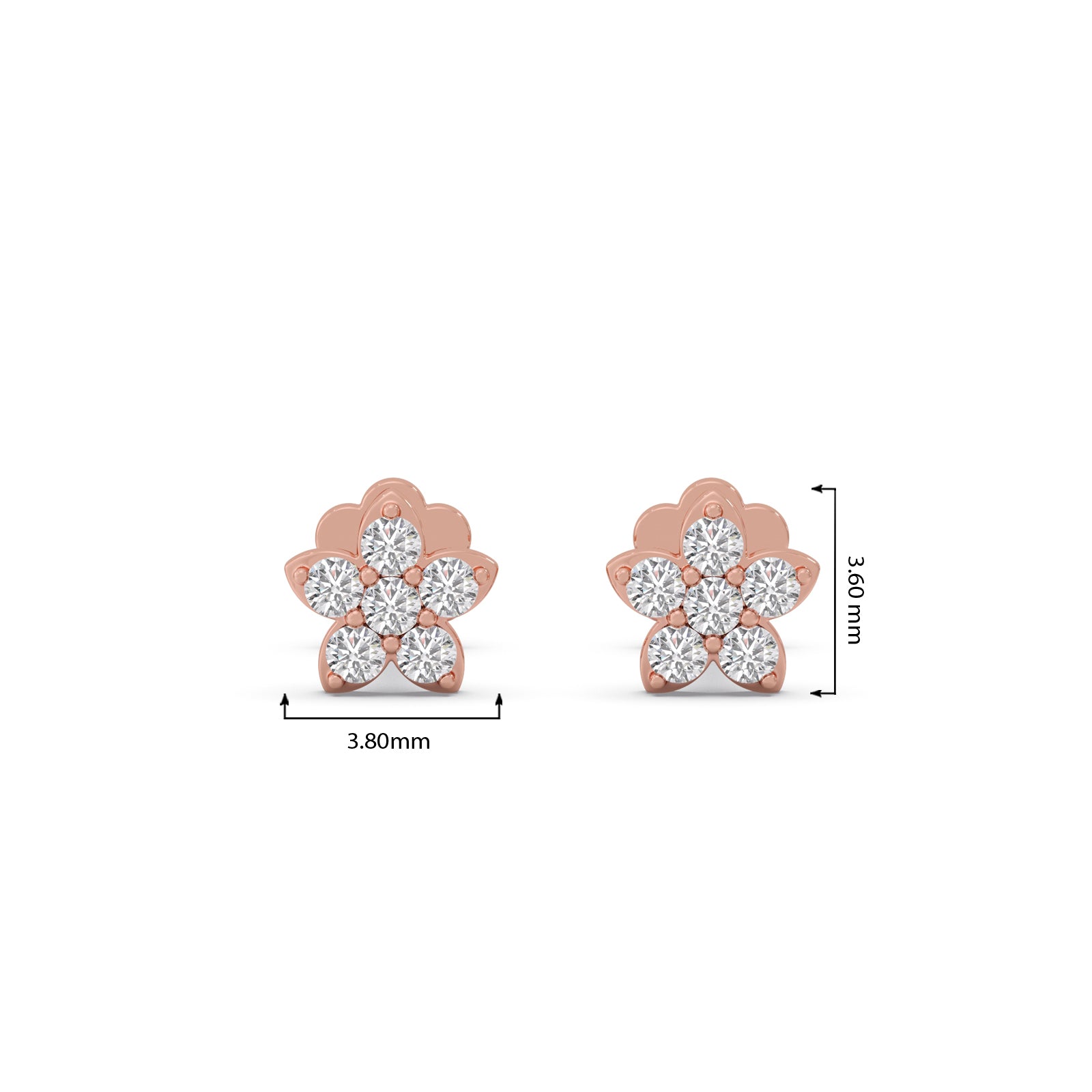 The Stellar Petal Stud Earrings showcase six round diamonds in a beautiful floral arrangement in each earring. Designed to resemble delicate petals, these studs blend timeless charm with radiant sparkle—perfect for adding a touch of elegance to any ensemble.