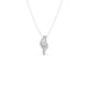 A captivating solitaire pendant features a brilliant round diamond embraced by a delicate, swirling design in precious metal. Subtle diamond accents enhance the central stone's sparkle, adding a touch of extra allure. This elegant pendant offers a modern twist on a classic, perfect for adding graceful shimmer to any look.