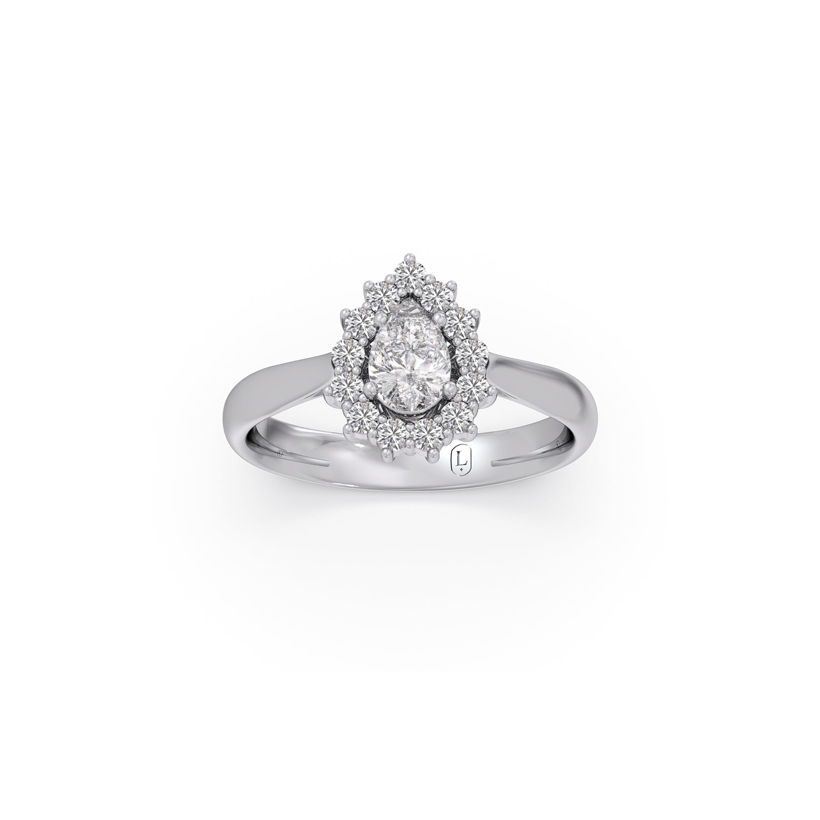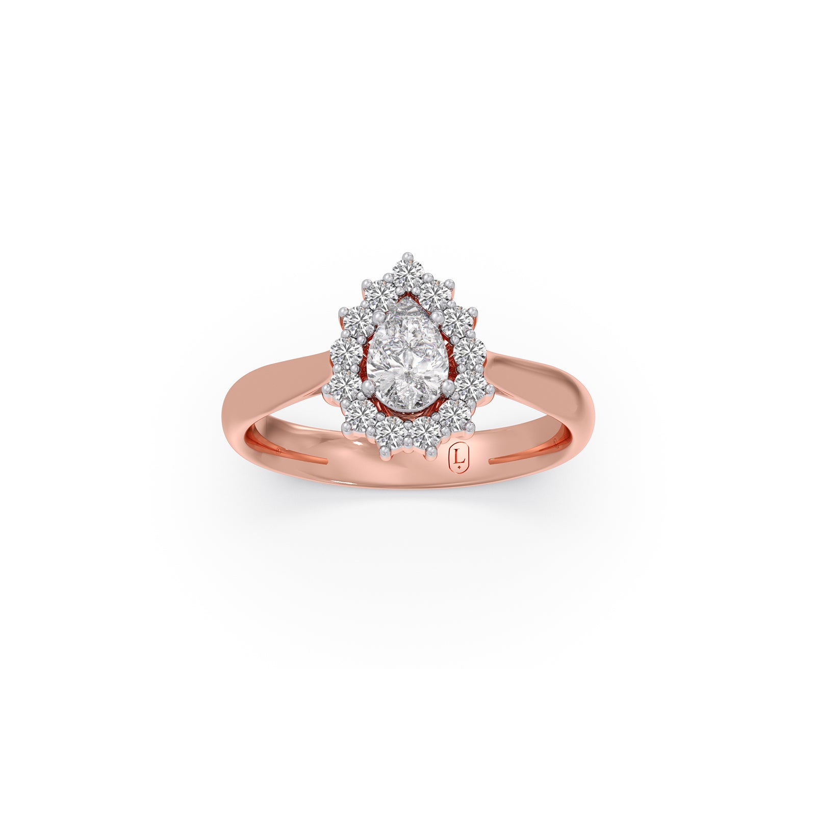 Tear Drop Shape Diamond with Halo Setting Ring