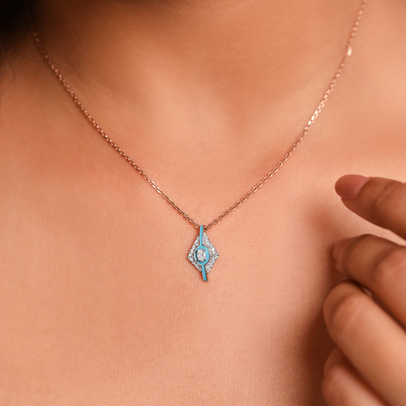 Elegant and full of cosmic wonder, this The Cotton Candy Interstellar Pendant captures the beauty of the night sky. The clean lines, sparkling diamonds, and vibrant blue enamel create a modern, minimalist design that feels both sophisticated and dynamic. It's the perfect piece for anyone who loves to shine with a unique brilliance.