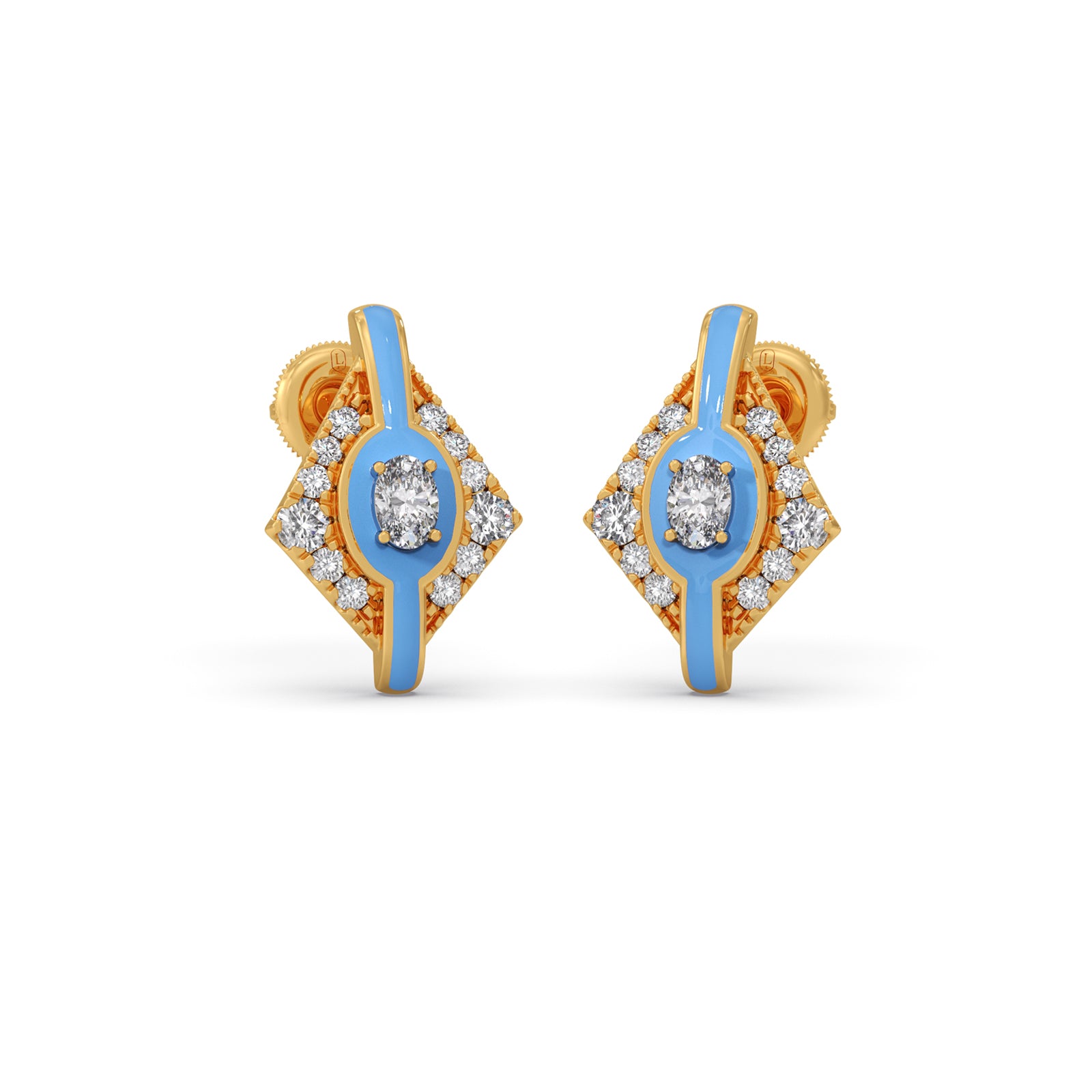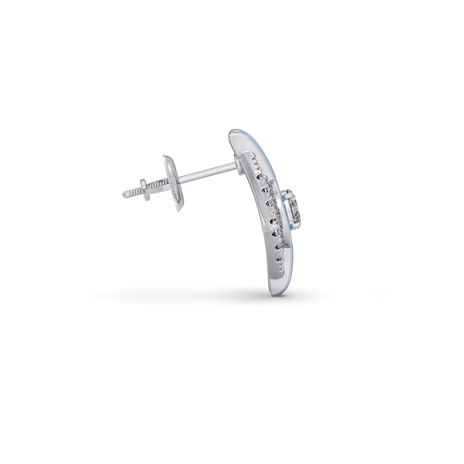 Radiating cosmic elegance, these The Cotton Candy Interstellar Studs are a modern take on classic glamour. The clean, linear design with a flash of light blue enamel is accented by brilliant diamonds, creating a look that's both bold and beautiful. They're the perfect statement piece for everyday wear or a night out.