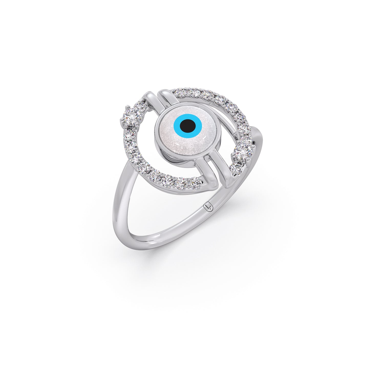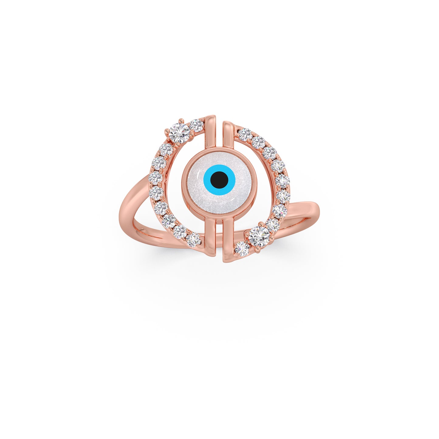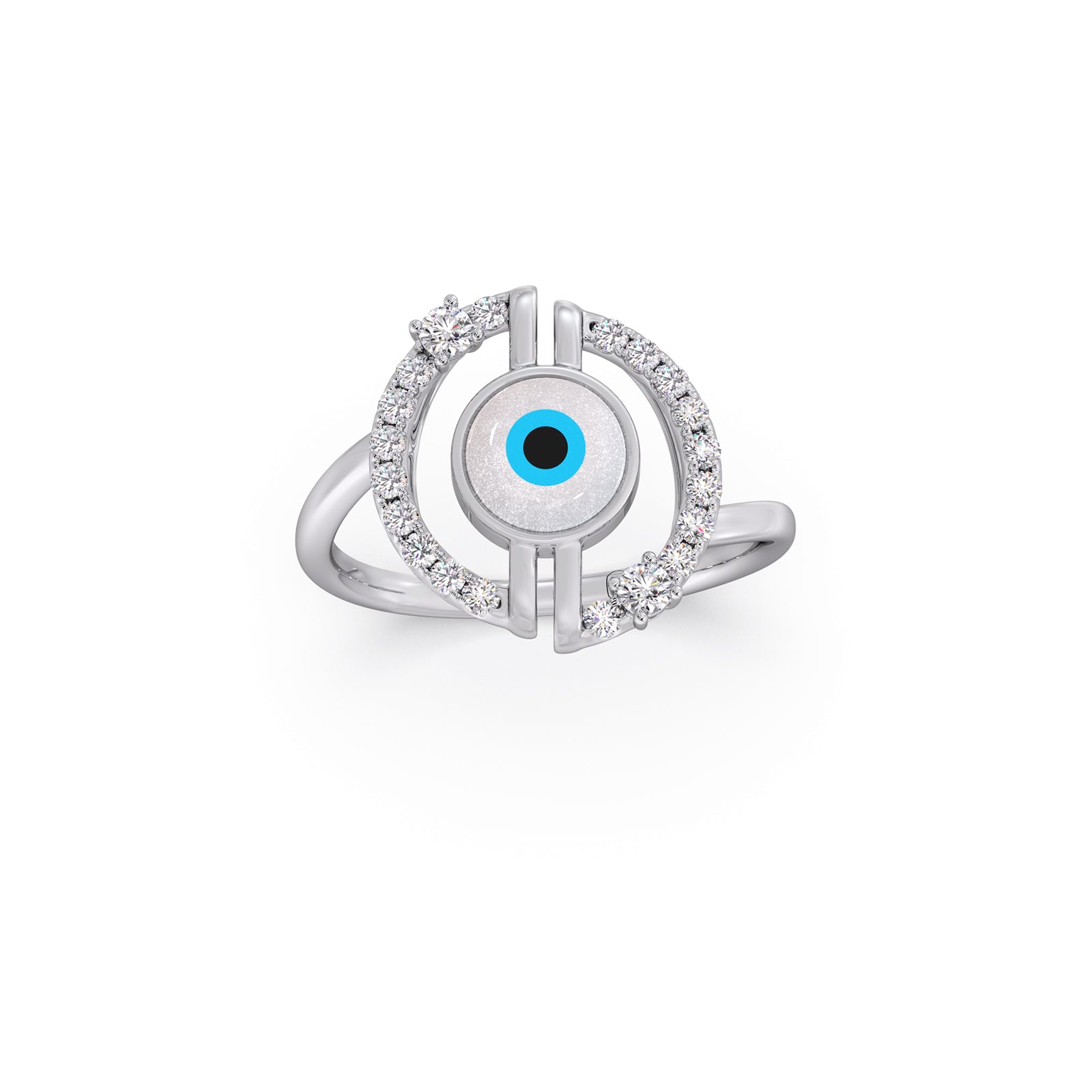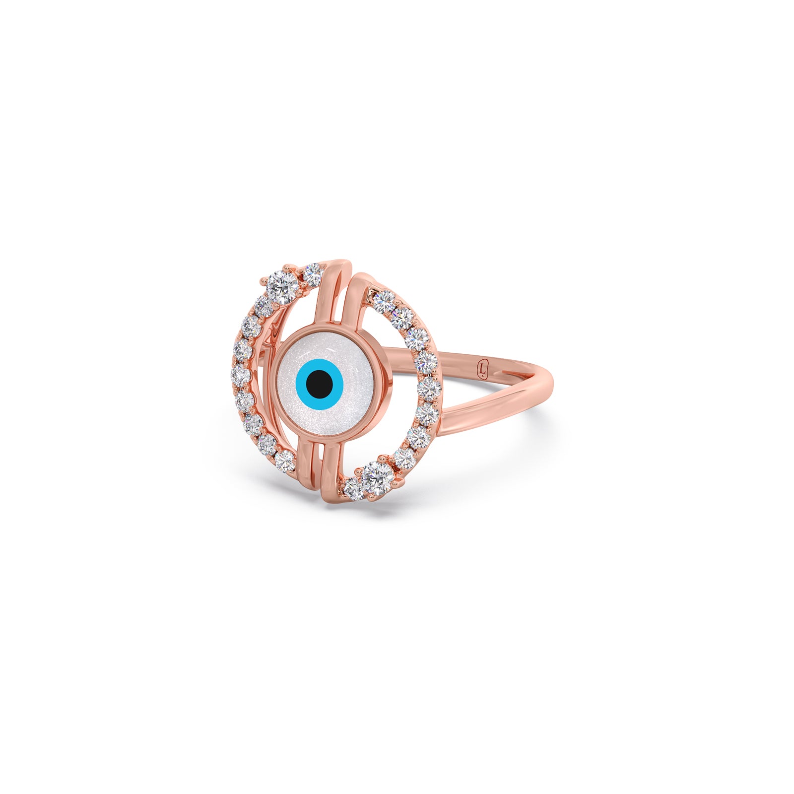 The Diamond Nazar Protector Ring is an elegant talisman featuring the ancient Evil Eye symbol. It is believed to ward off negative energy and misfortune. The diamonds add brilliance and symbolize lasting strength, combining powerful, ancient protection with luxurious, modern style.