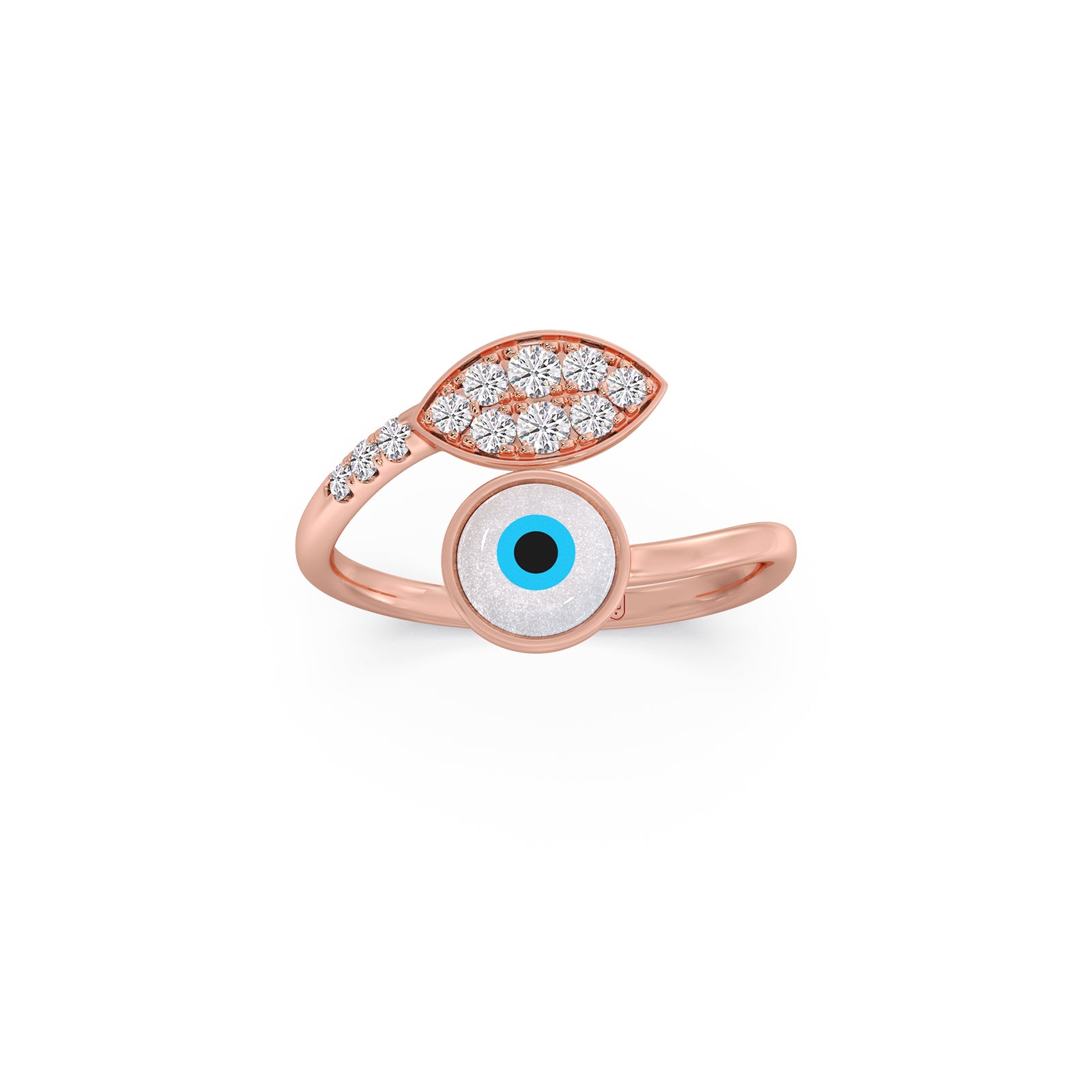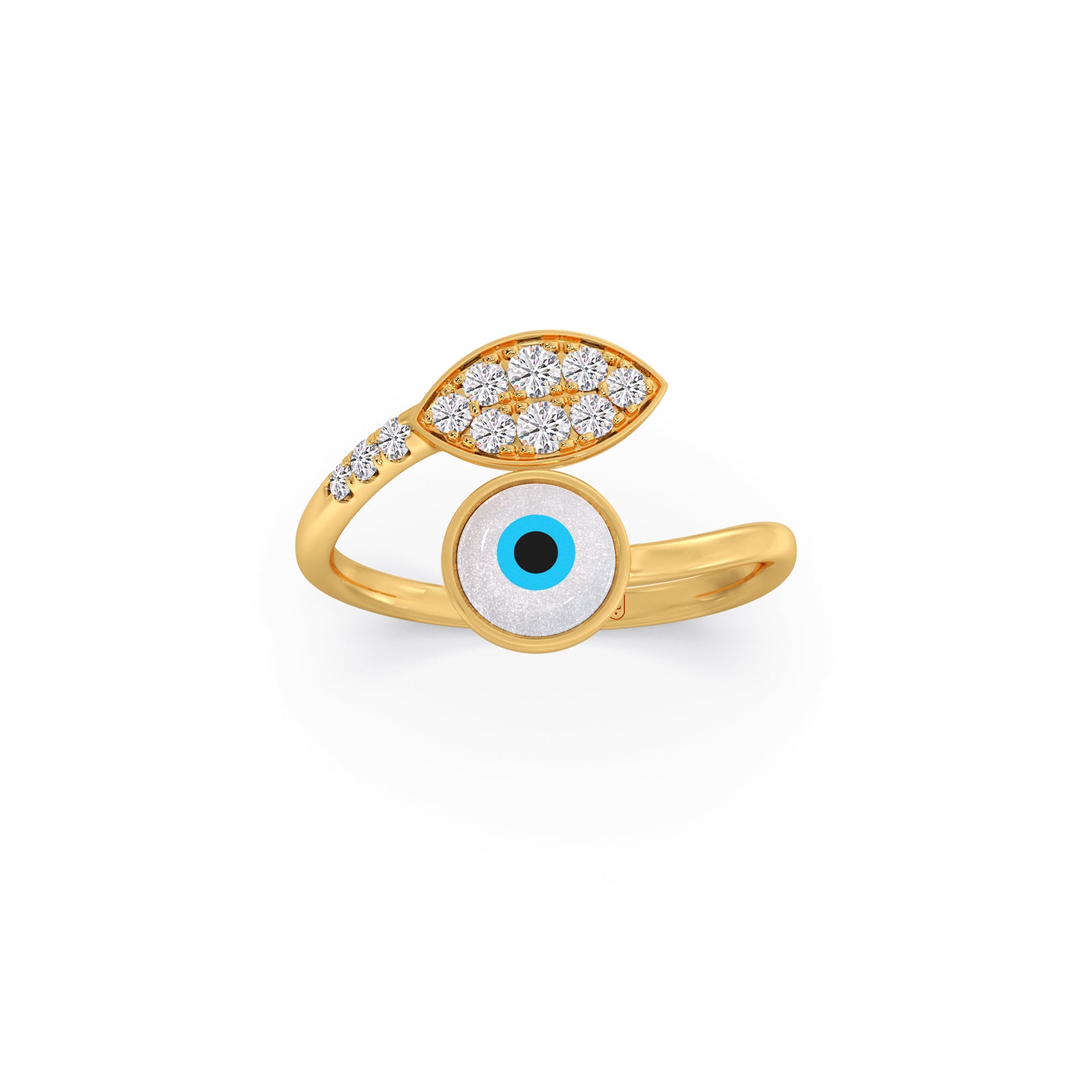 The Divine Sparkle Diamond Ring luminates celestial charm and modern elegance. Featuring a brilliant evil eye design paired with shimmering round diamonds on a graceful band, it symbolizes protection, intuition, and inner light. A statement piece that blends spiritual meaning with luxurious sparkle—truly divine in every detail.