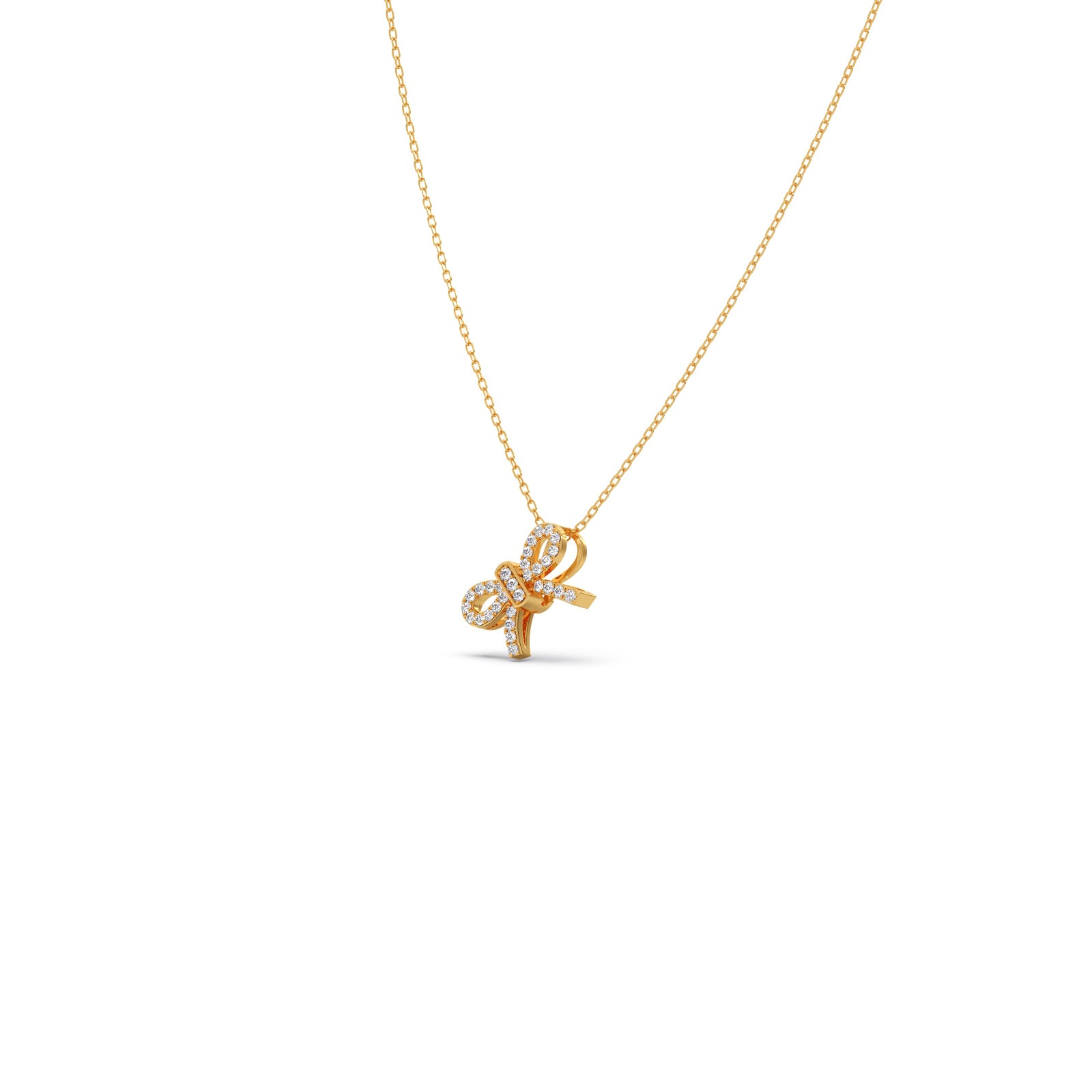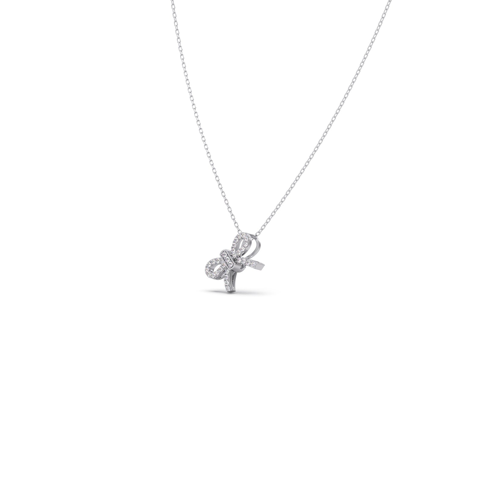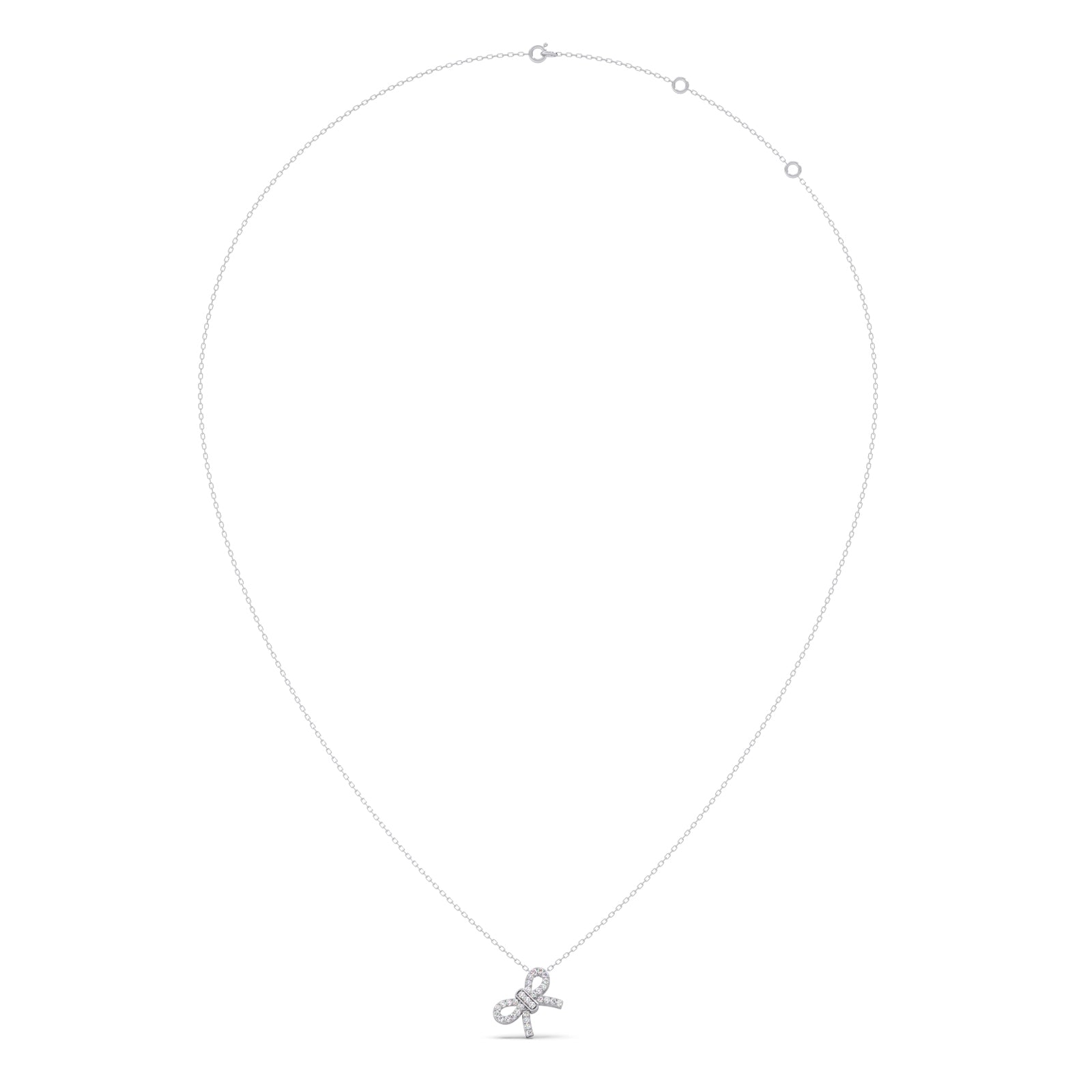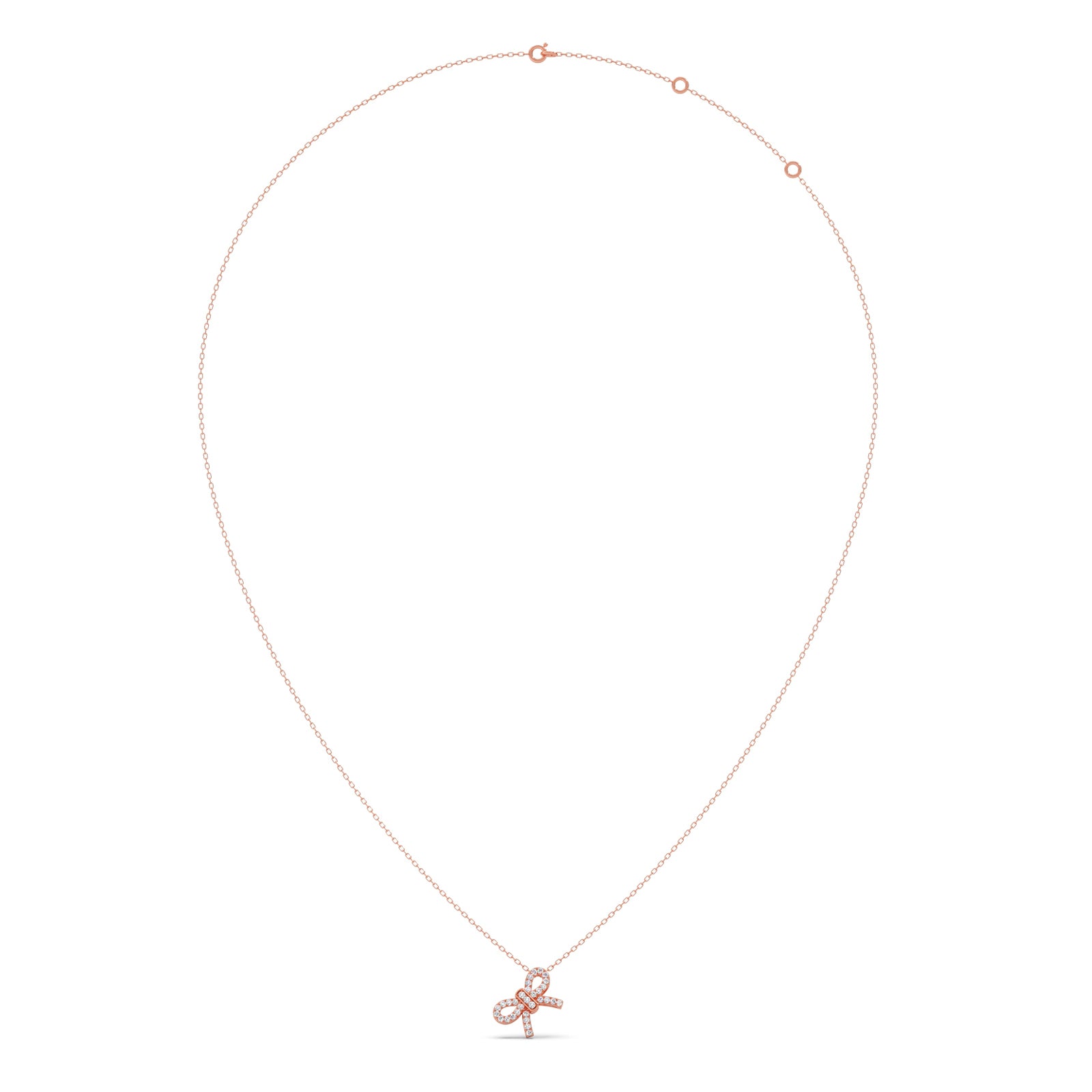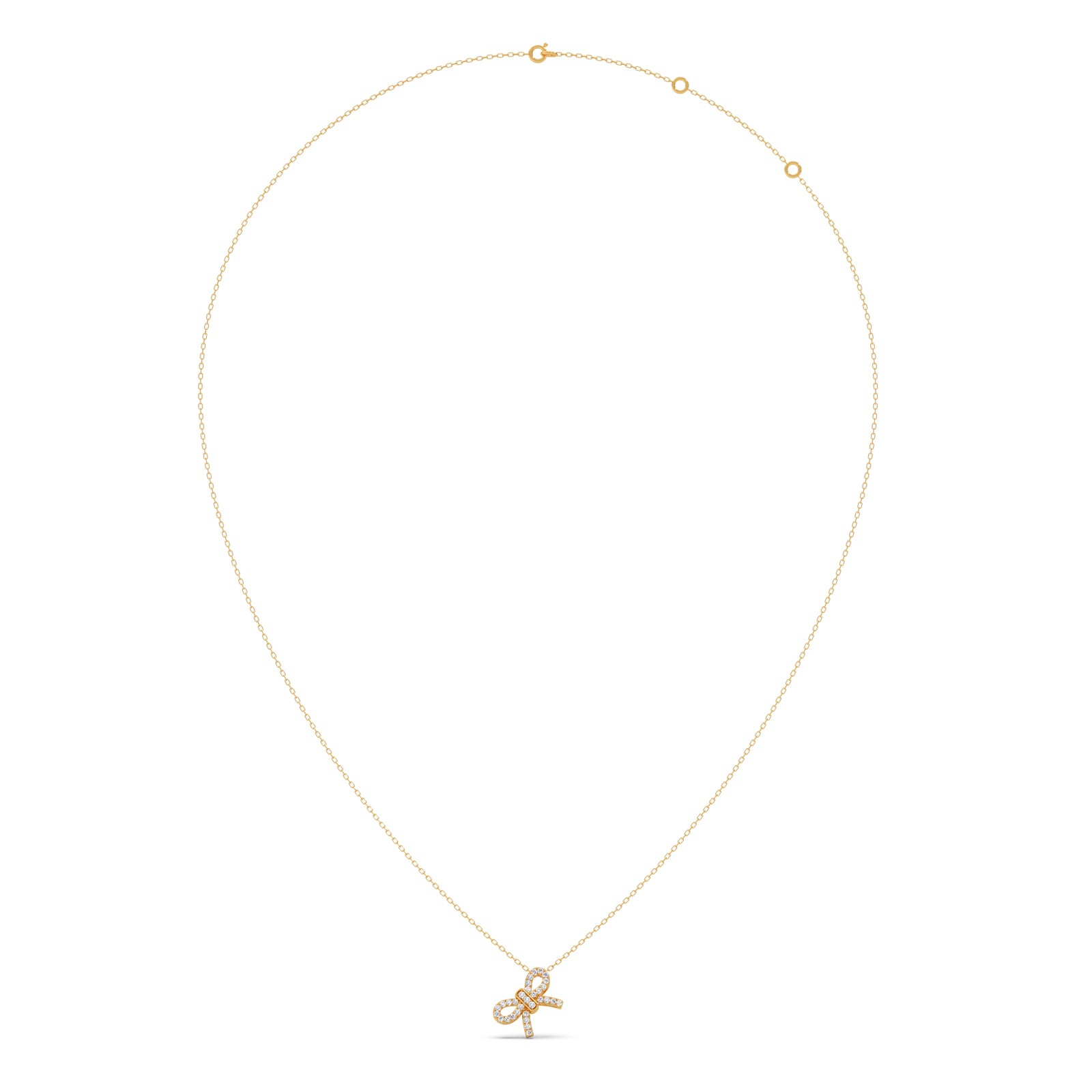 Experience endless elegance with our Entwined Ribbon Diamond Pendant. This captivating piece features a brilliant round diamond gracefully held by a flowing, ribbon-like design. The intertwined lines symbolize eternal connection and style, creating a stunning, modern look that's both meaningful and effortlessly beautiful.
