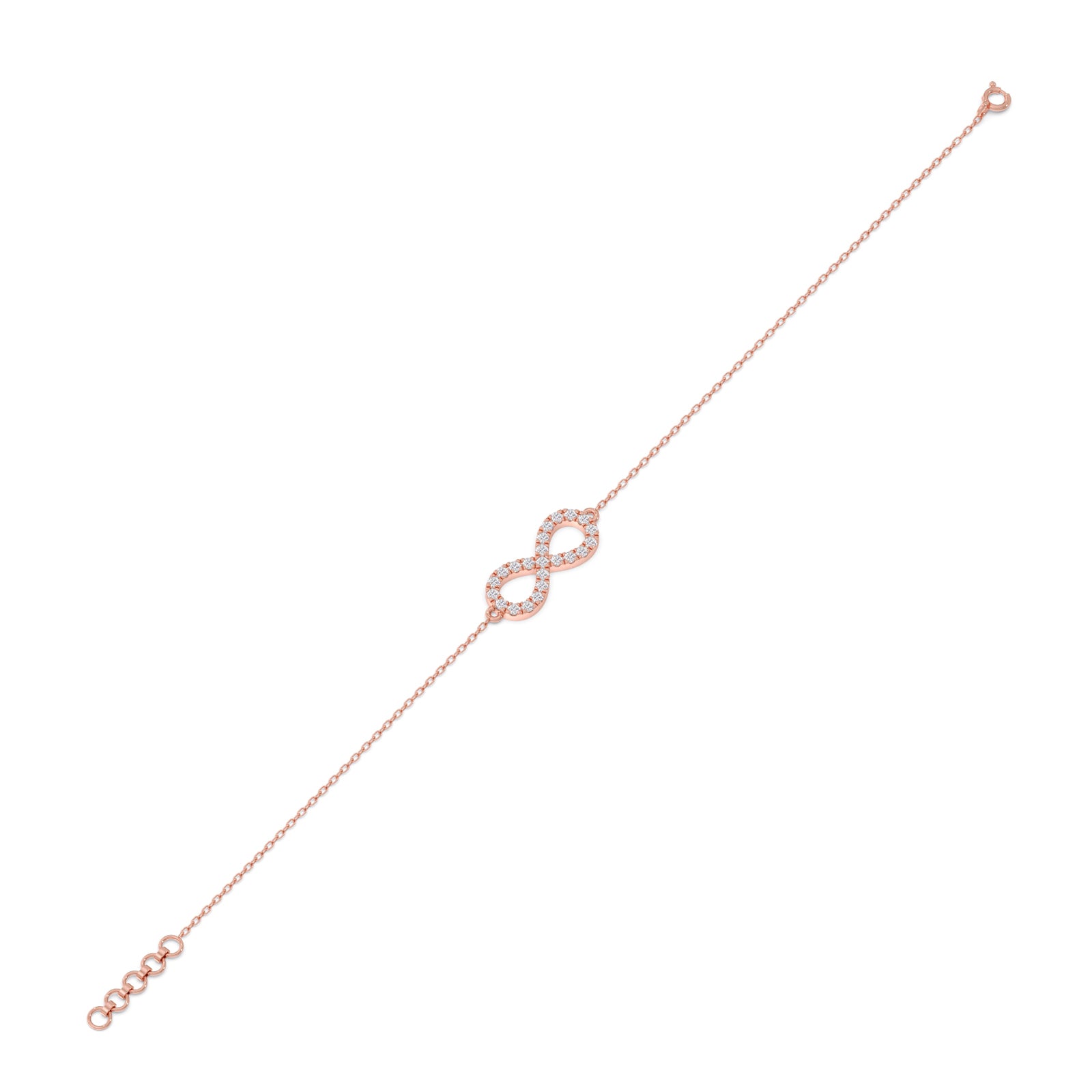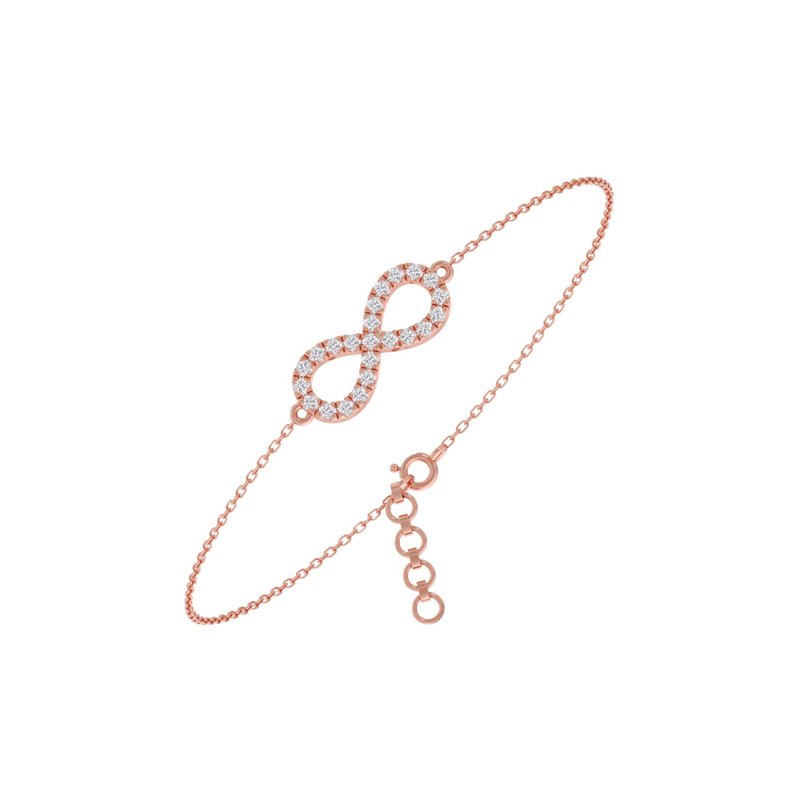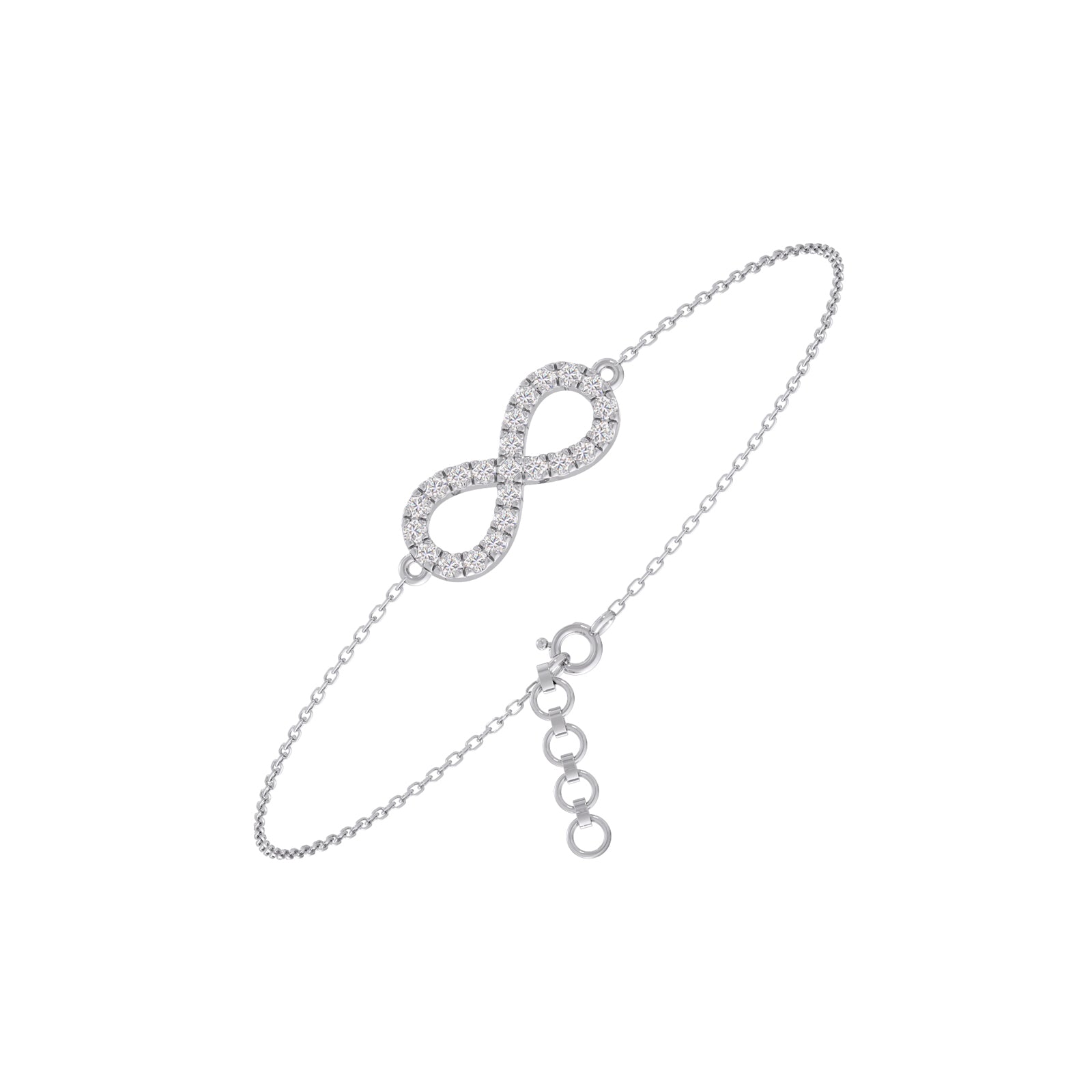 The Infinity Chain Bracelet features a sleek infinity-shaped pendant adorned with round diamonds in a delicate micro-prong setting. Symbolizing eternal elegance, the refined design sparkles with subtle brilliance, making it a timeless addition to any jewelry collection.