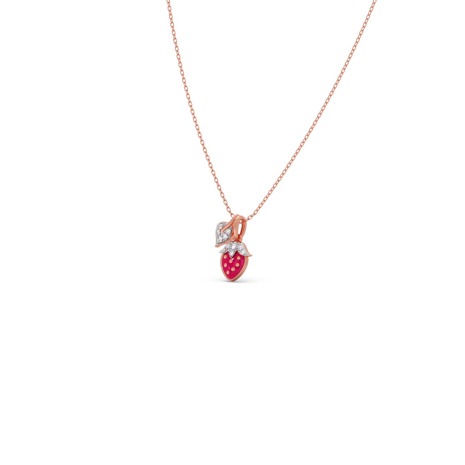 The Leafy Luxe Strawberry Diamond Kids Pendant With Chain