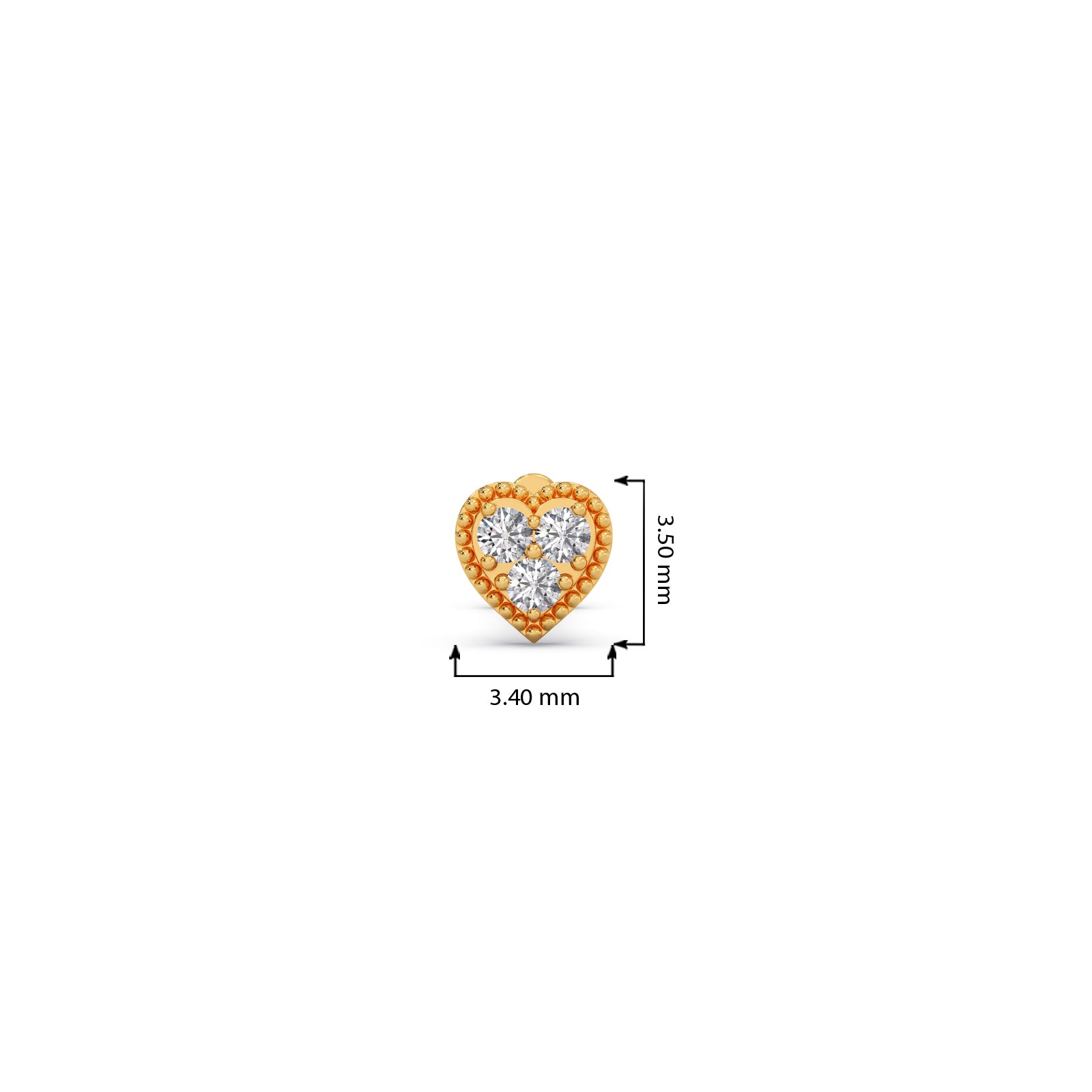 Wear your heart on your nose with our Loving Heart Diamond Nose Pin. A beautiful, brilliant diamond is delicately set within a graceful heart shape, symbolizing affection and elegance. This sweet and sparkling piece is a perfect expression of love, adding a touch of romance to your look.