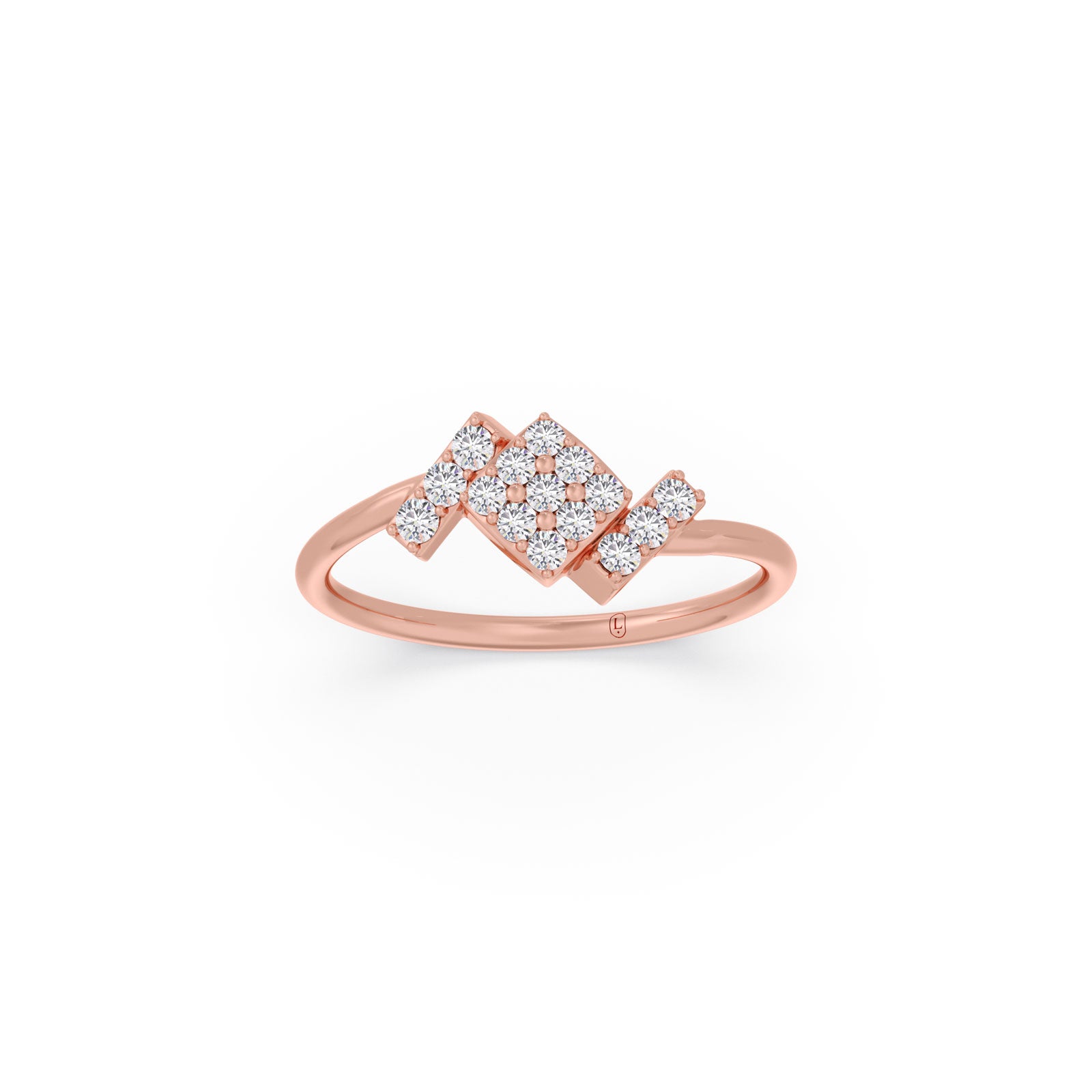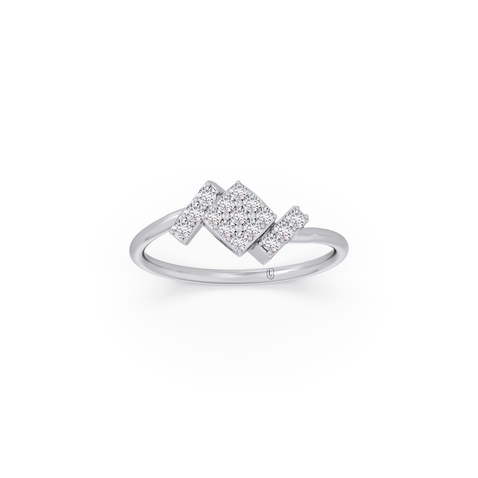 Discover the striking geometry of The Trinity Square Diamond Ring. Featuring three staggered, brilliant square clusters, this modern design creates a beautiful, rhythmic sparkle. An effortlessly chic statement piece for everyday wear. Shop this unique style.