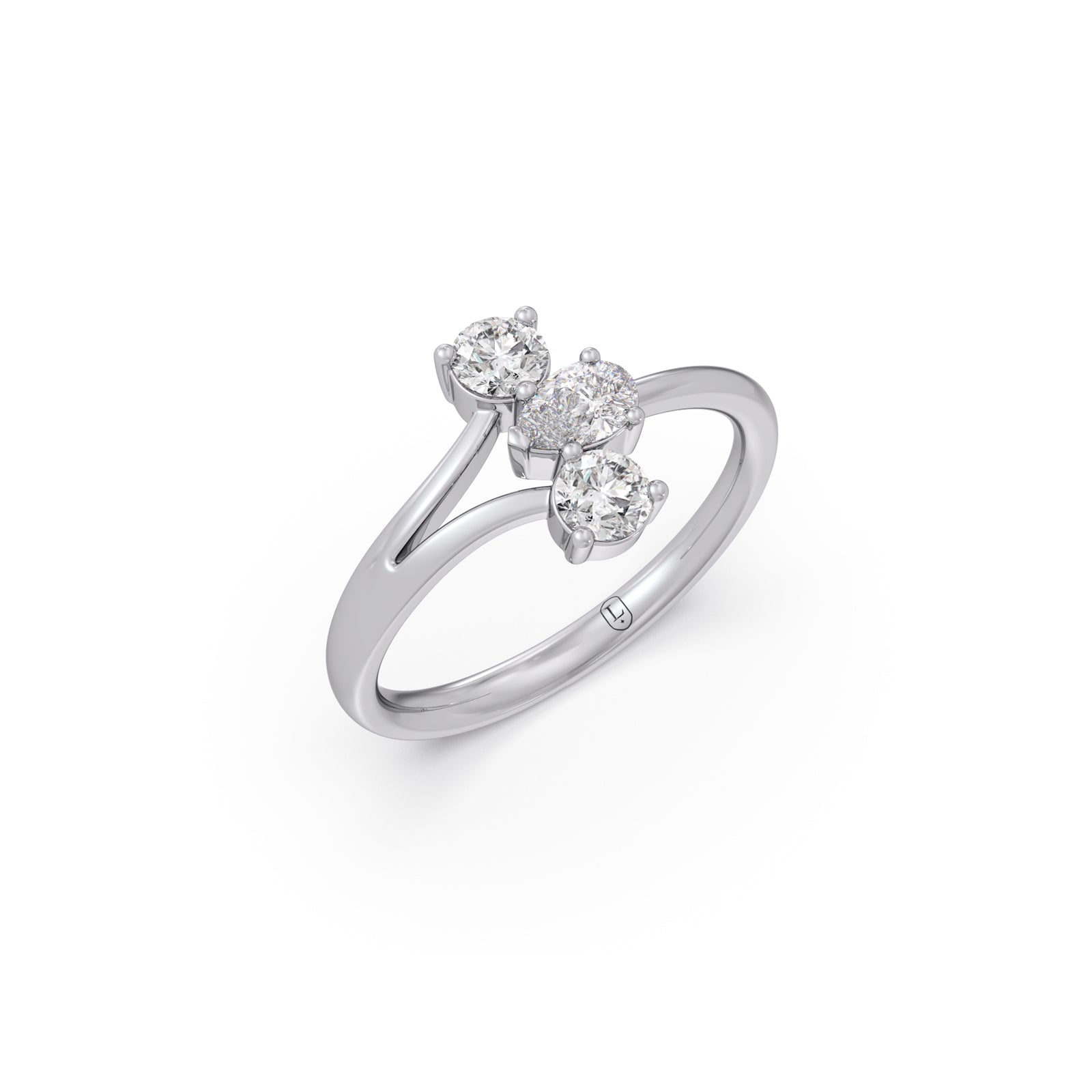 The Trio Point Ring is showcasing three dazzling diamonds in a graceful pattern, this ring features a luminous pear-shaped diamond at the center, flanked by two sparkling round diamonds on each side. The elegant trio design symbolizes harmony, elegance, and eternal love, making it a timeless expression of refined beauty.