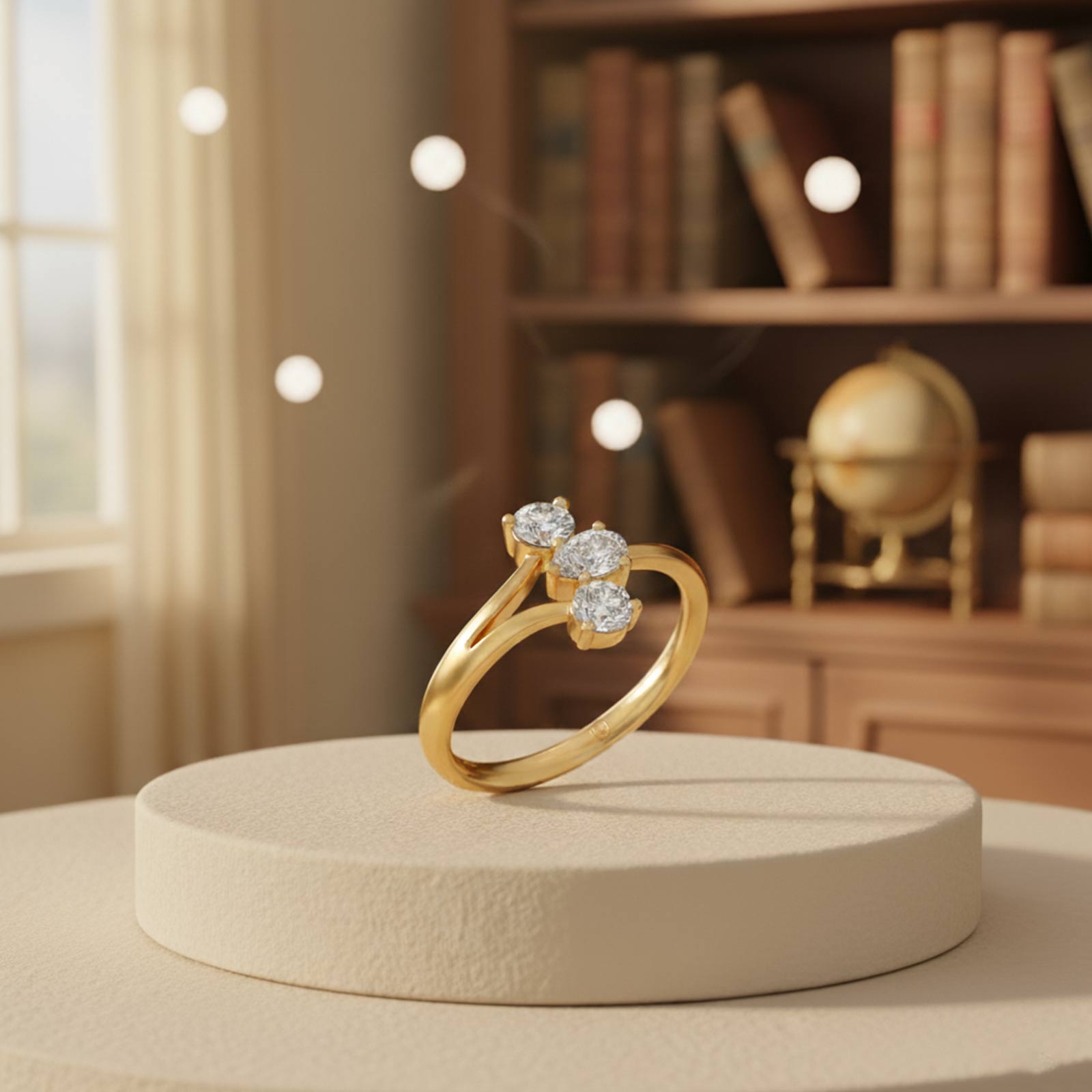 The Trio Point Ring is showcasing three dazzling diamonds in a graceful pattern, this ring features a luminous pear-shaped diamond at the center, flanked by two sparkling round diamonds on each side. The elegant trio design symbolizes harmony, elegance, and eternal love, making it a timeless expression of refined beauty.