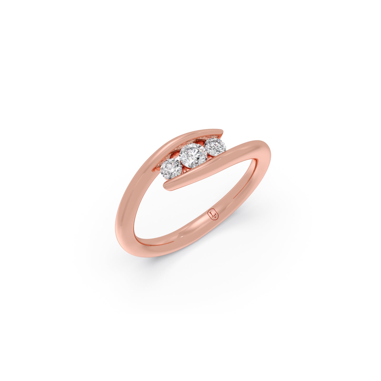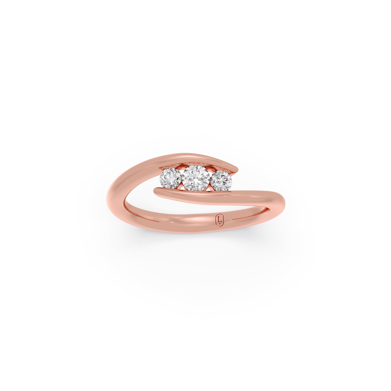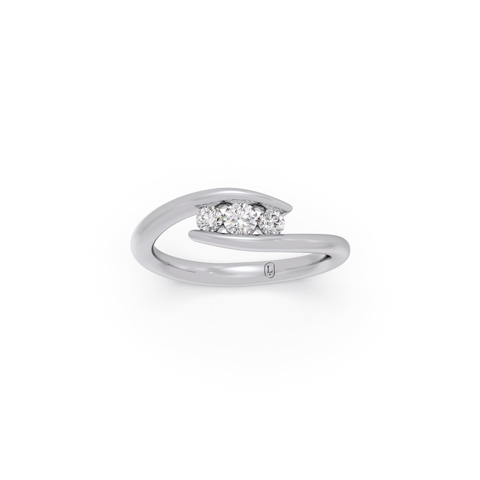 Celebrate your past, present, and future with this striking trio. Three brilliant diamonds are elegantly set within a smooth, swirling gold channel, showcasing modern luxury and endless motion. This is a timeless piece with a sophisticated, contemporary edge.