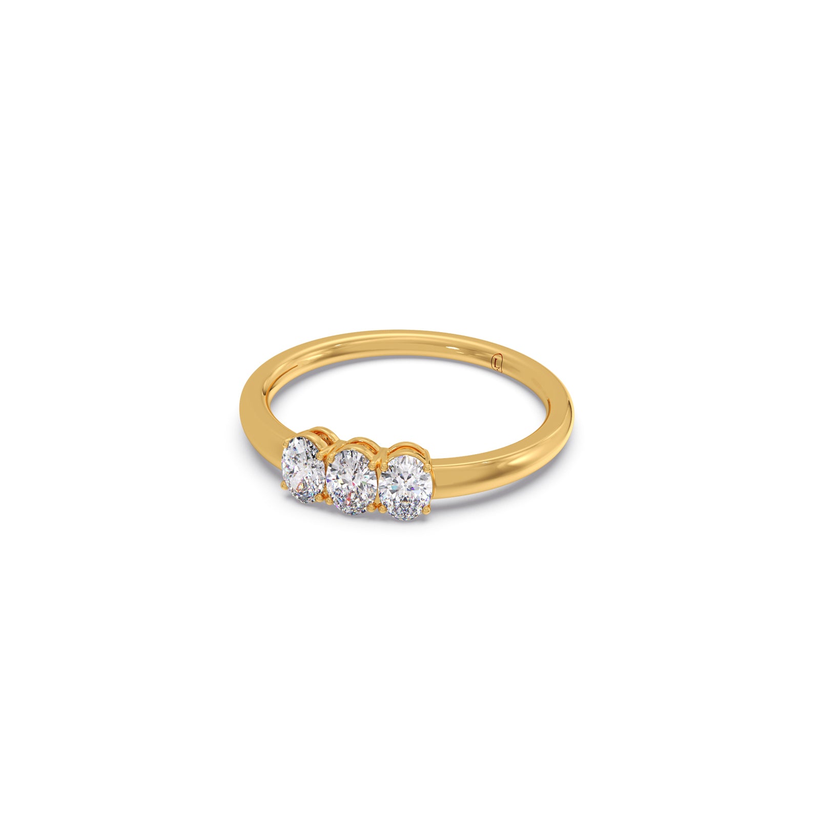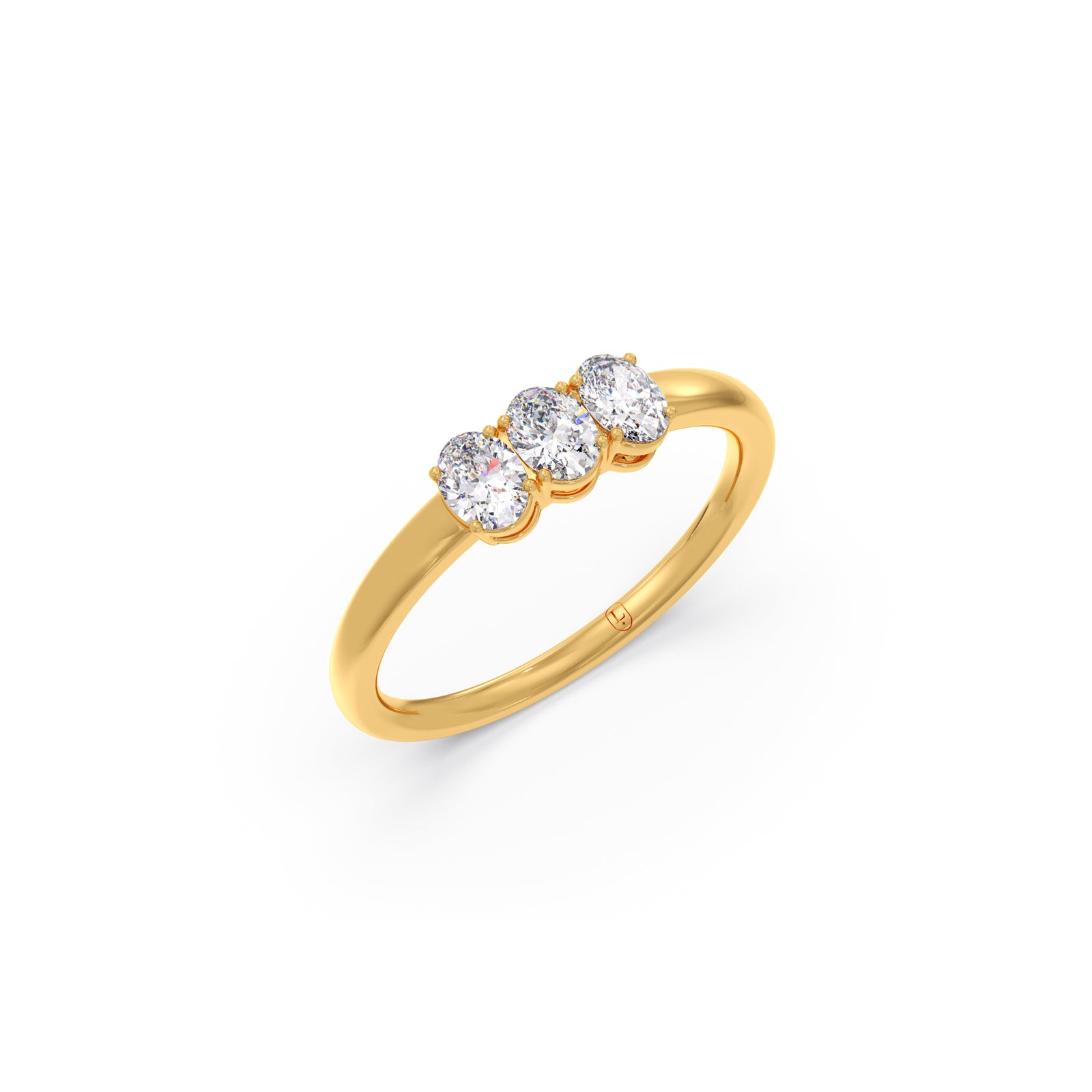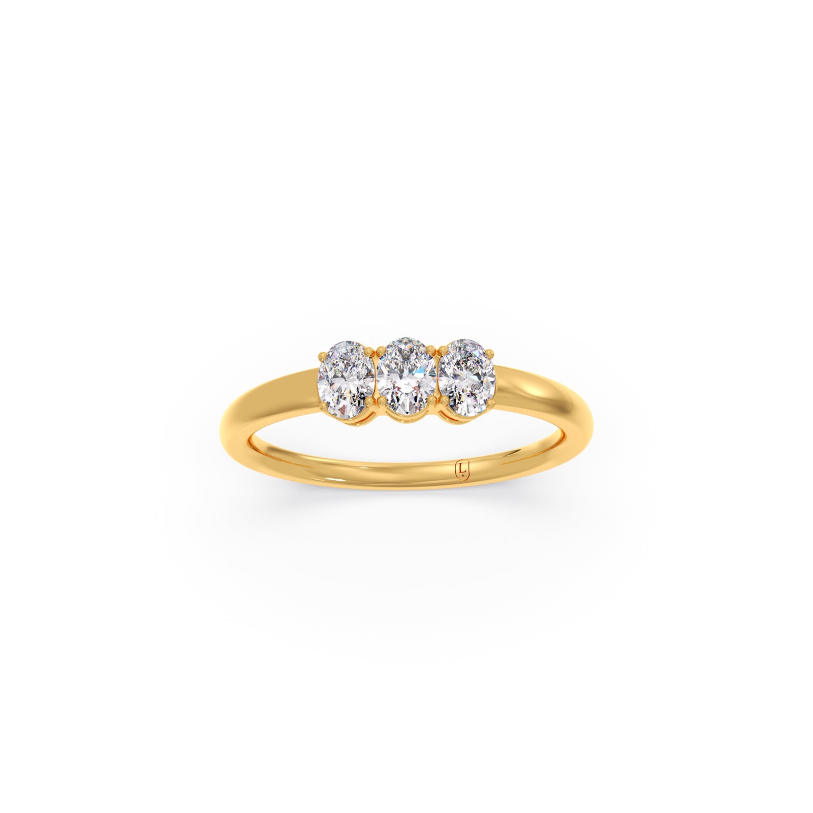Celebrating your past, present, and future, this exquisite three-stone ring features a trio of brilliant oval-cut diamonds. The elegant yellow gold band provides a warm, classic foundation for the dazzling stones. This piece is a meaningful and beautiful symbol of your enduring love story.
