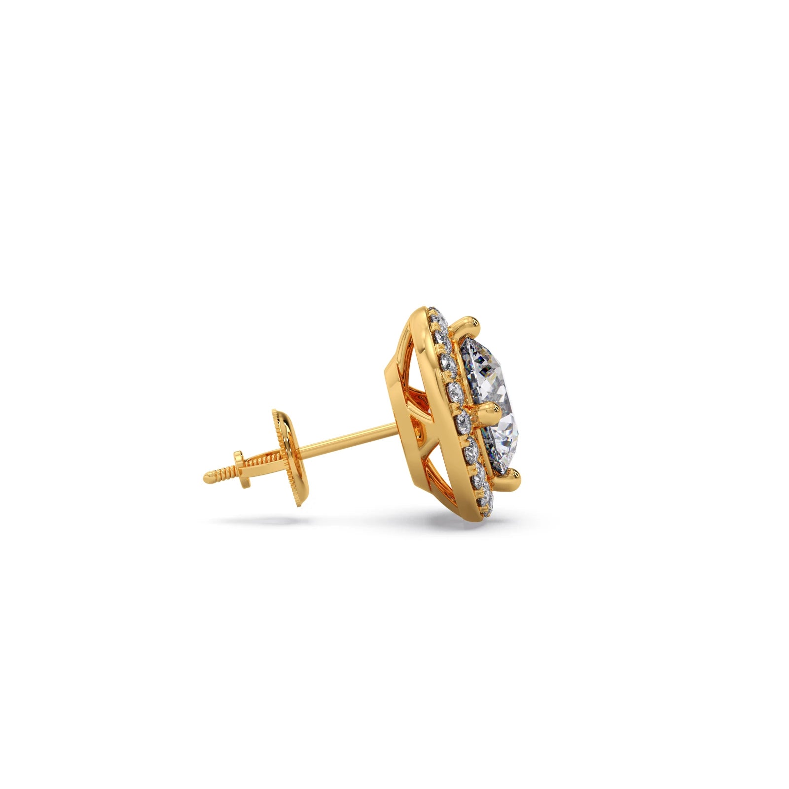 Discover enduring beauty with our Timeless Halo Round Diamond Earrings. Each brilliant round diamond is encircled by a dazzling halo of smaller diamonds, enhancing its sparkle and creating a captivating glow. Perfect for adding sophisticated glamour to any outfit, these earrings are a cherished addition to any collection.