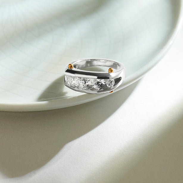 0.30 Carat Linear Diamond Men's Classic Two Tone Ring