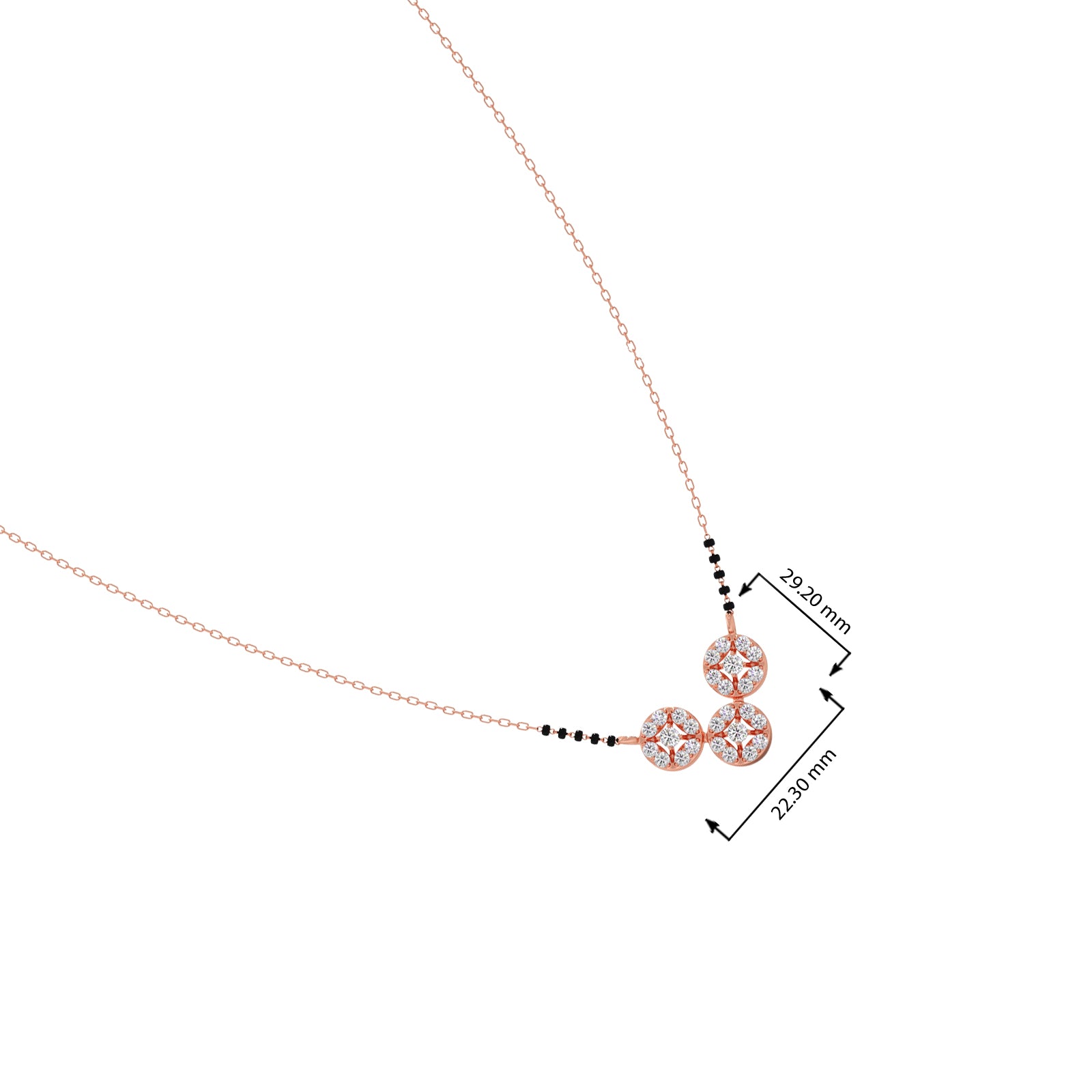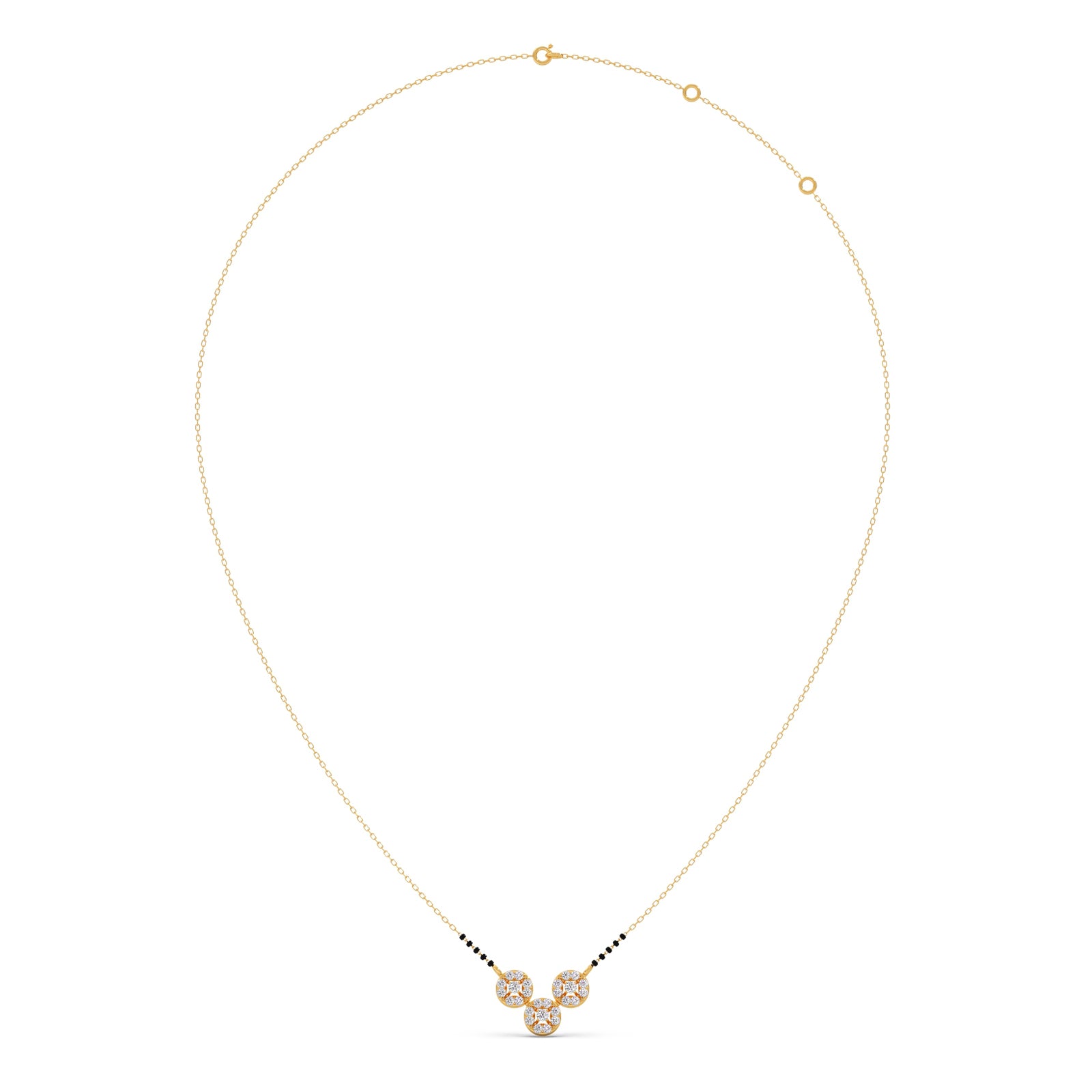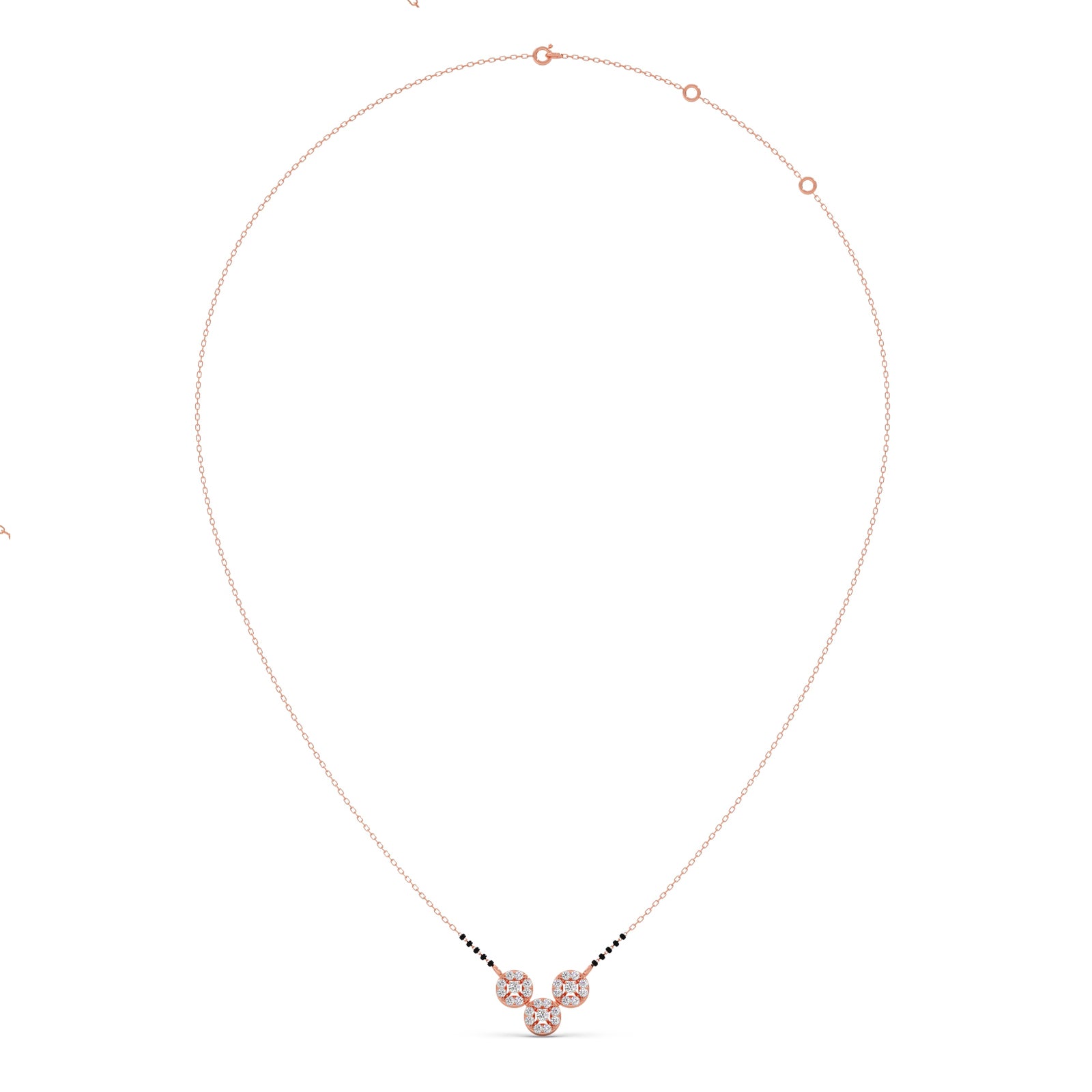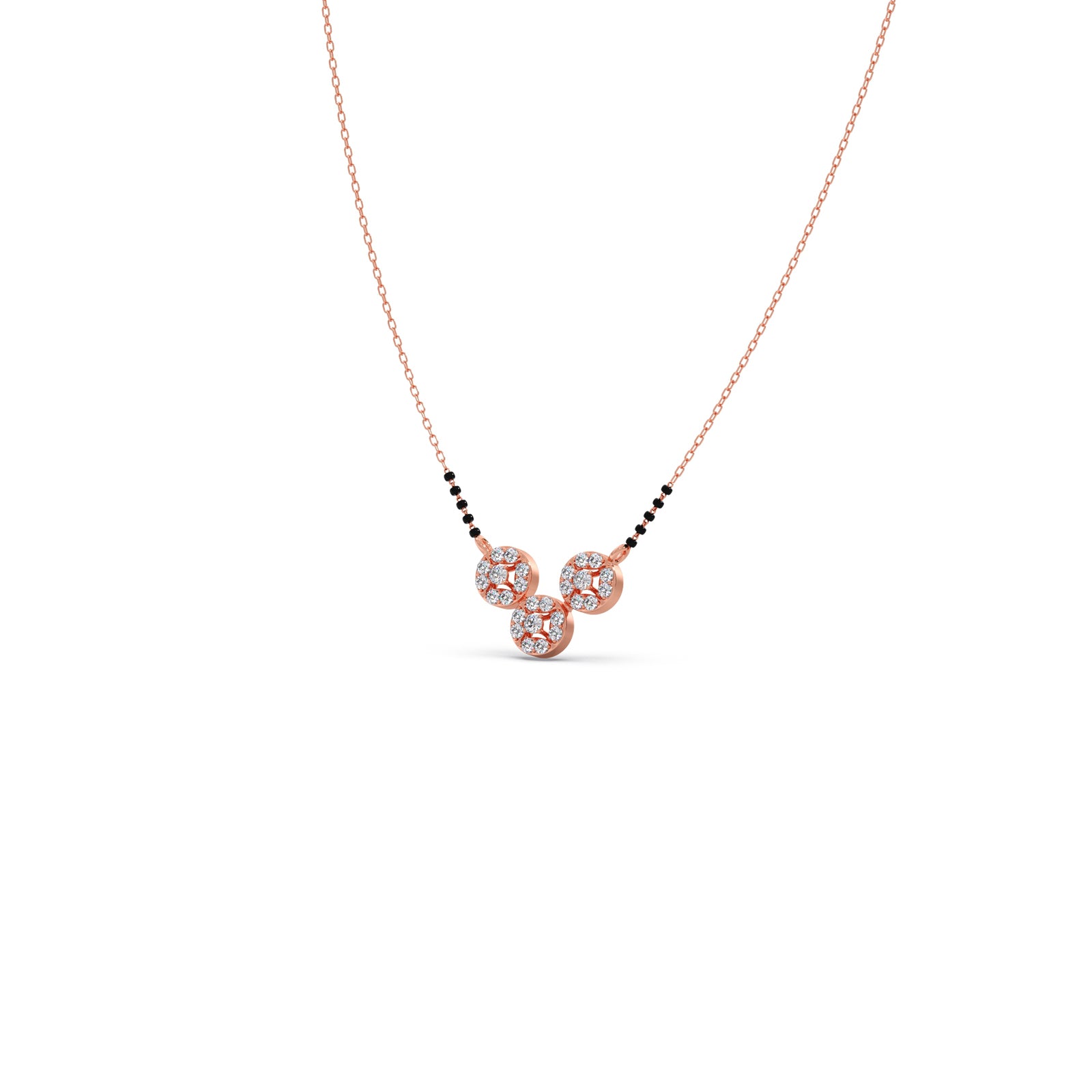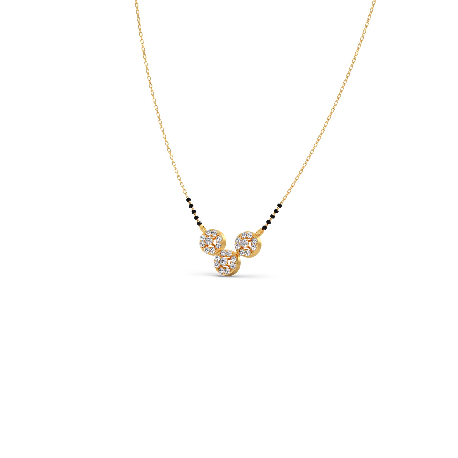 The TriAura Mangalsutra Necklace features Three elegant frames, each adorned with brilliant Round Diamonds, arranged in a stylish and meaningful design. Combining tradition with modern elegance, this necklace is perfect for symbolizing unity, love, and timeless beauty.