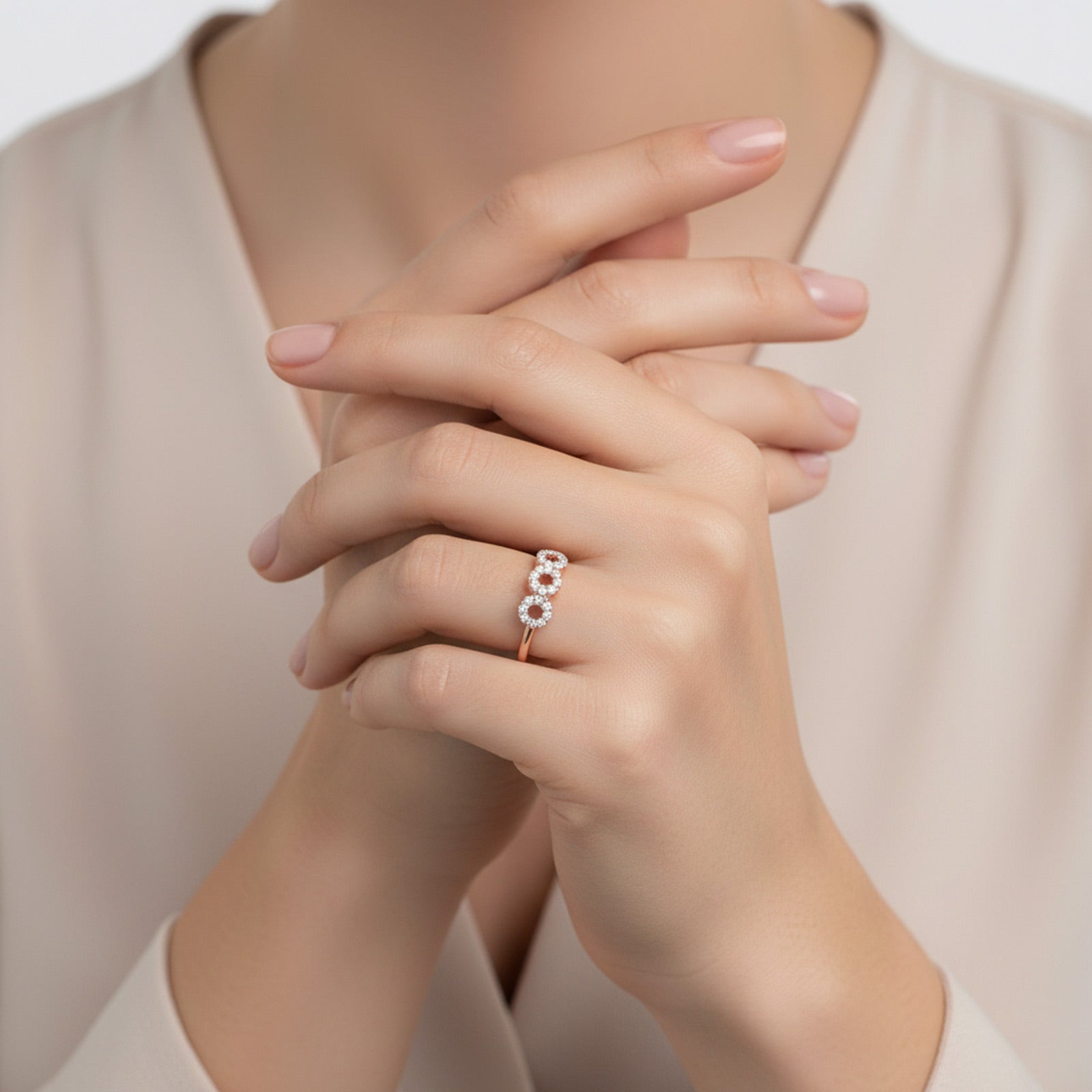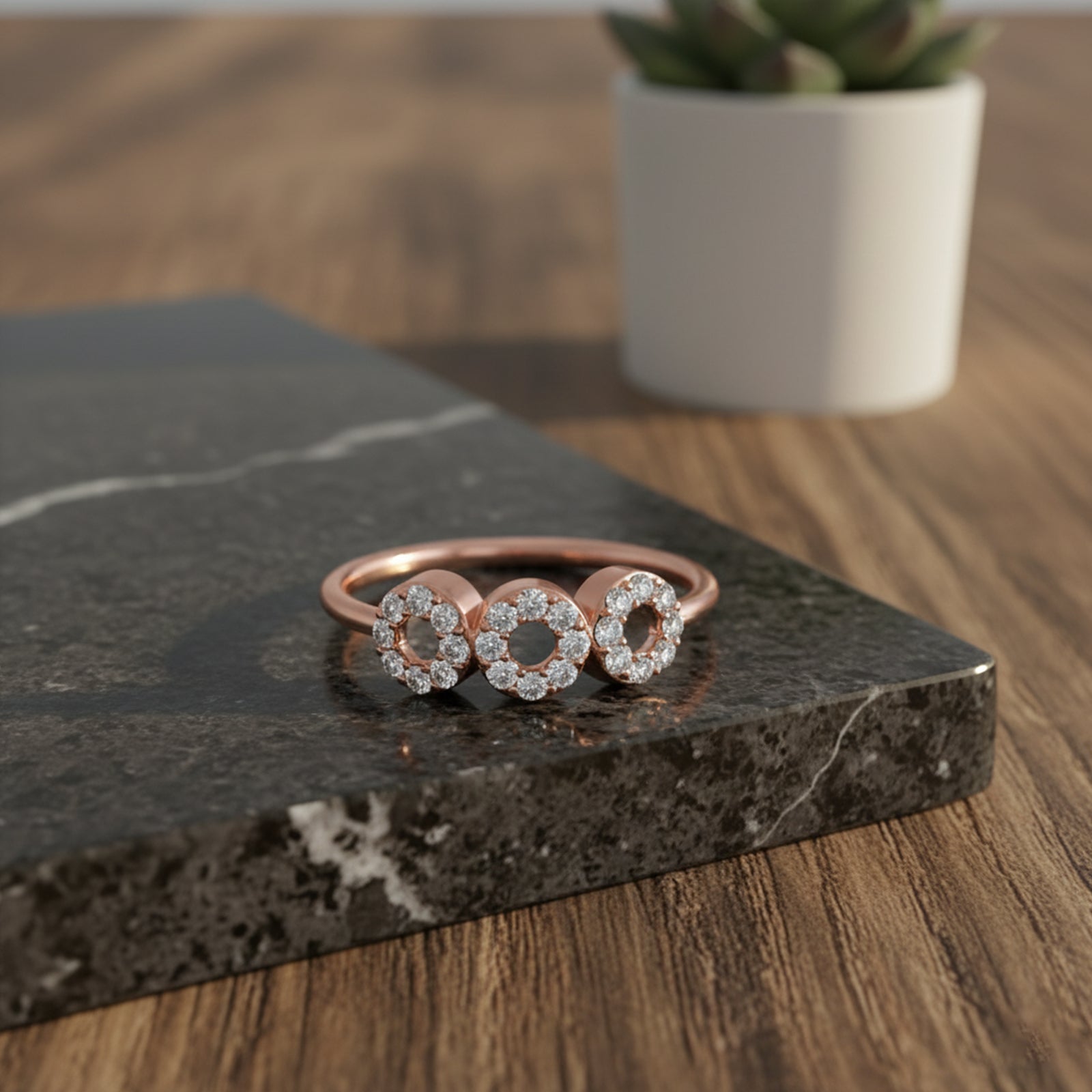 Celebrate your enduring bonds with the Trinity Circle Diamond Ring. The trio of interlocking circles, glittering with round set lab ground diamonds, represents loyalty, fidelity, and friendship. It’s a sophisticated and meaningful ring for any special occasion.