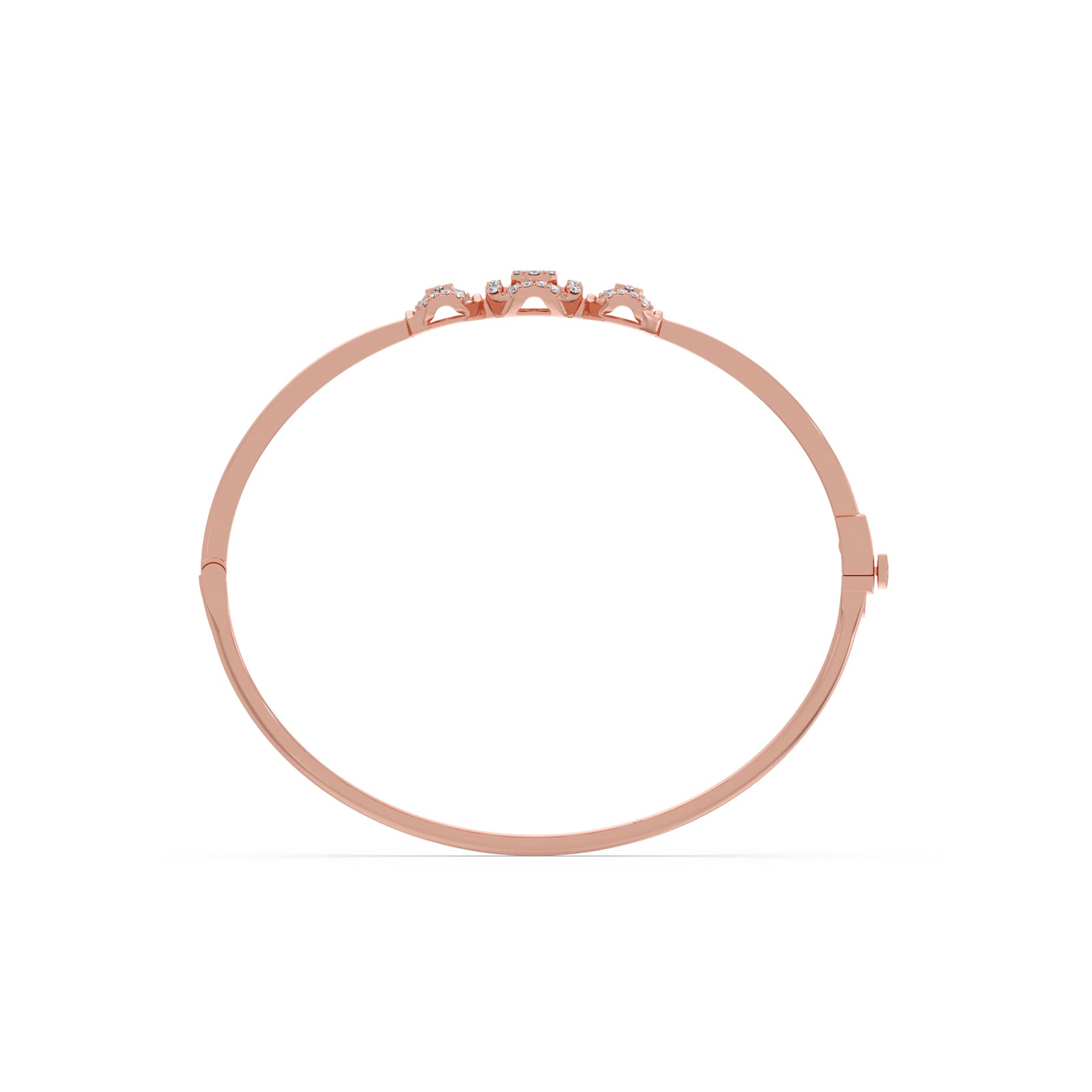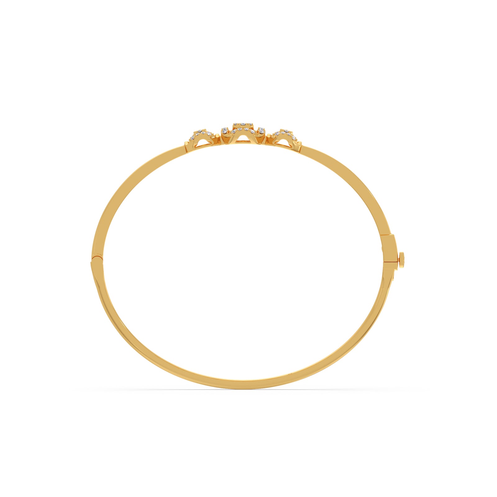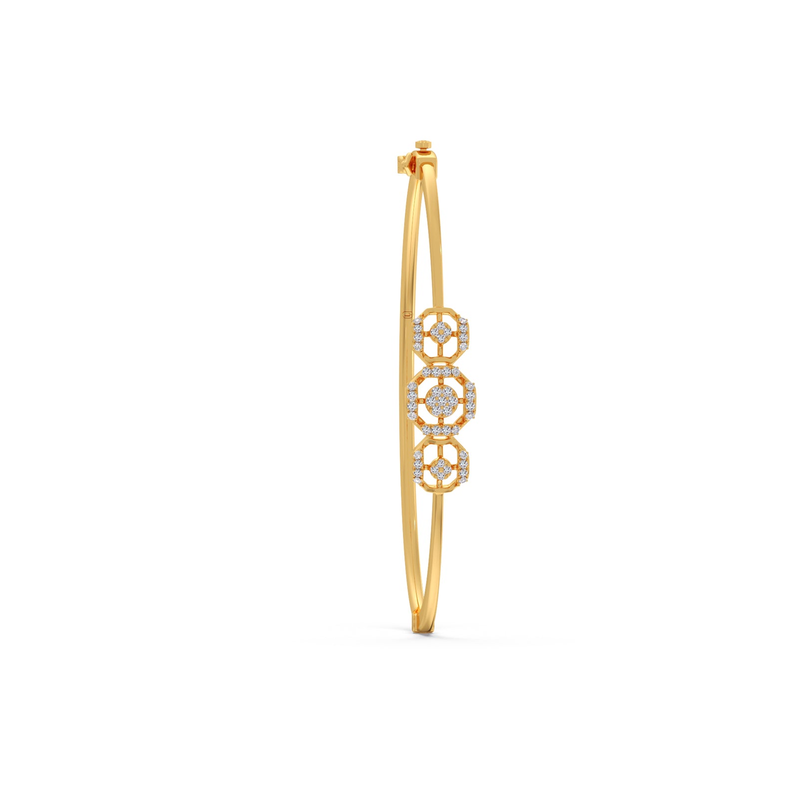A refined cuff bracelet featuring three interlinked halo frames, each adorned with brilliant Round Diamonds. The connected circular design symbolizes unity and elegance, creating a radiant, timeless piece perfect for both everyday wear and special occasions.