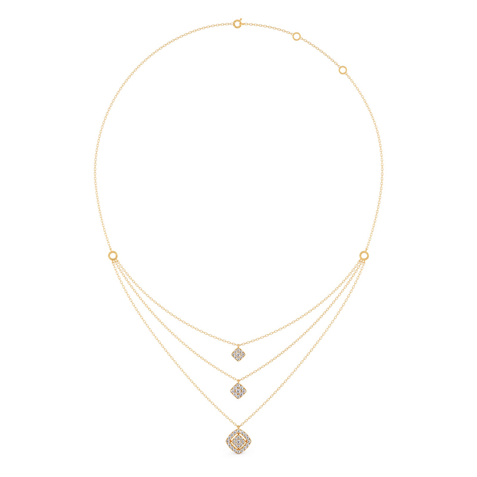 The Trinity Halo Diamond Necklace showcases three dazzling diamonds, each surrounded by a luminous halo of smaller stones. This elegant design symbolizes unity and balance, offering timeless sparkle and sophistication—perfect for adding a graceful touch to any ensemble.