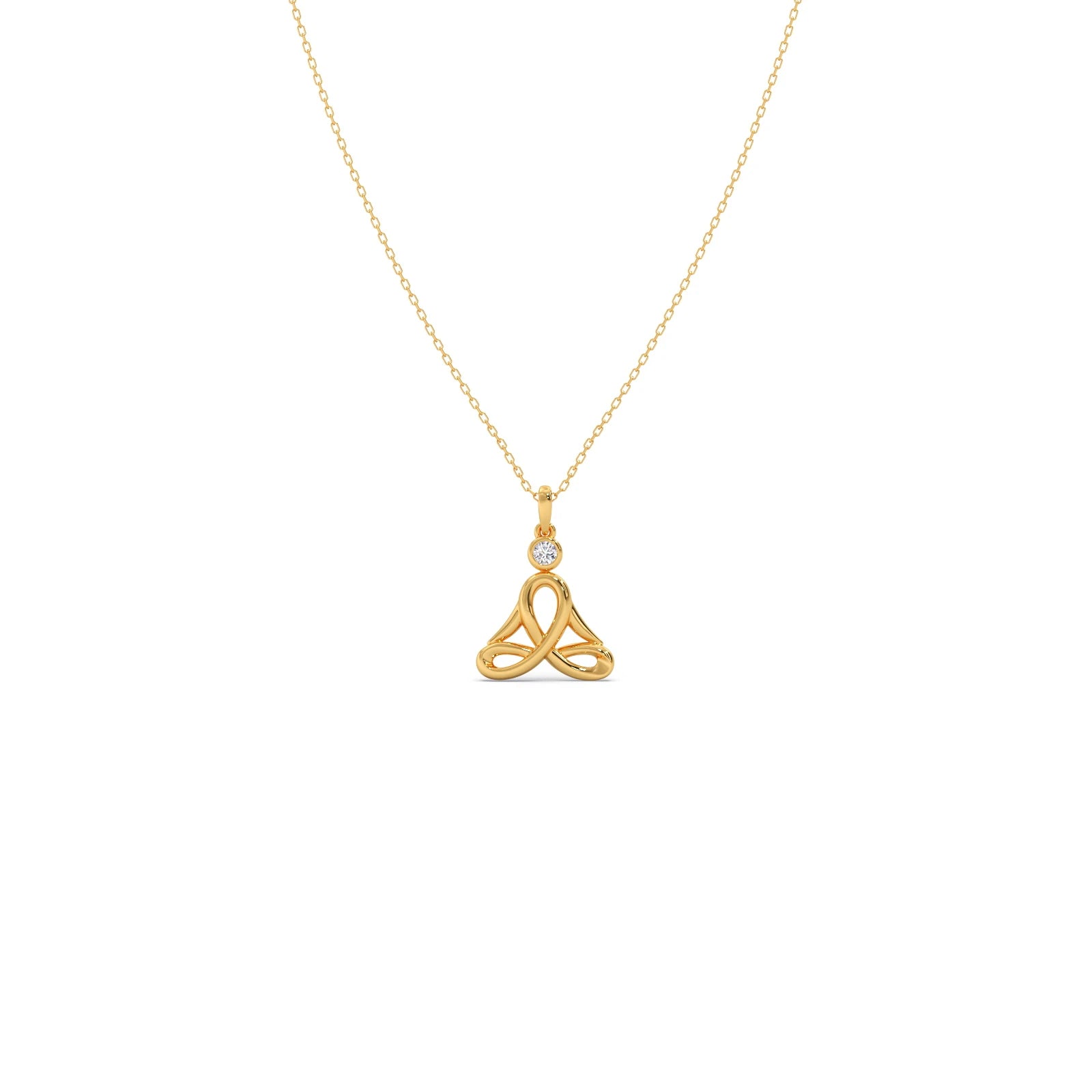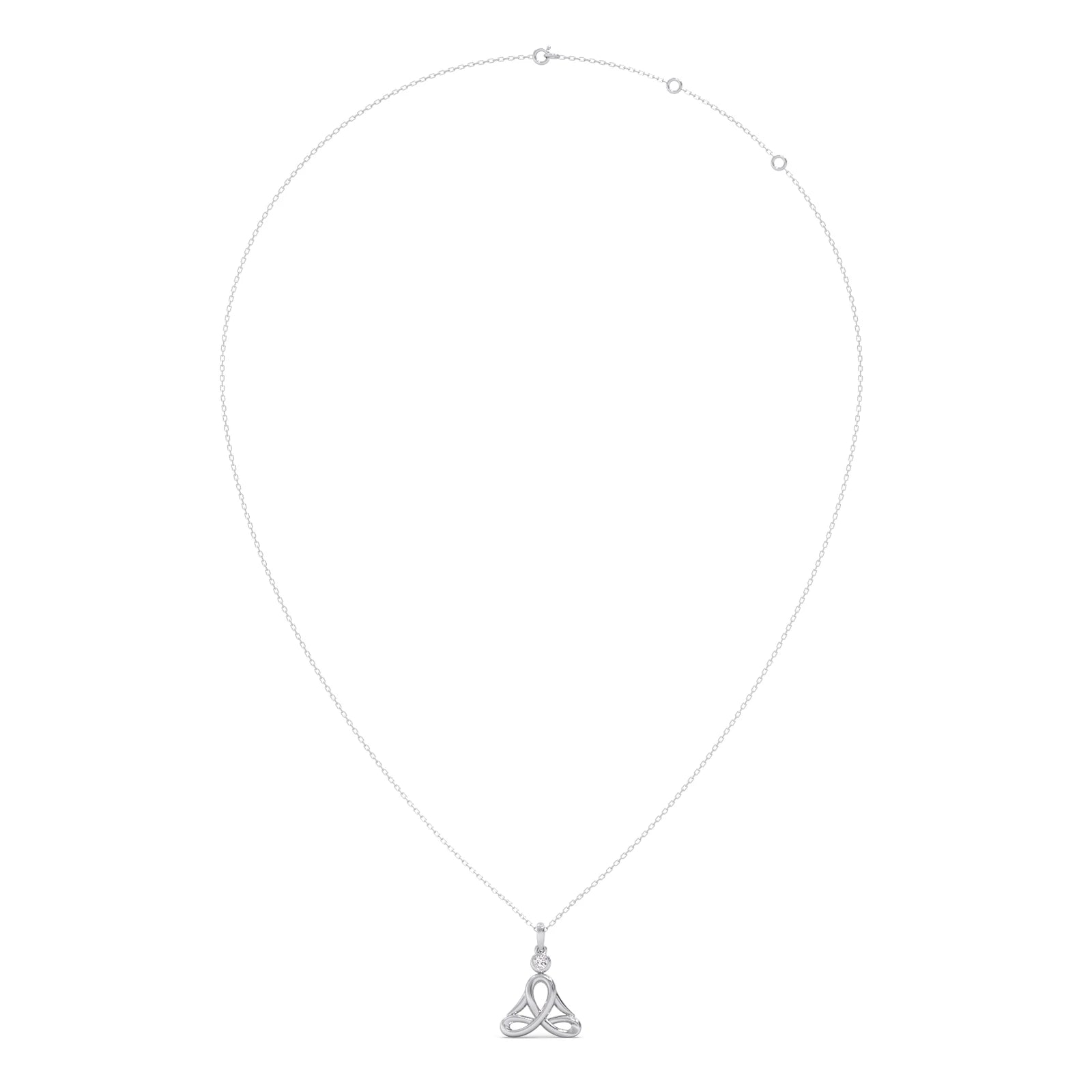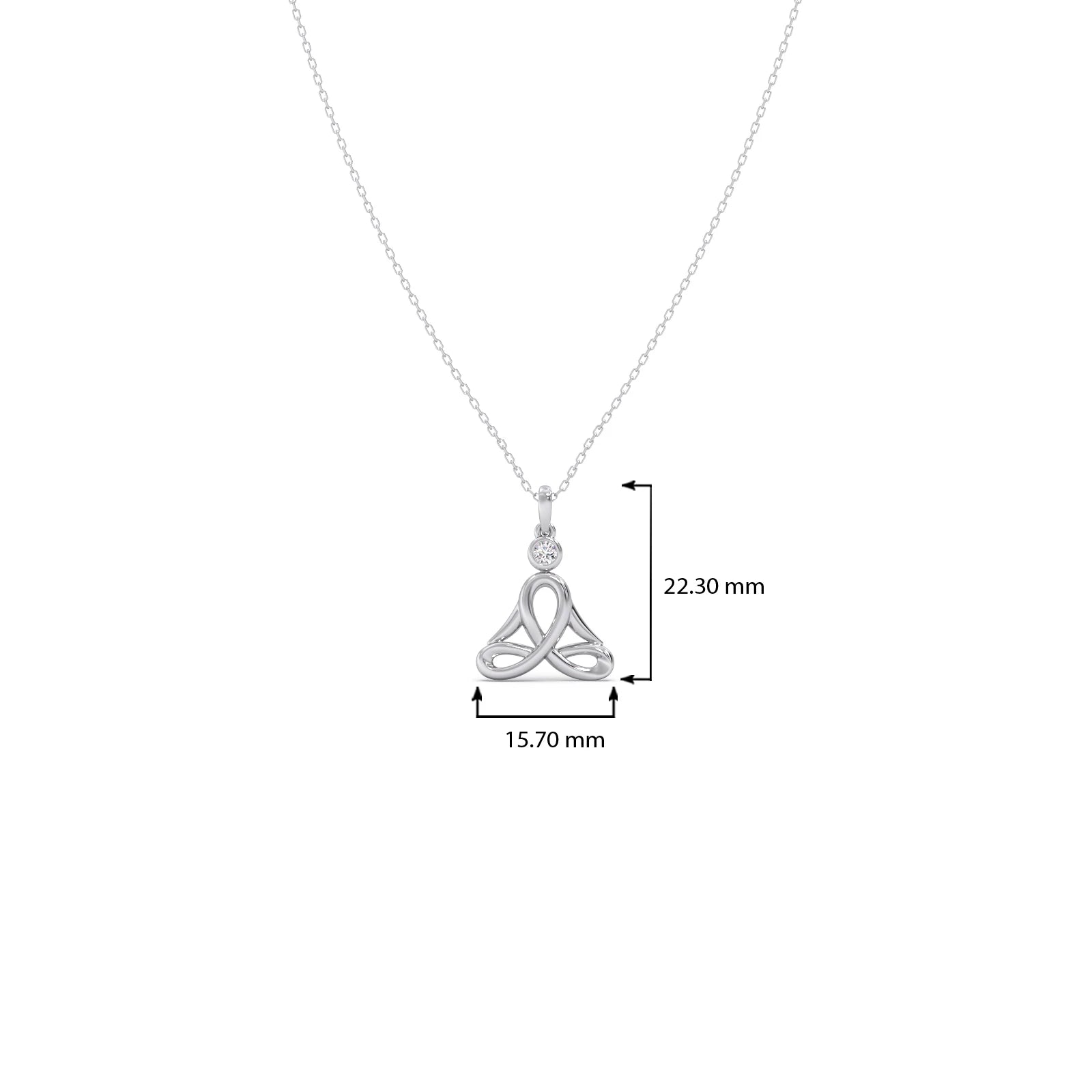 This unique pendant blends the ancient symbolism of the Trinity Knot with the serenity of yoga. A delicate knot, representing interconnectedness and eternity, is adorned with a sparkling round diamond. This meaningful piece serves as a reminder of balance, unity, and inner peace, making it a beautiful and inspiring everyday necklace.