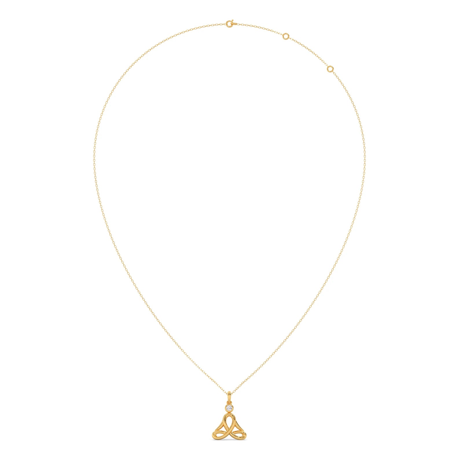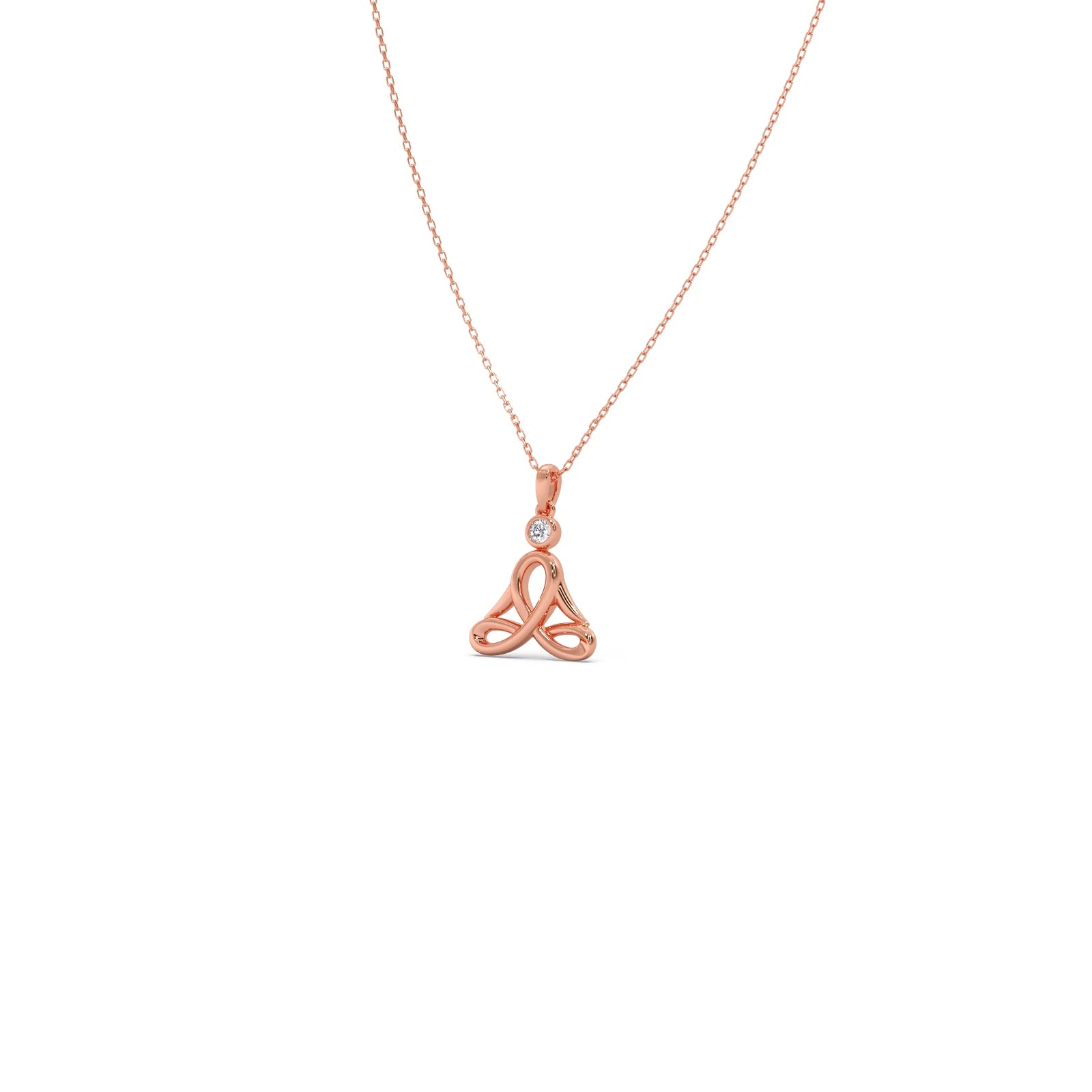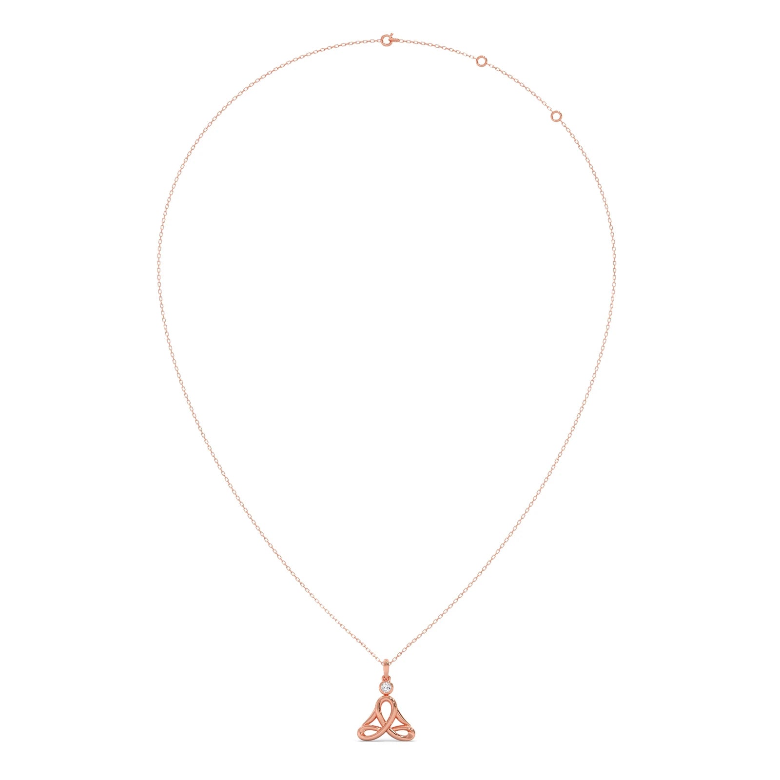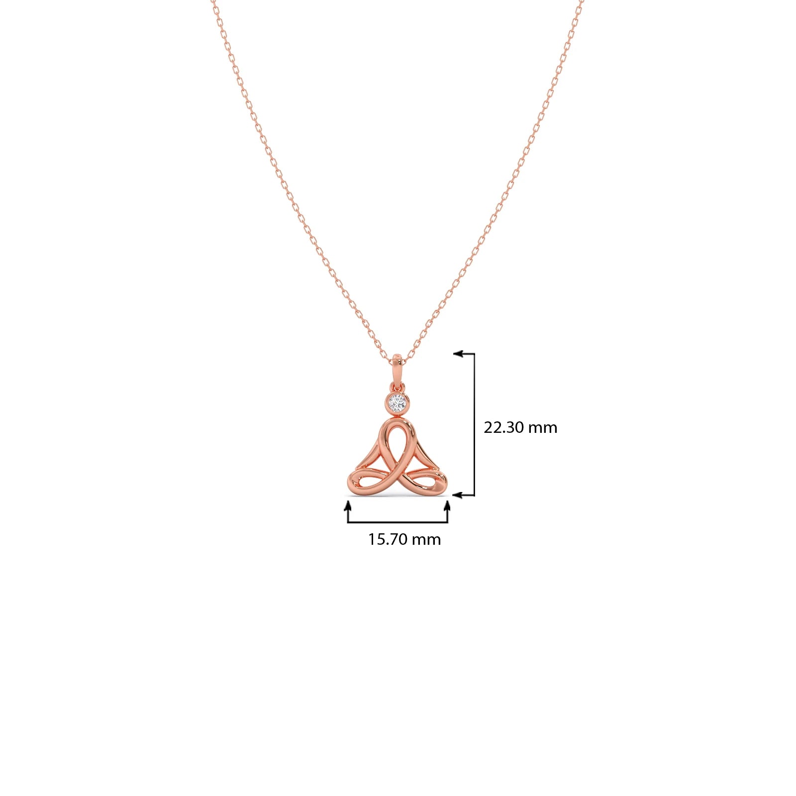 This unique pendant blends the ancient symbolism of the Trinity Knot with the serenity of yoga. A delicate knot, representing interconnectedness and eternity, is adorned with a sparkling round diamond. This meaningful piece serves as a reminder of balance, unity, and inner peace, making it a beautiful and inspiring everyday necklace.