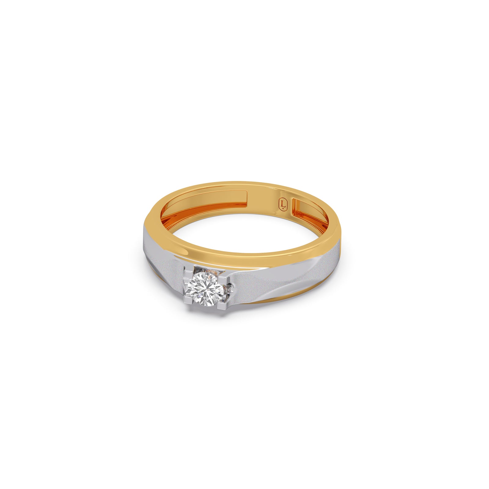 Round Diamond Two tone Men's Solitaire textured Ring