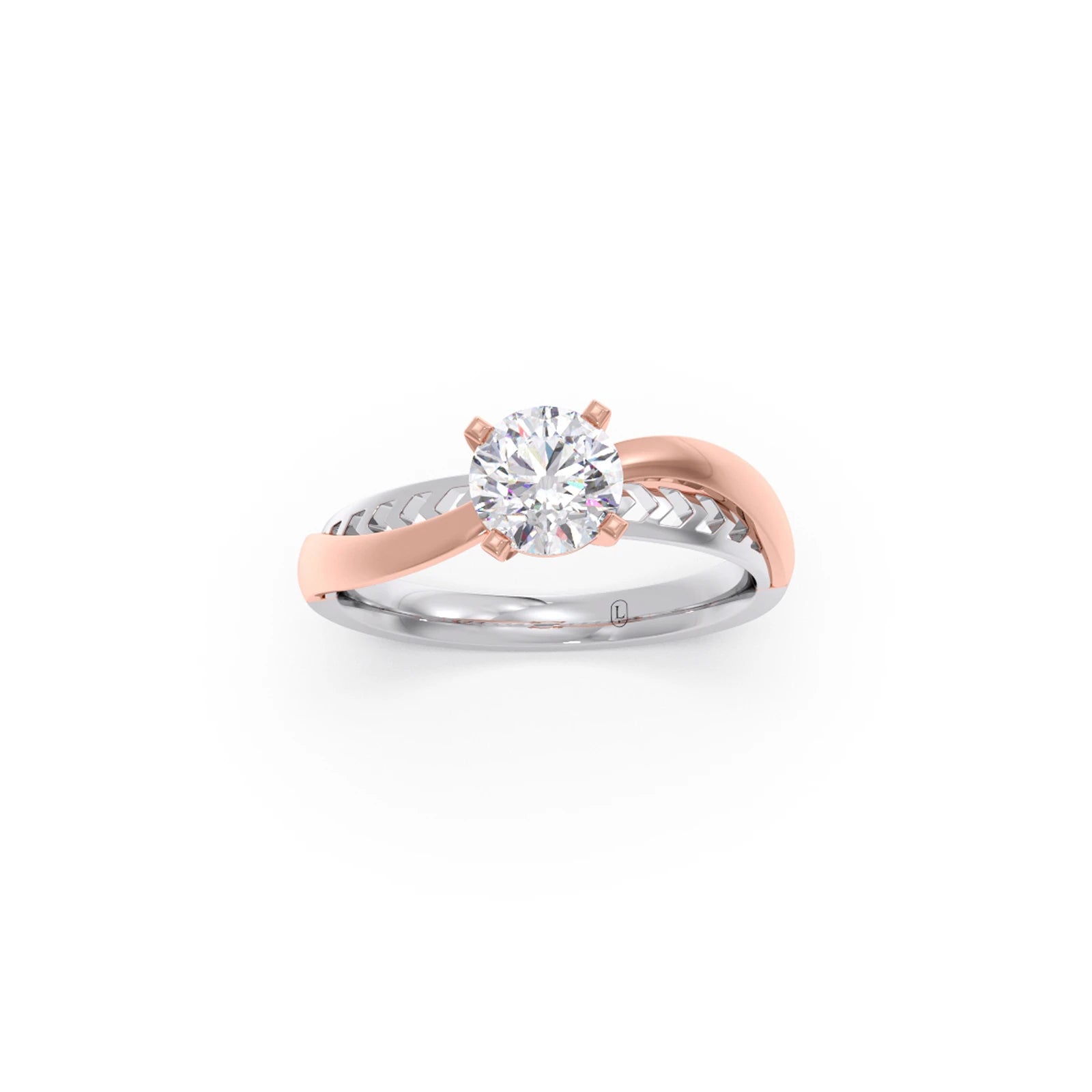 Twist Shank Solitaire Two Tone Engagement Ring