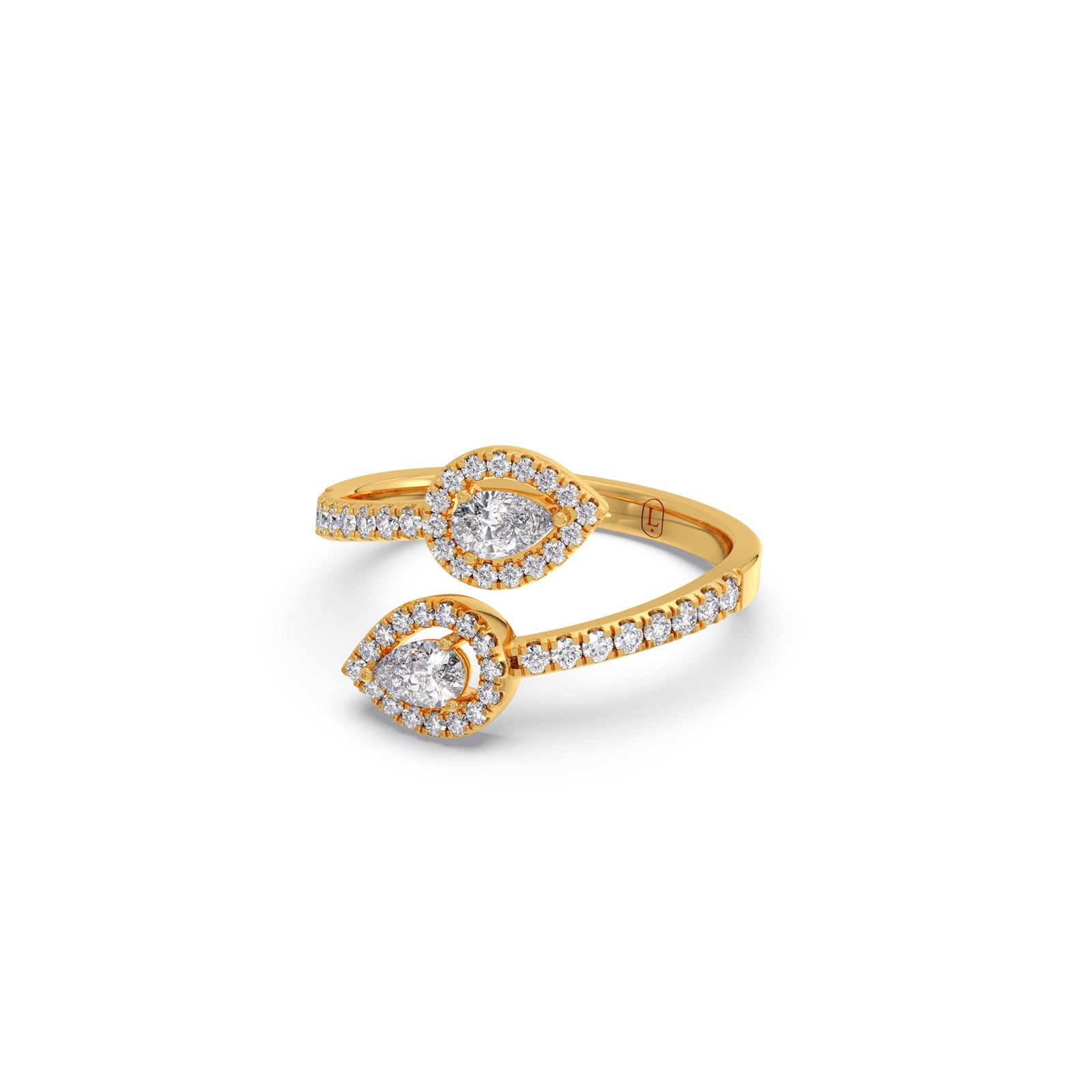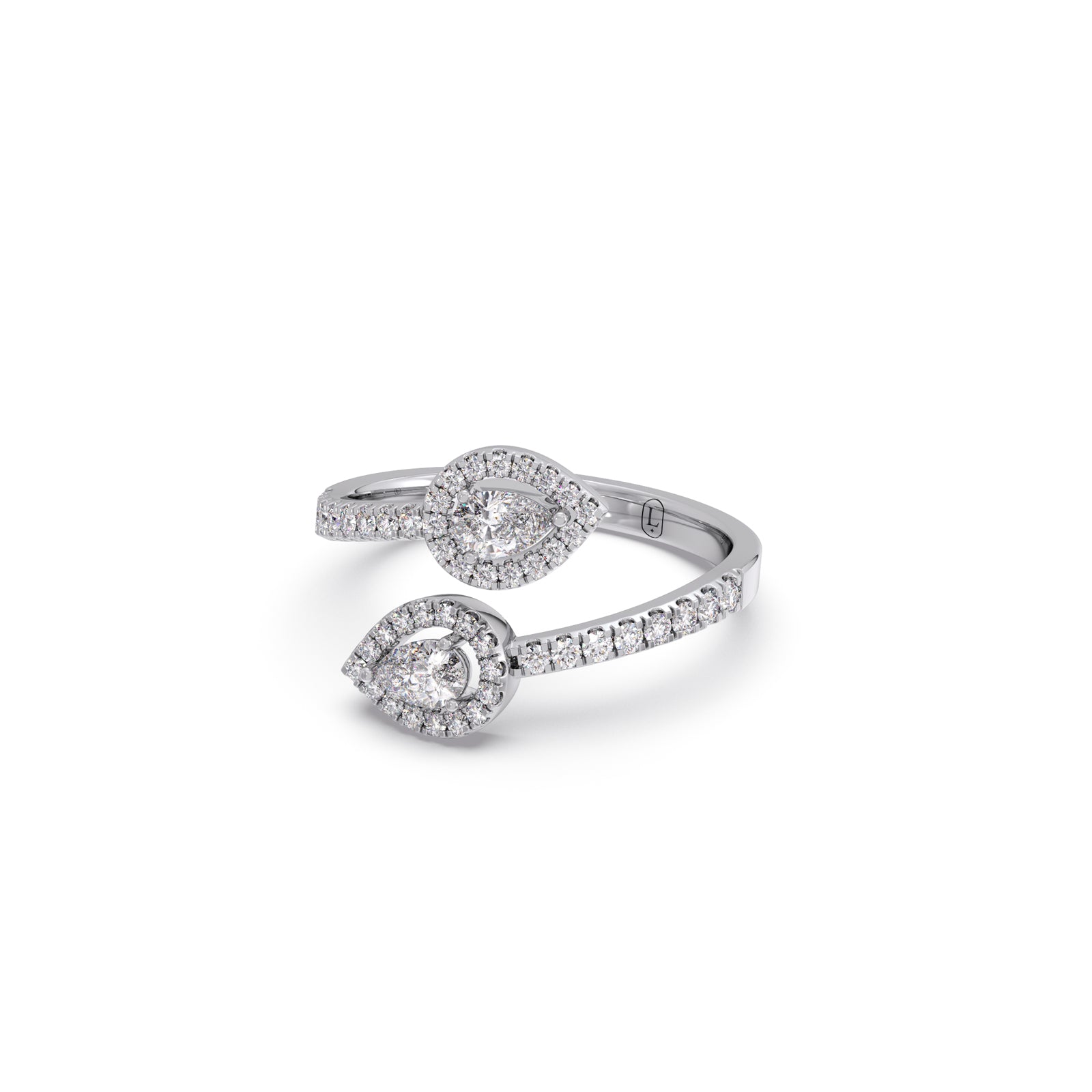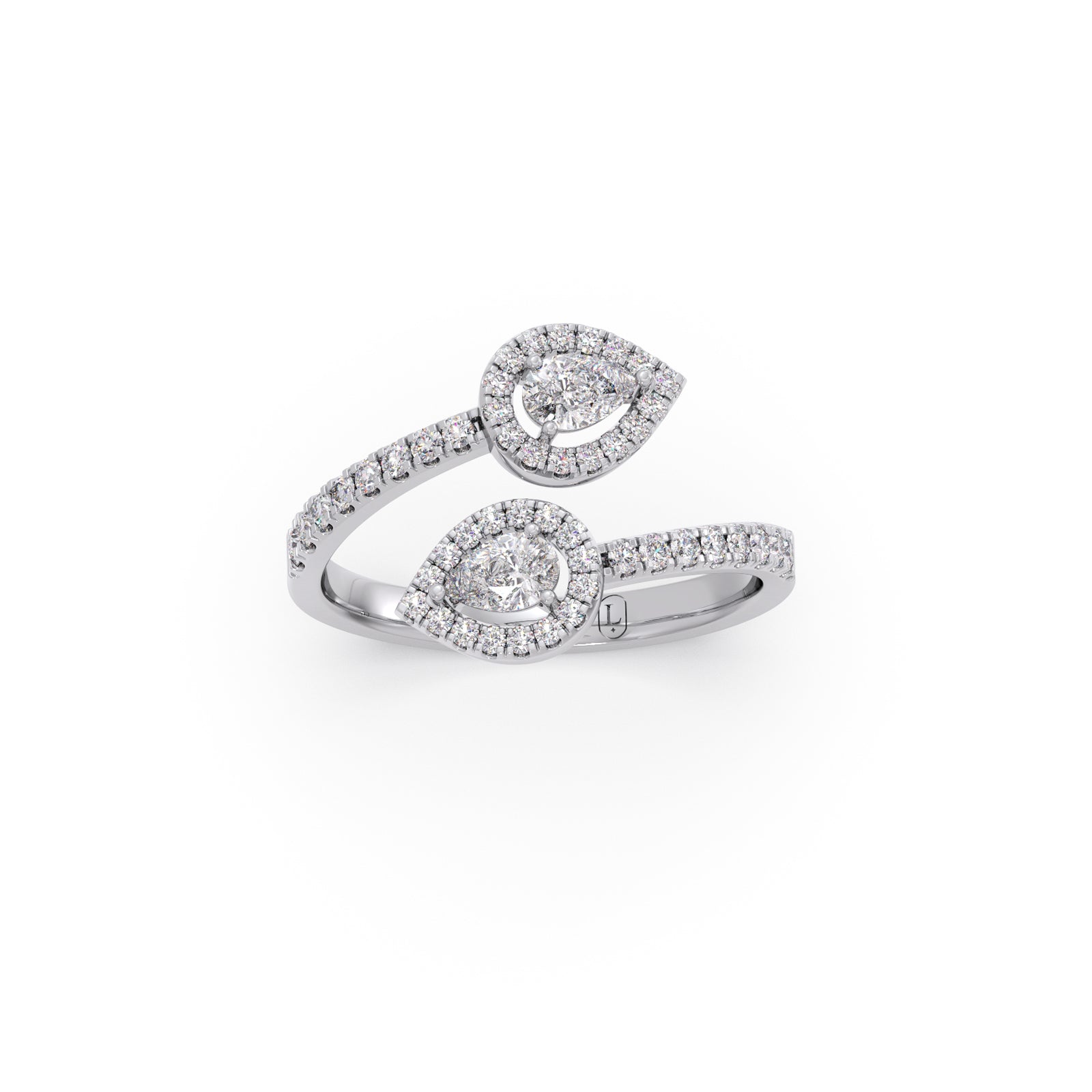 Adorn your hand with the captivating Twisted Lumina Ring. This unique design features a brilliant pear-shaped diamond gracefully intertwined with a band of shimmering round diamonds. The twisted setting enhances the sparkle, creating a truly luminous and modern statement piece that effortlessly combines elegance with contemporary flair.