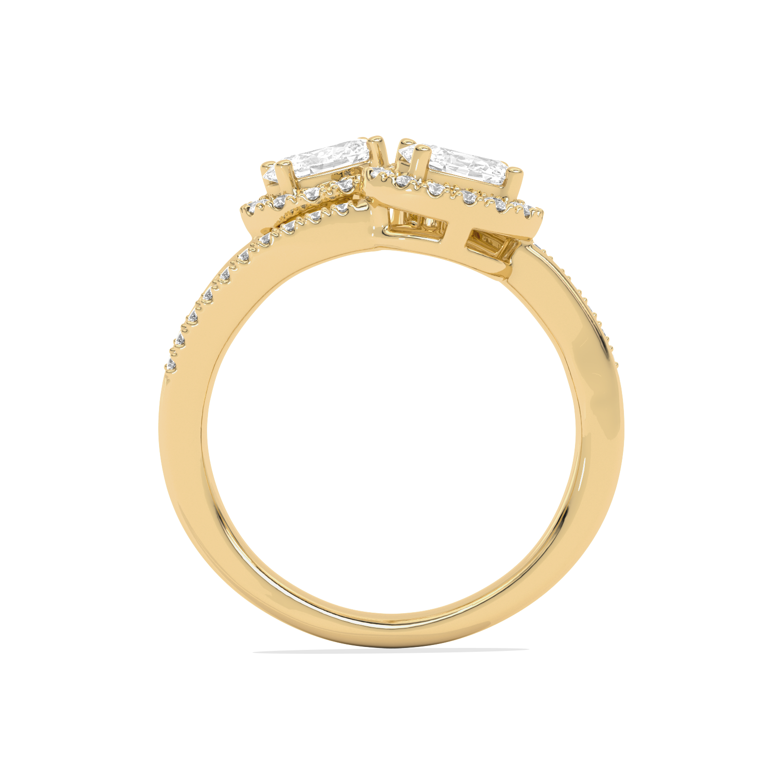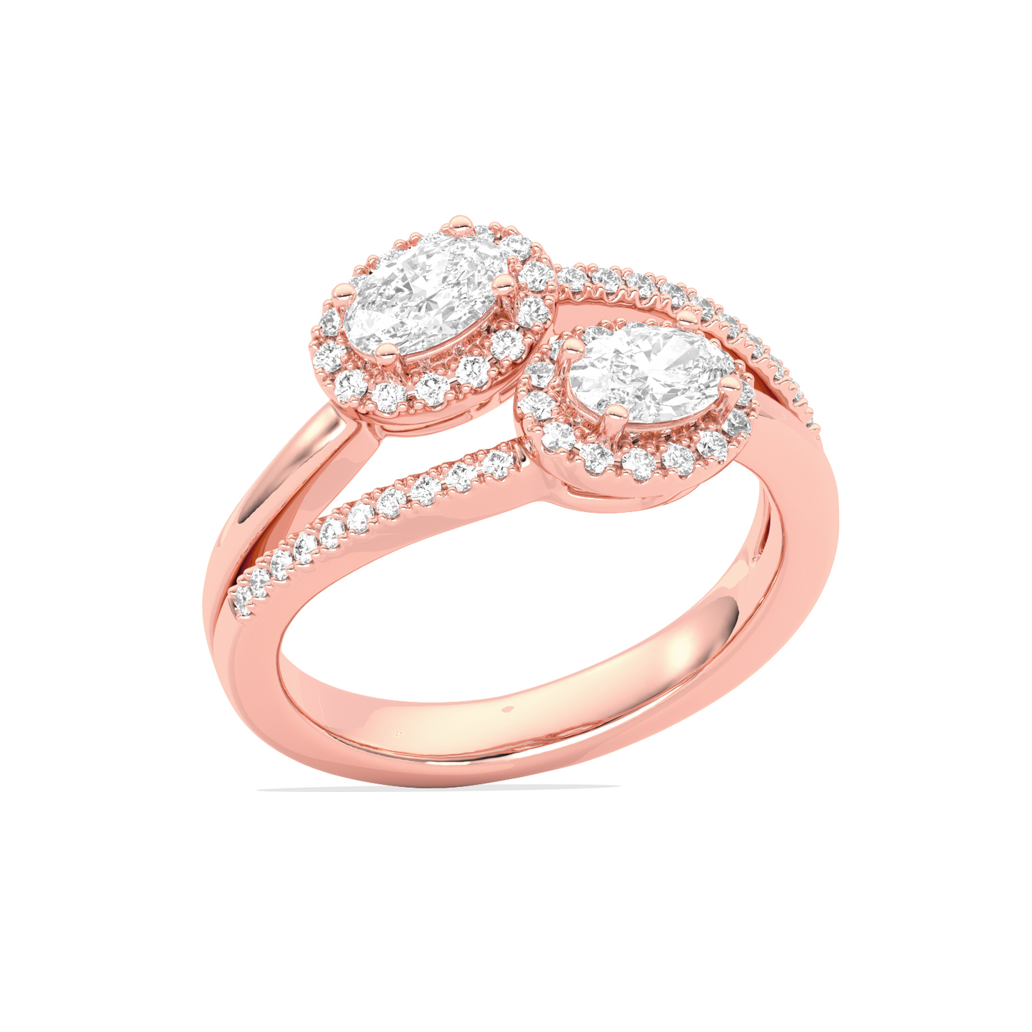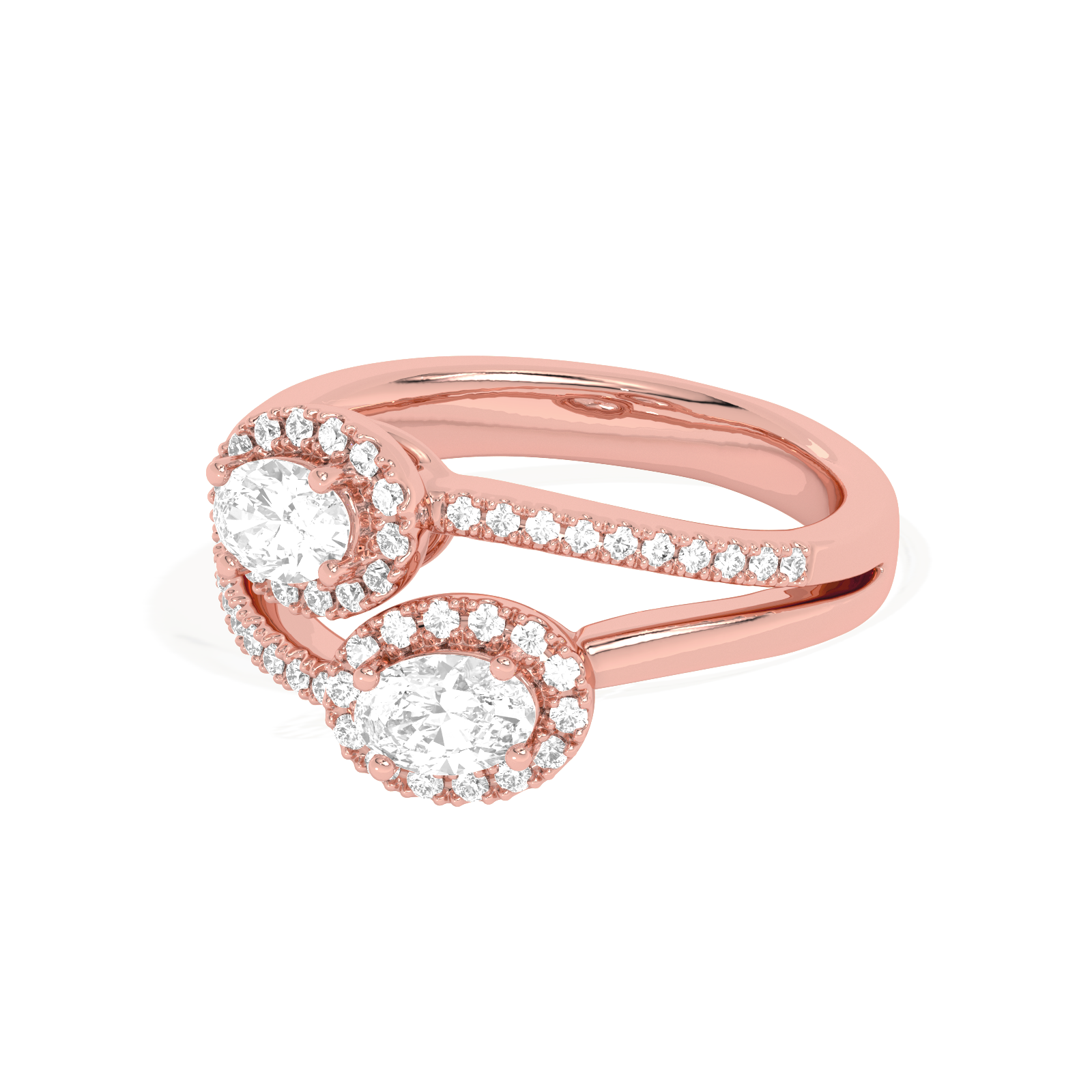 This stunning Two Oval Halo Engagement Ring is a symbol of love and partnership, beautifully crafted in radiant yellow gold. Featuring two dazzling oval-cut lab-grown diamonds, each encircled by a delicate halo of shimmering accent stones, this ring exudes elegance and brilliance. The split-shank band is adorned with pave diamonds, adding an extra layer of sparkle and sophistication.