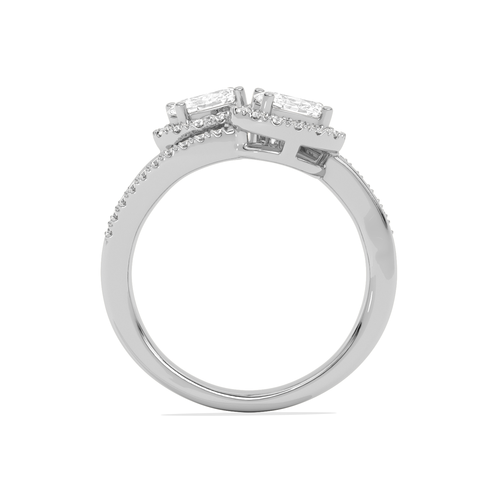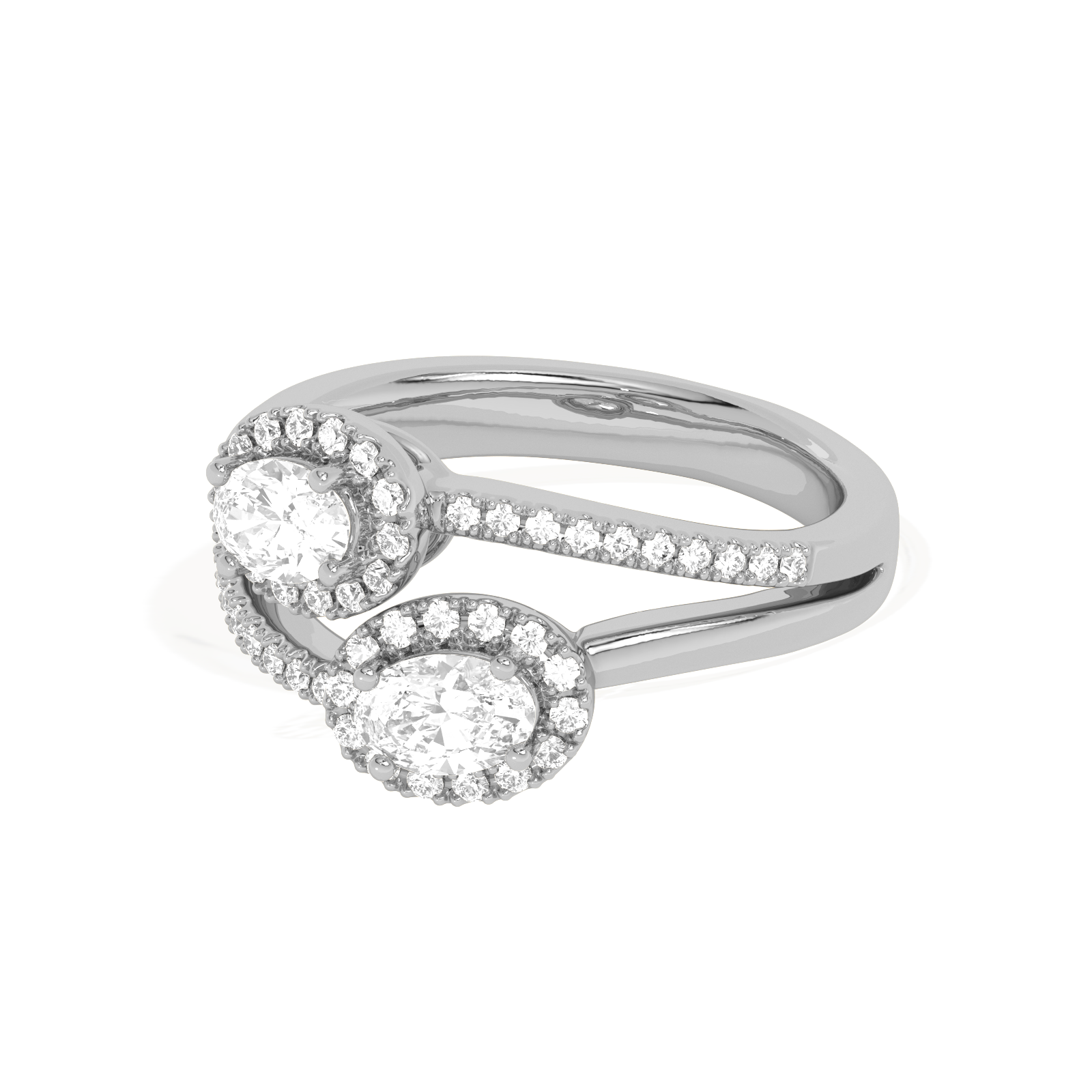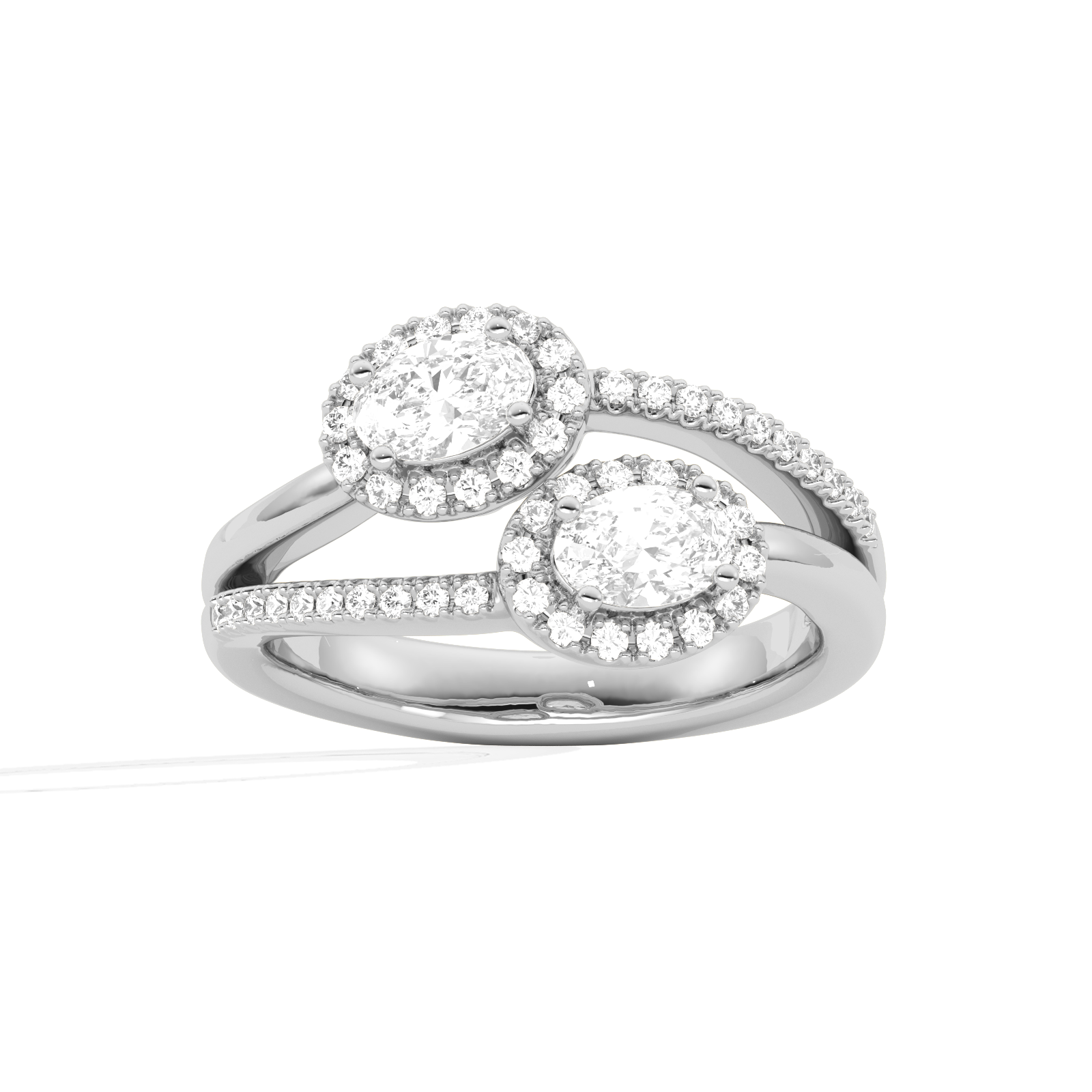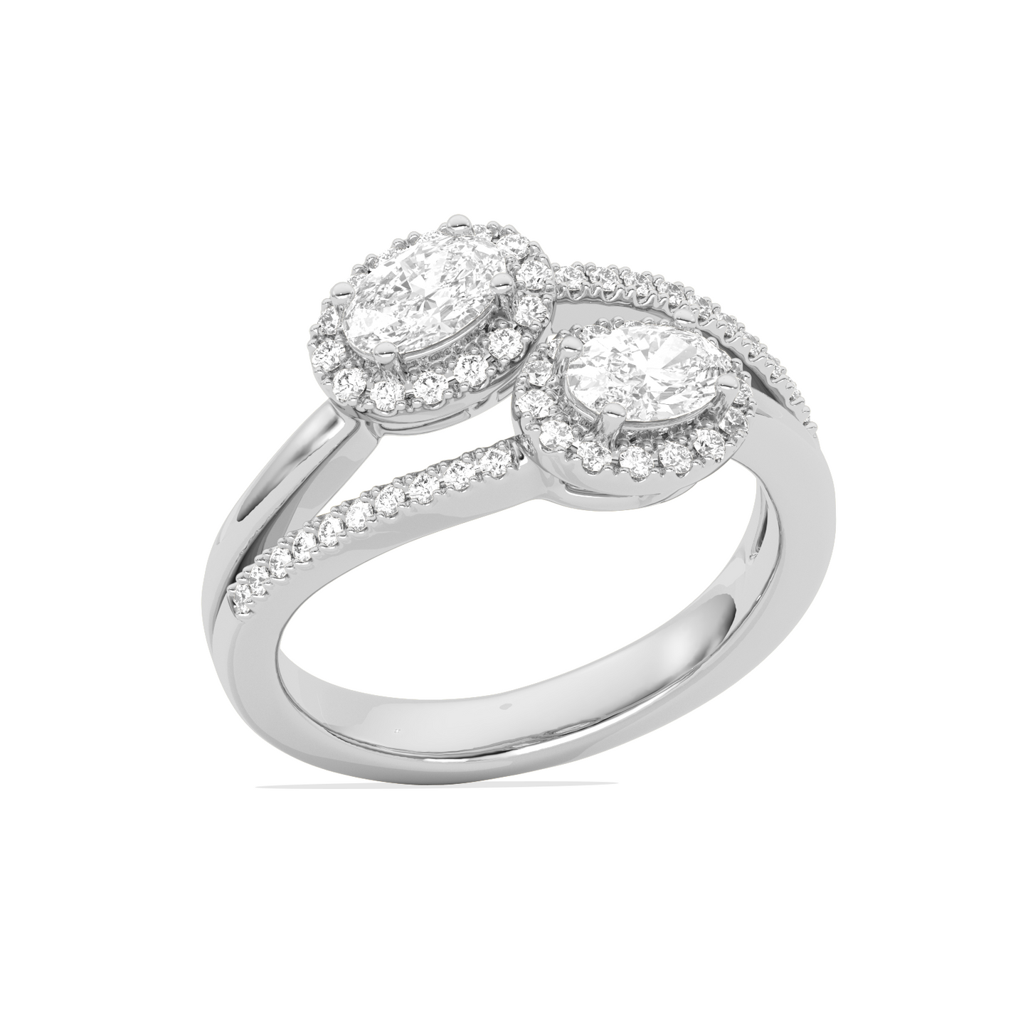 Two Oval Halo Engagement Diamond Ring