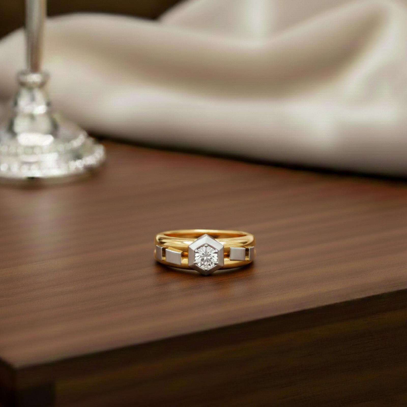 Dual Tone Luxurious Diamond Geometric Men's Band