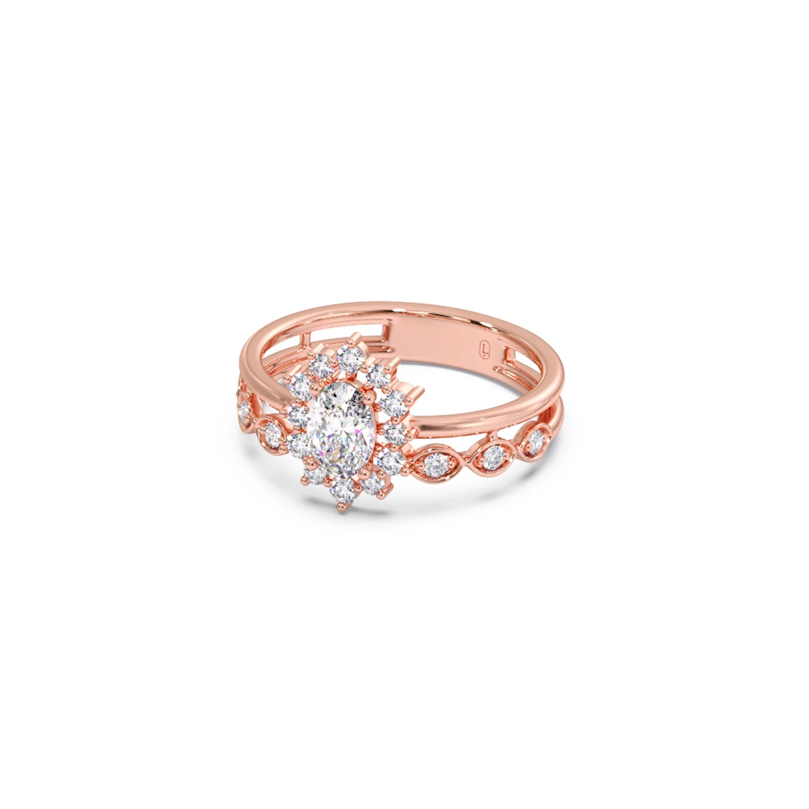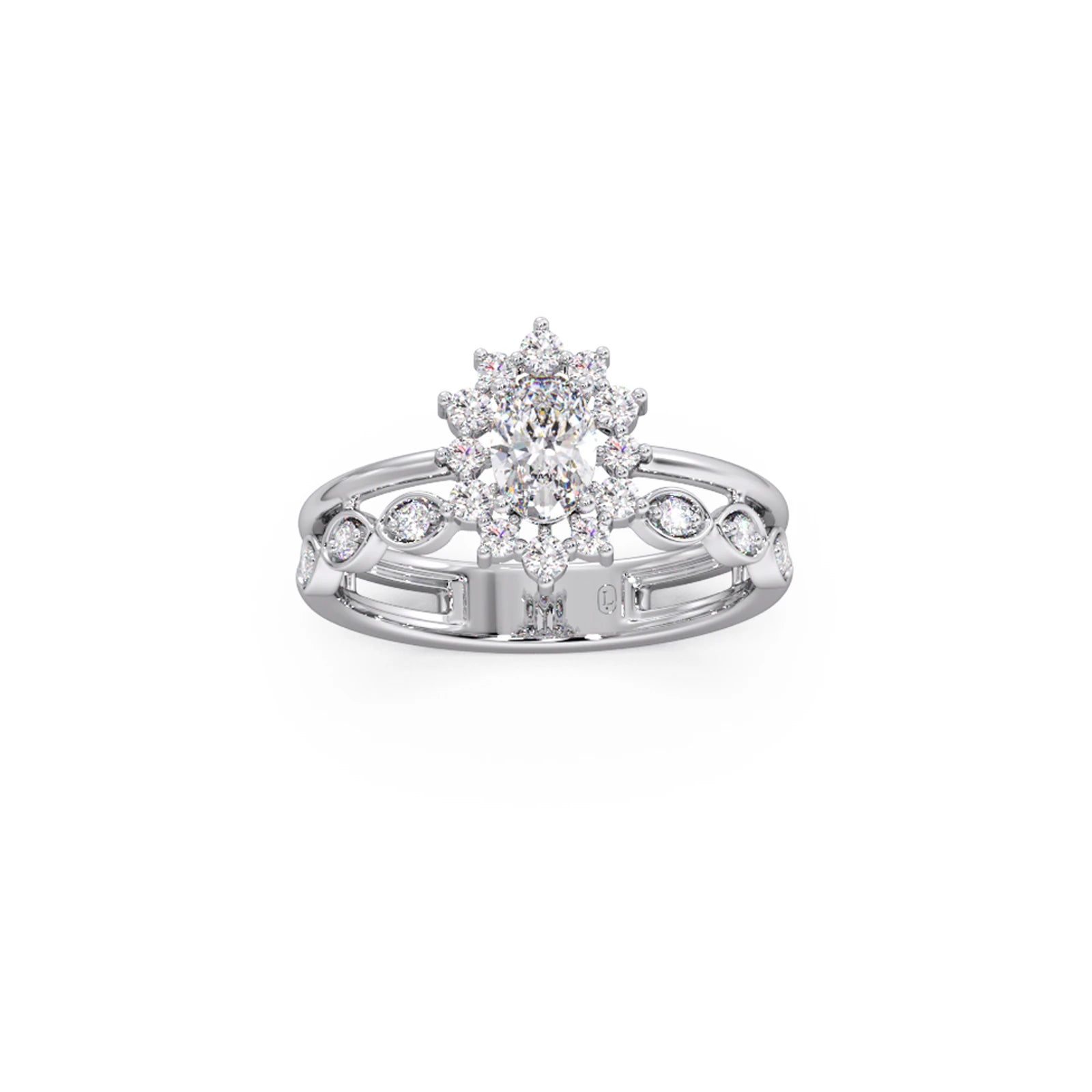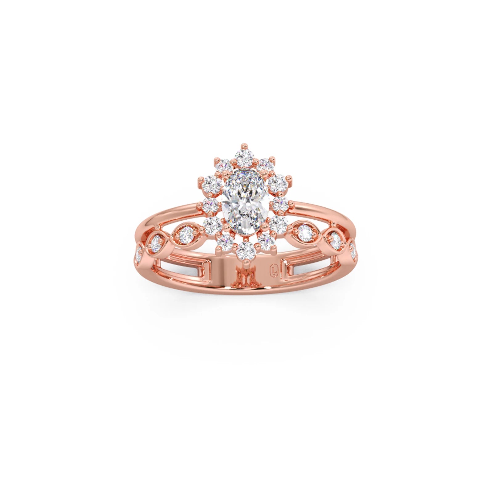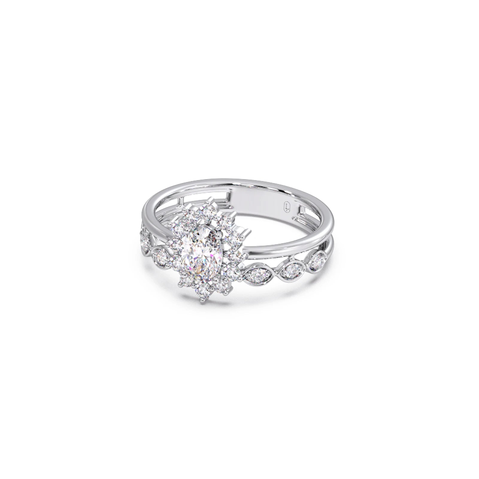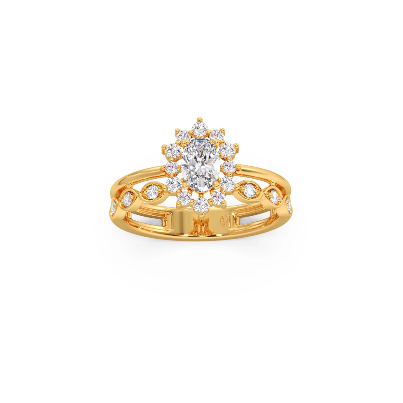 With its vintage-inspired design, this Halo Oval Diamond Ring offers a touch of classic glamour. The radiant oval diamond, framed by a delicate halo, shines with an enduring brilliance that never goes out of style.✨💍