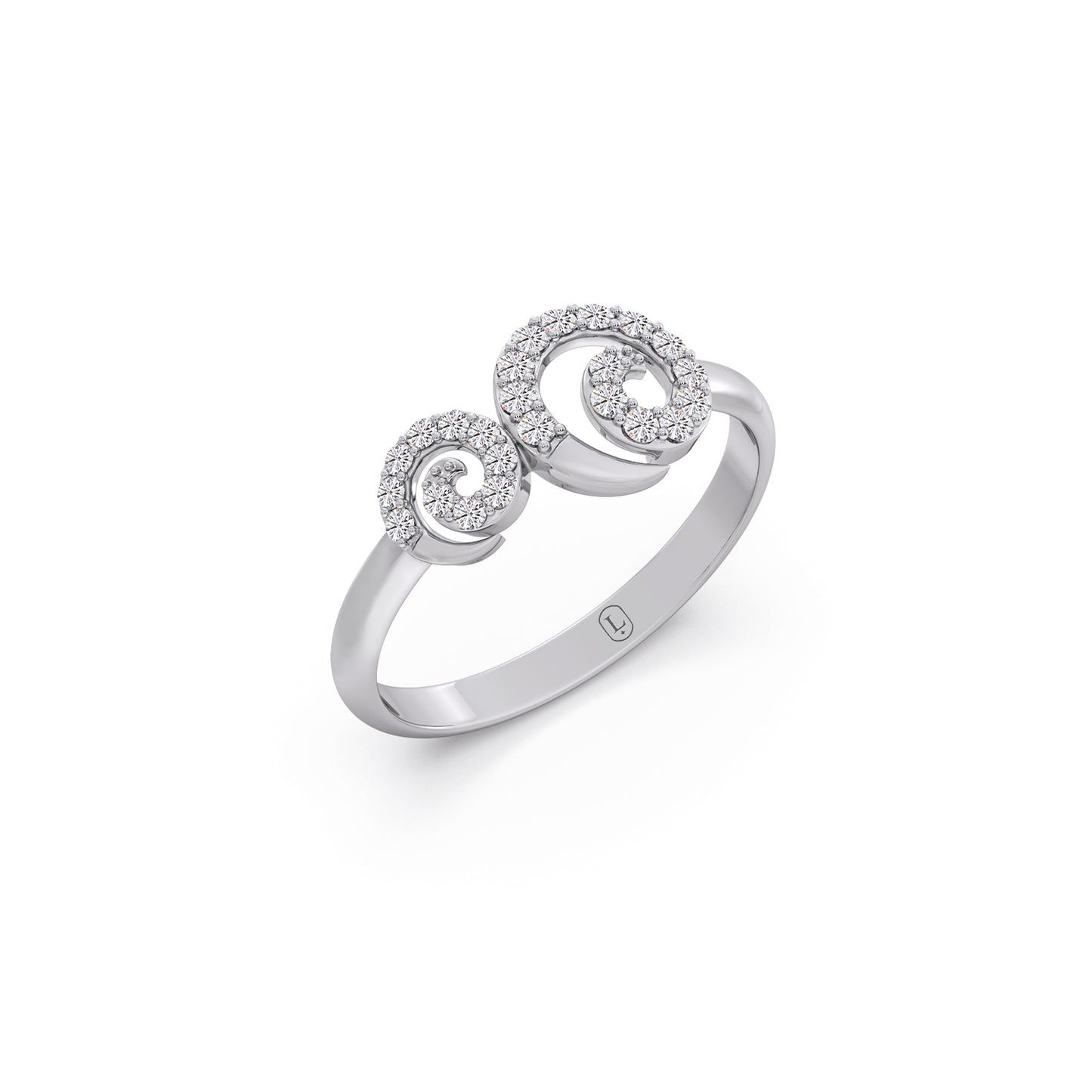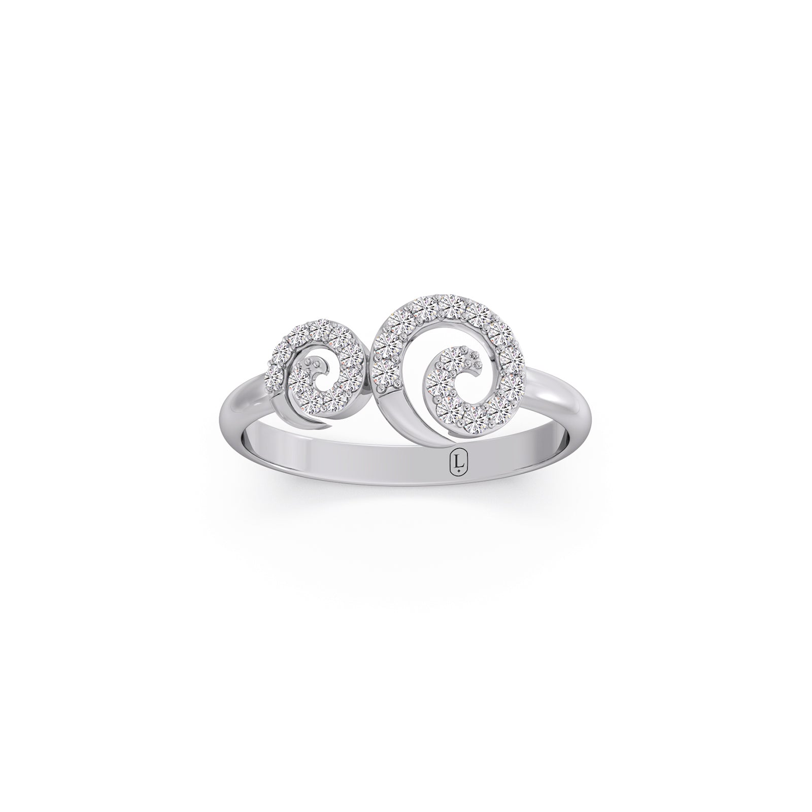 Experience the captivating Whirlwind Round Diamond Ring. Sculpted bands of shimmering round diamonds spiral upward, creating an artistic flow that dances with light. A dynamic, breathtaking piece that symbolizes continuous movement and eternal sparkle.