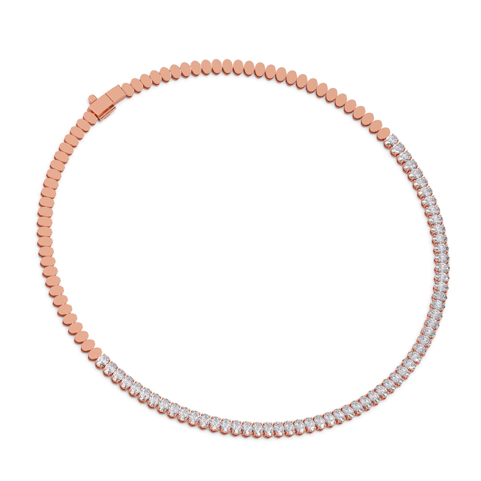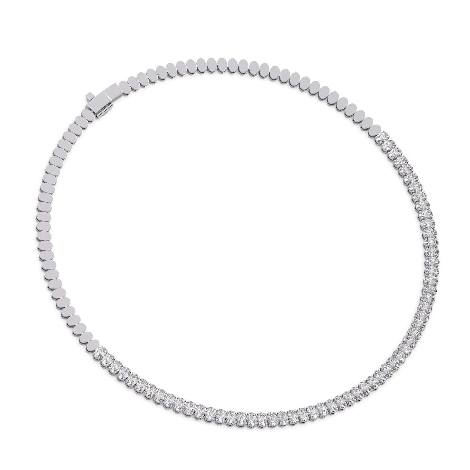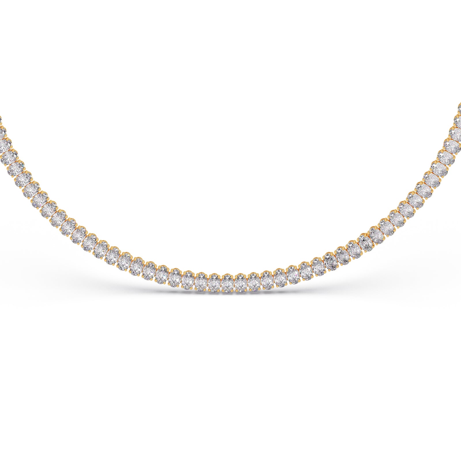 Embrace the subtle elegance of the "Whispering Ovals" necklace. This enchanting piece features a delicate array of shimmering oval diamonds, each whispering tales of timeless beauty and grace. Its sophisticated design offers a gentle, captivating sparkle, making it a perfect symbol of refined luxury and understated glamour for every moment.
